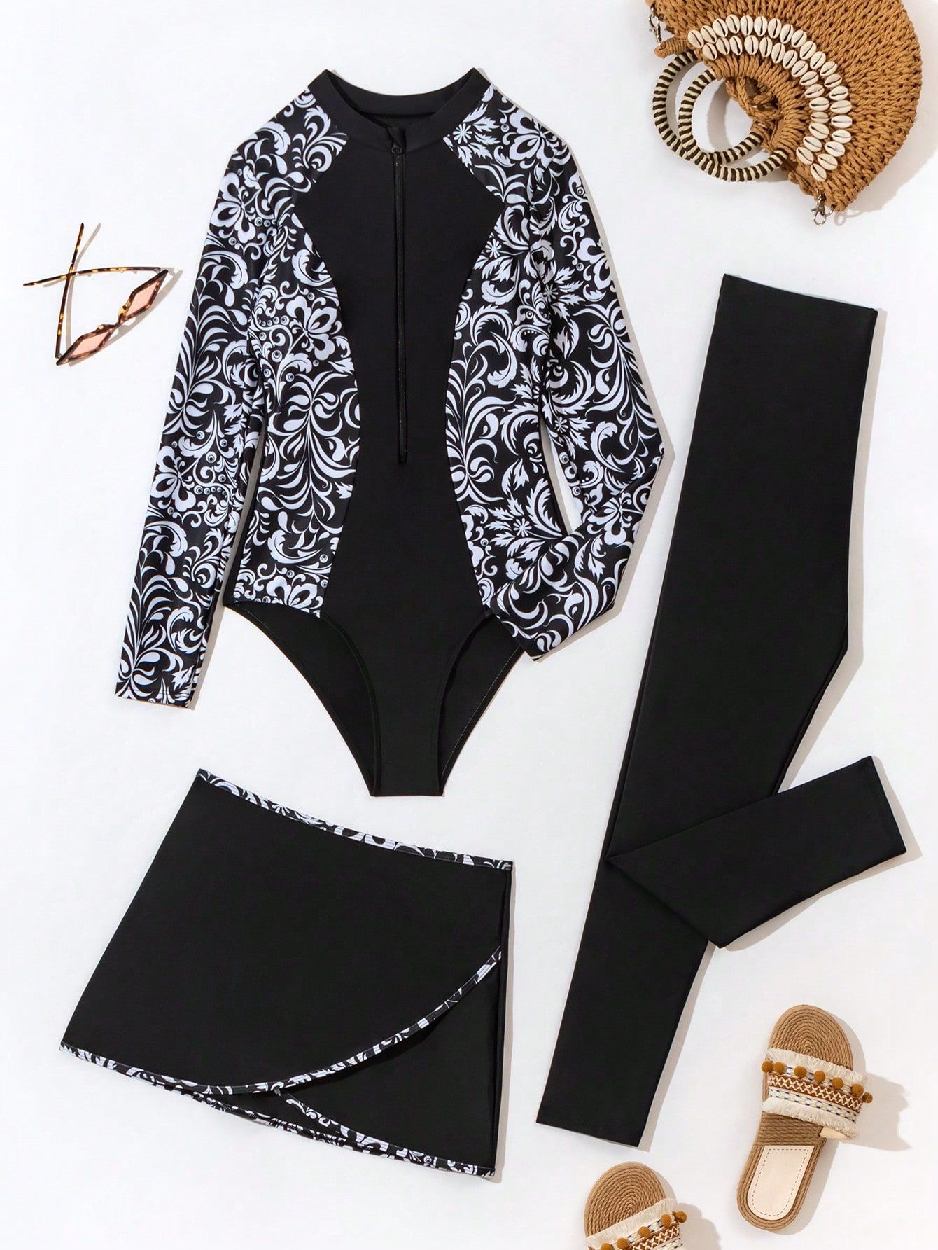 유럽과 미국의 섹시한 3 피스 바지 긴 소매 스커트 세트 여성 패션 보수적 인 수영복 크로스 국경 대외 무역 수영복 스팟