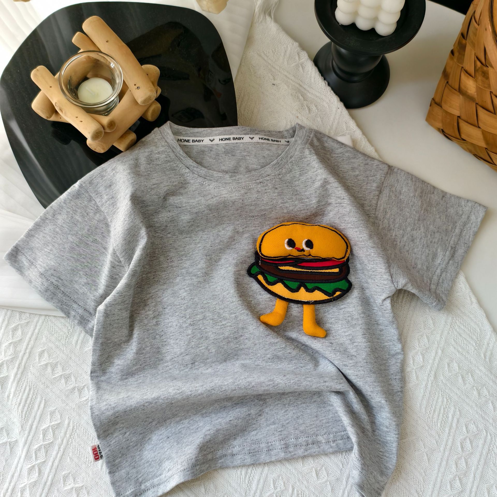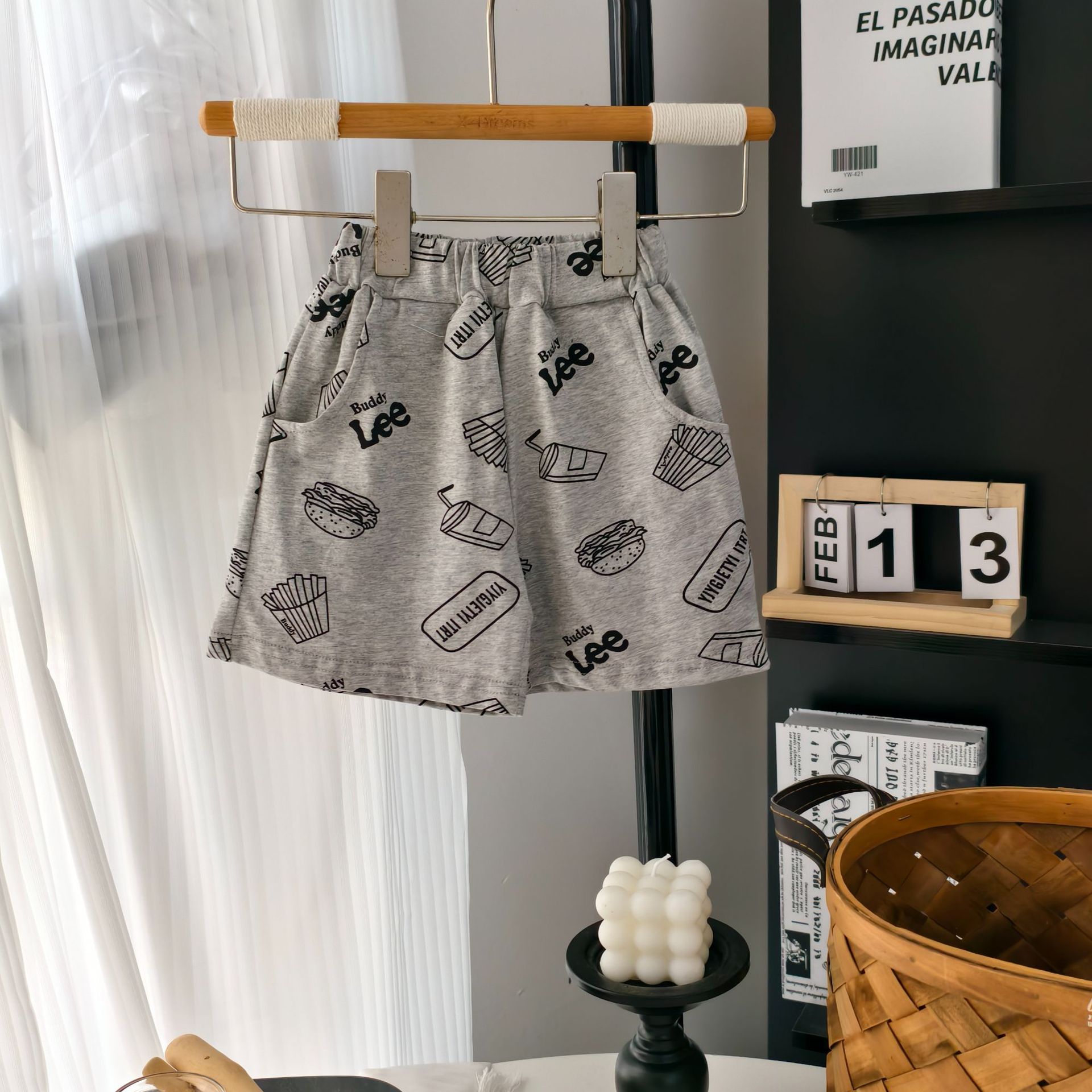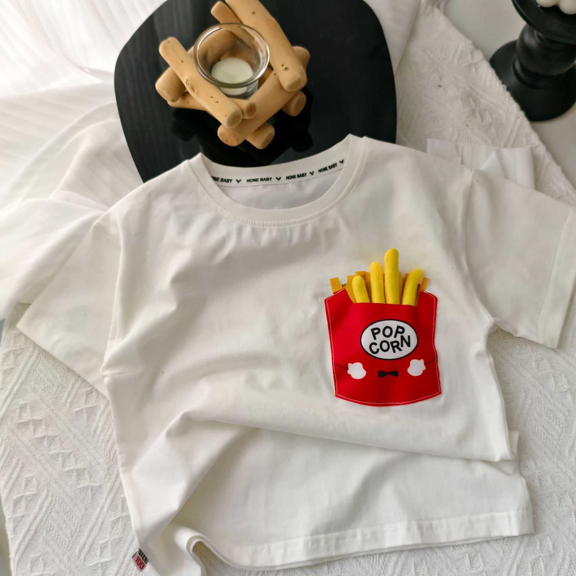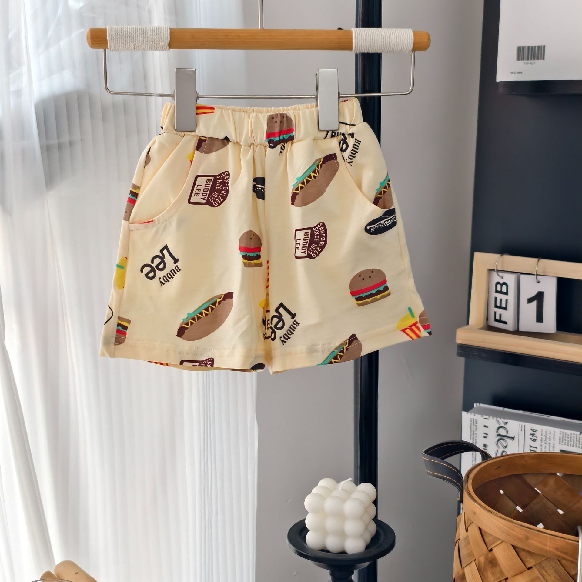 여름용 고품질 감자튀김 버거 입체적이고 편안하며 통기성 좋은 만화 귀여운 프린트 남녀 공용 반팔 반바지 세트