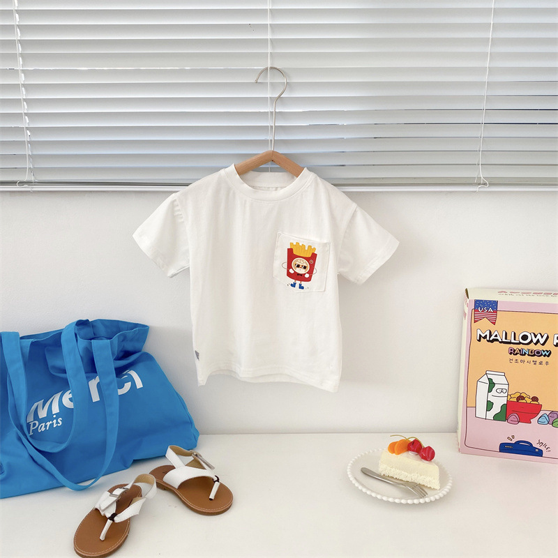 여름용 고품질 감자튀김 버거 입체적이고 편안하며 통기성 좋은 만화 귀여운 프린트 남녀 공용 반팔 반바지 세트스토어 가기