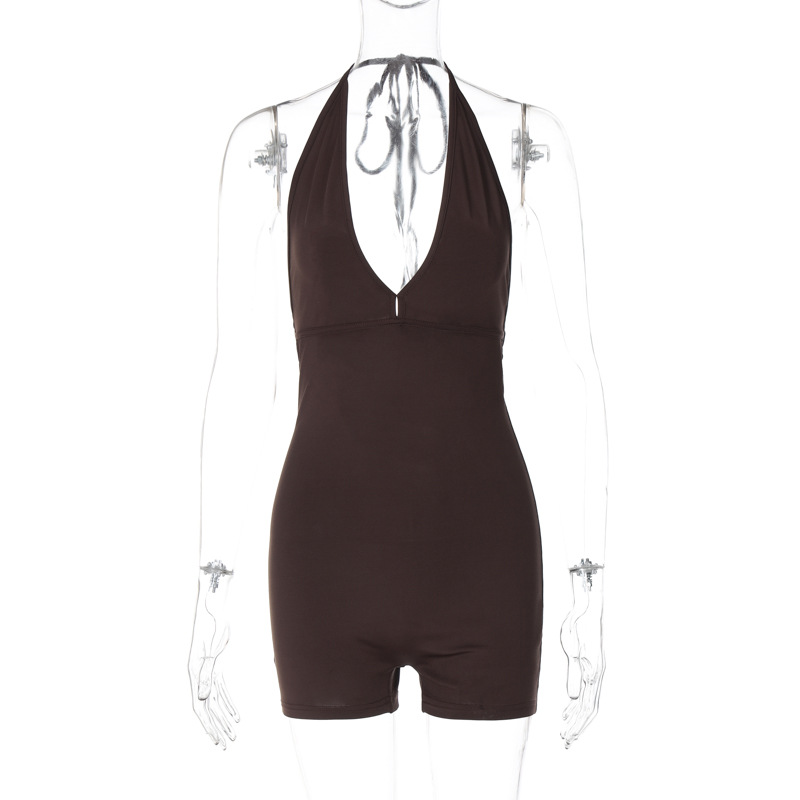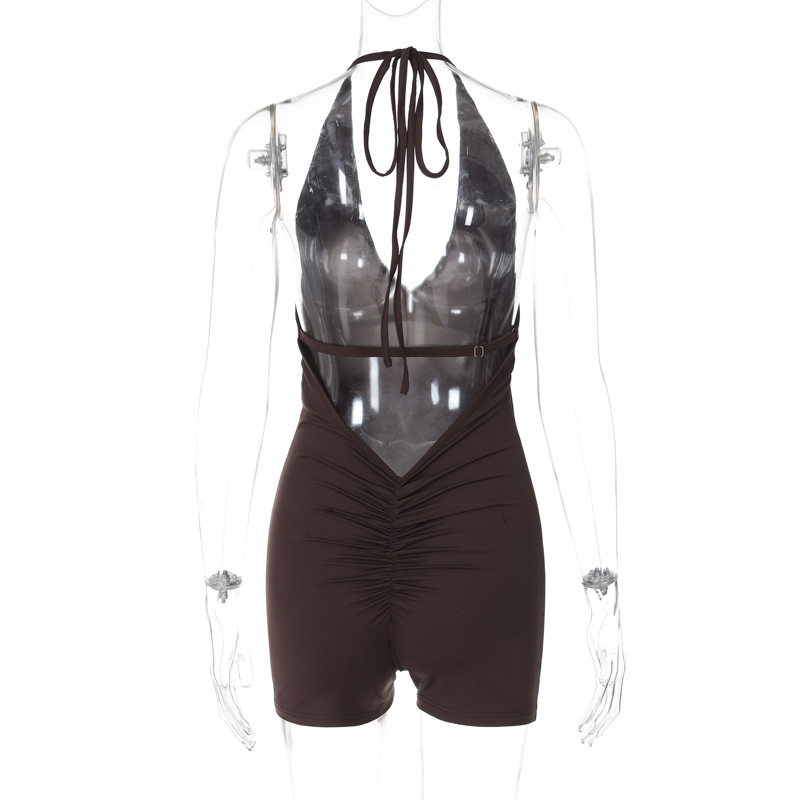 유럽 및 미국 해외 여성복 2025 여름 신상 끈 묶는 스타일 백리스 주름 타이트 피치힙 스포츠 요가 점프수트