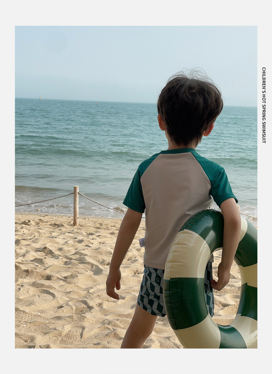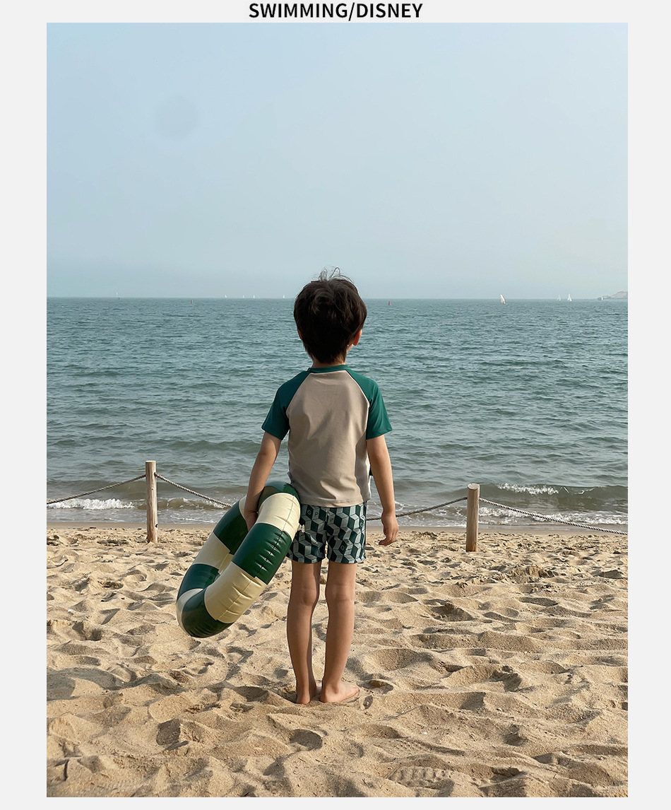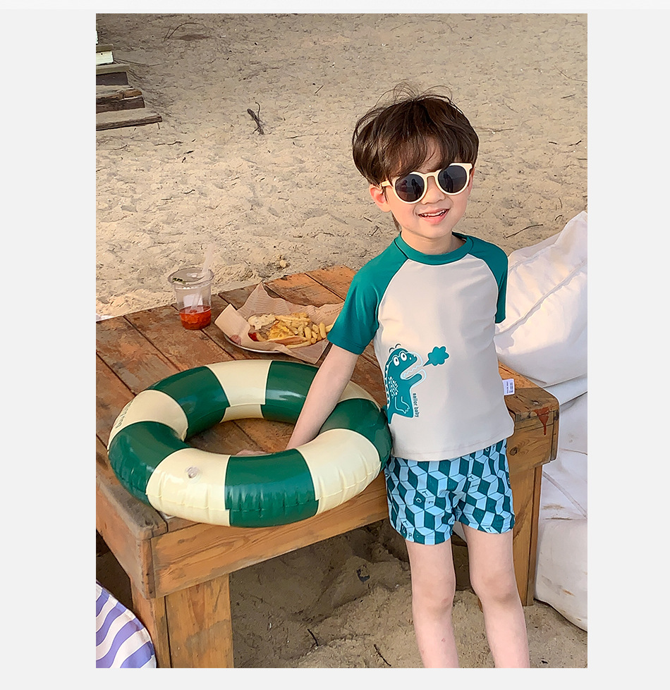 신형 수영복 중소형 어린이 소년의 귀여운 만화 공룡 분할 반팔 자외선 차단 빠른 건조 여름 수영복스토어 가기