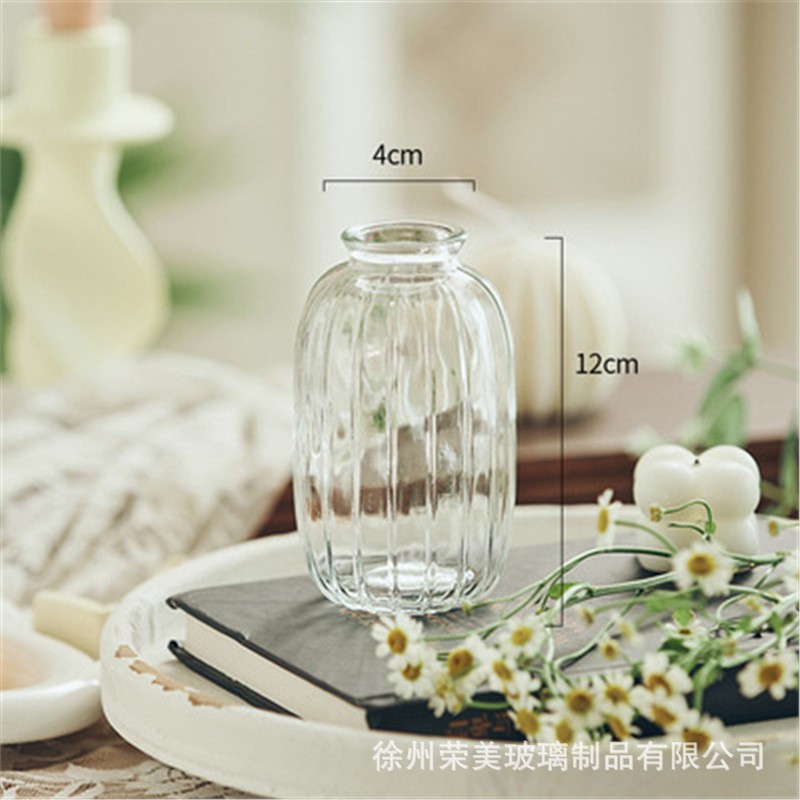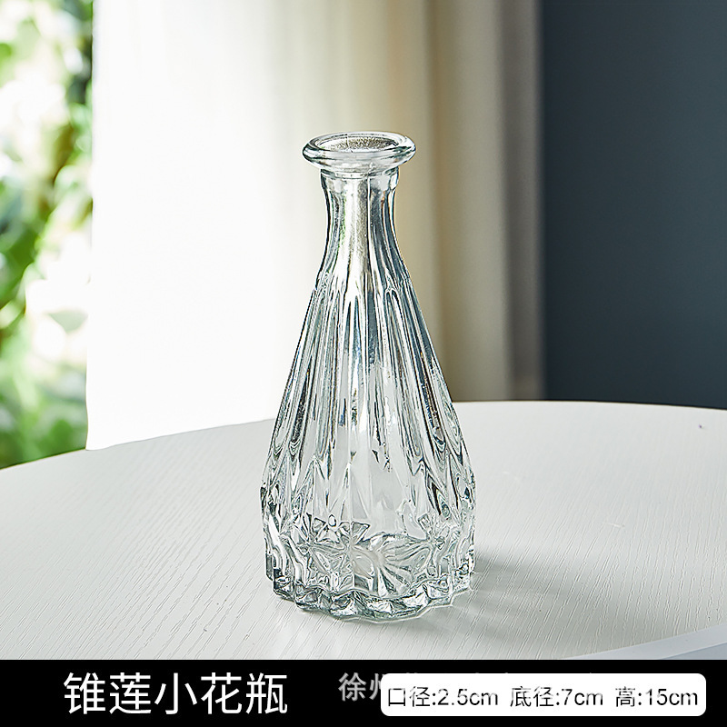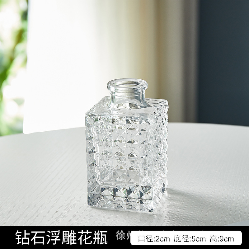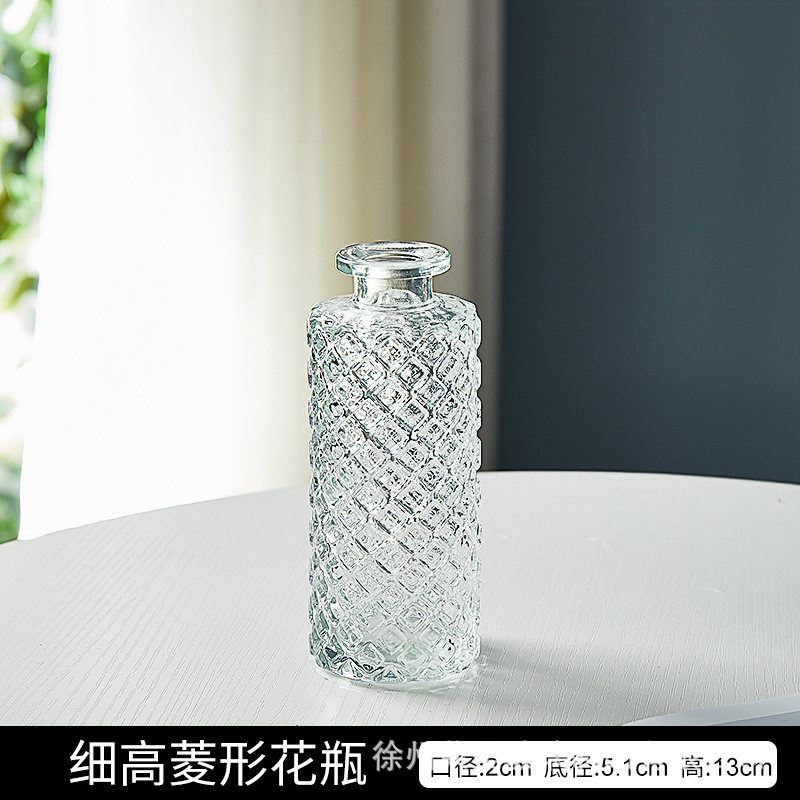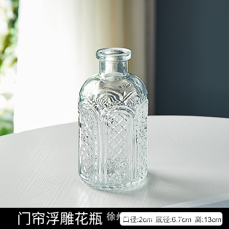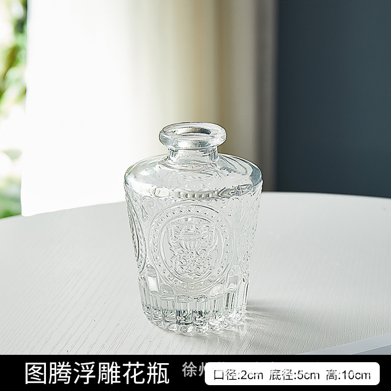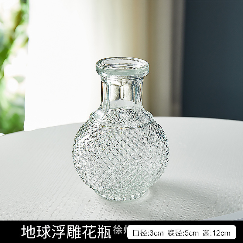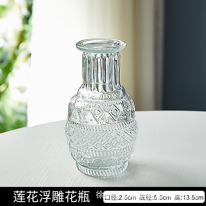 유럽 스타일의 가벼운 고급 양각 유리 꽃병 투명 거실 수경 꽃병 홈 작은 꽃병 장식품스토어 가기
