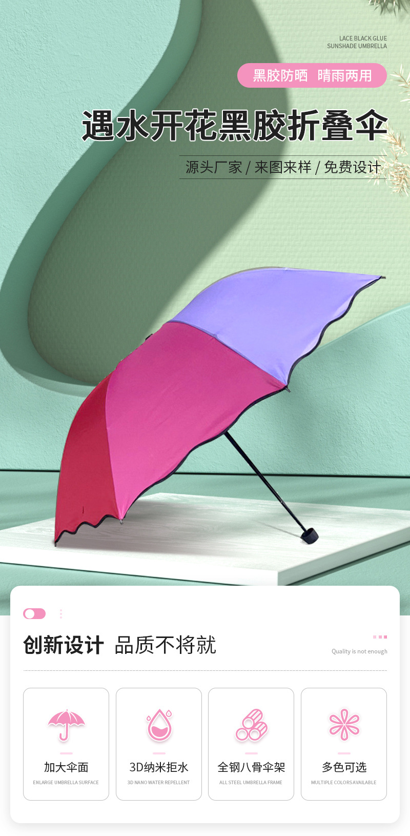국경을 넘는 블랙 플라스틱 레인보우 접이식 우산 8단 양산 자외선 차단 양우산 도매스토어 가기