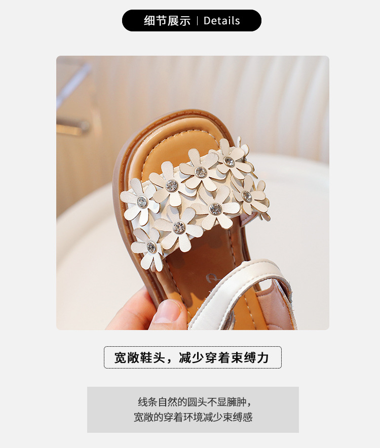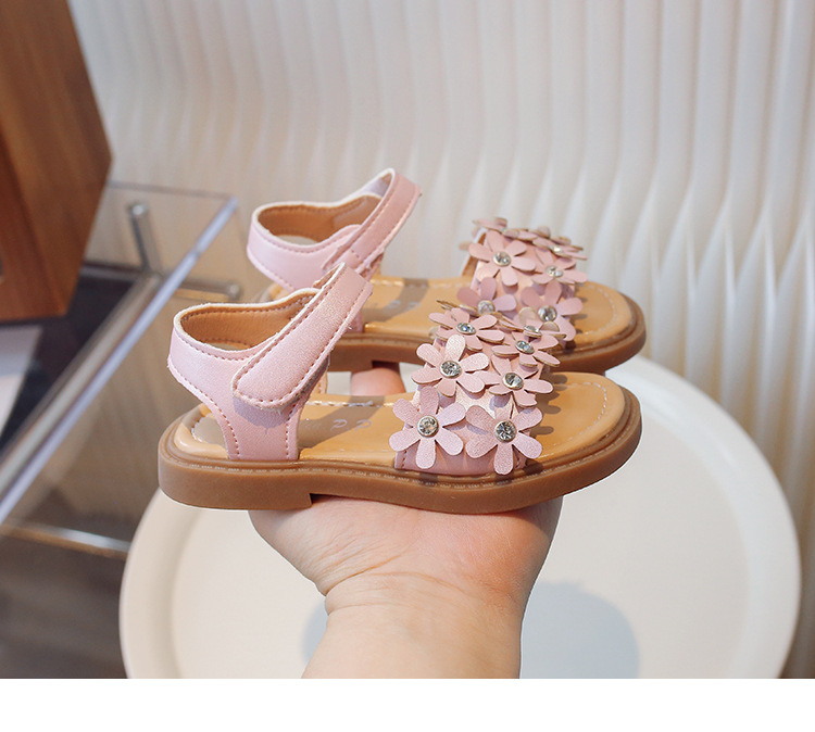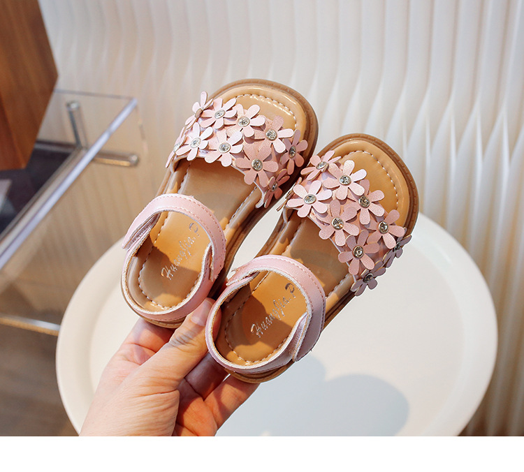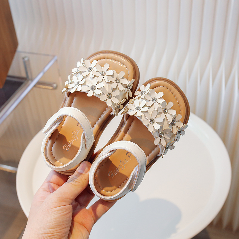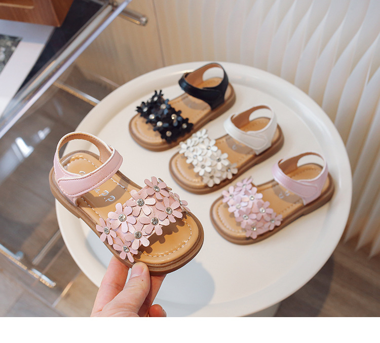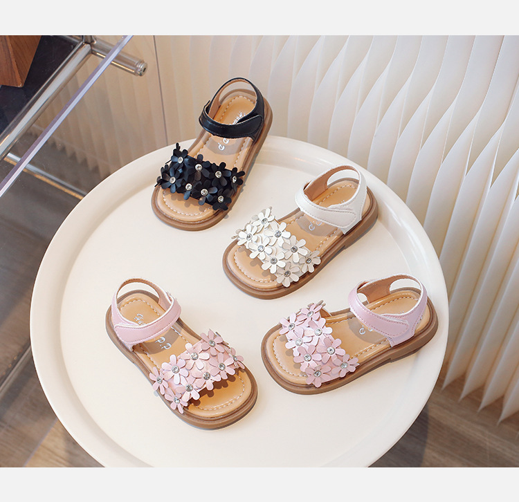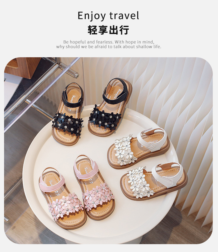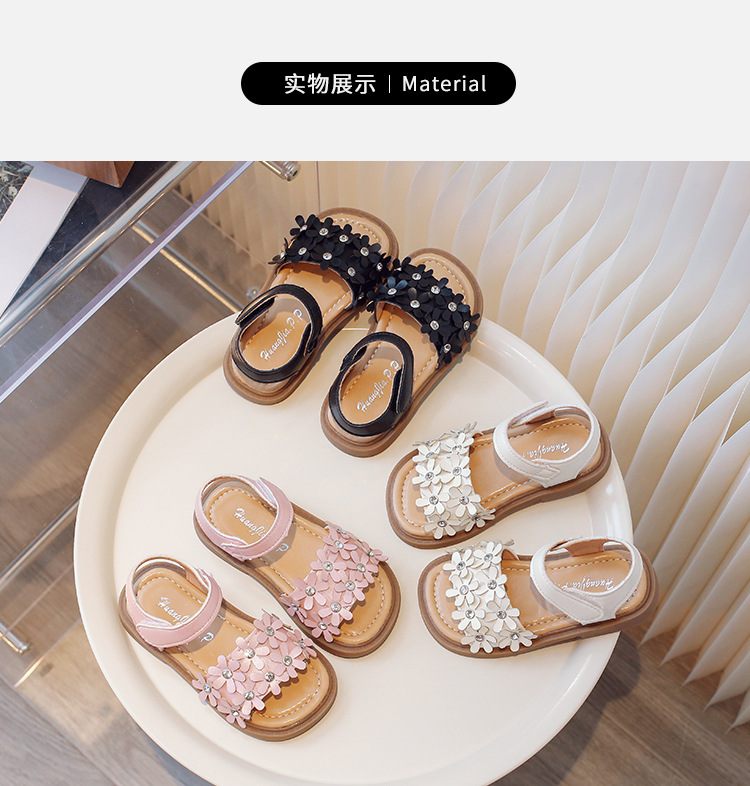 2024 여름 새 소녀 꽃 샌들 한국 패션 공주 스타일 아기 샌들 미끄럼 방지 부드러운 바닥 어린이 샌들스토어 가기