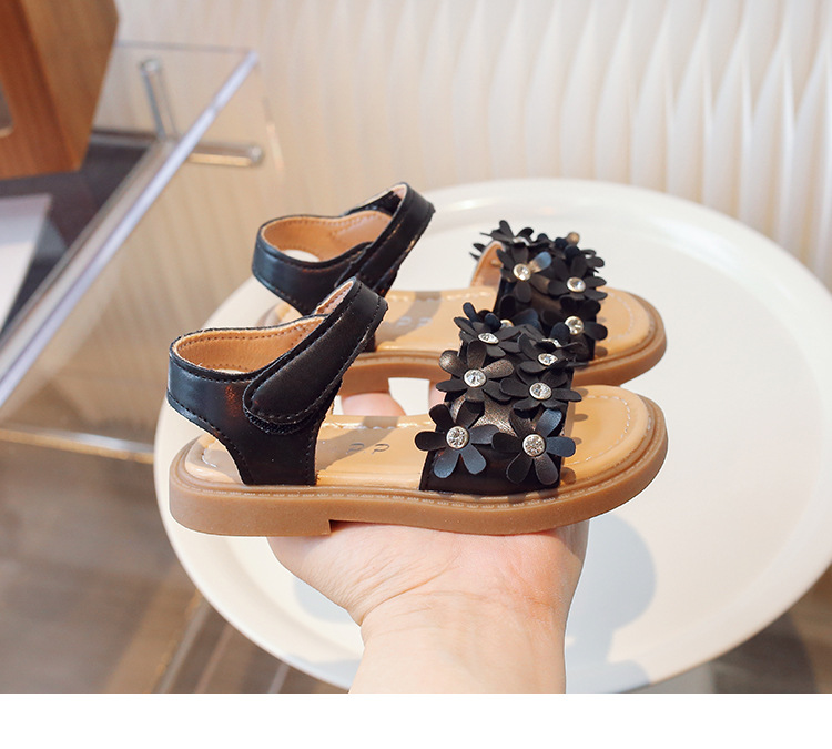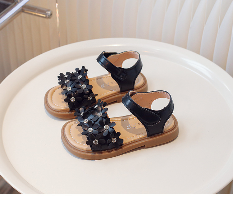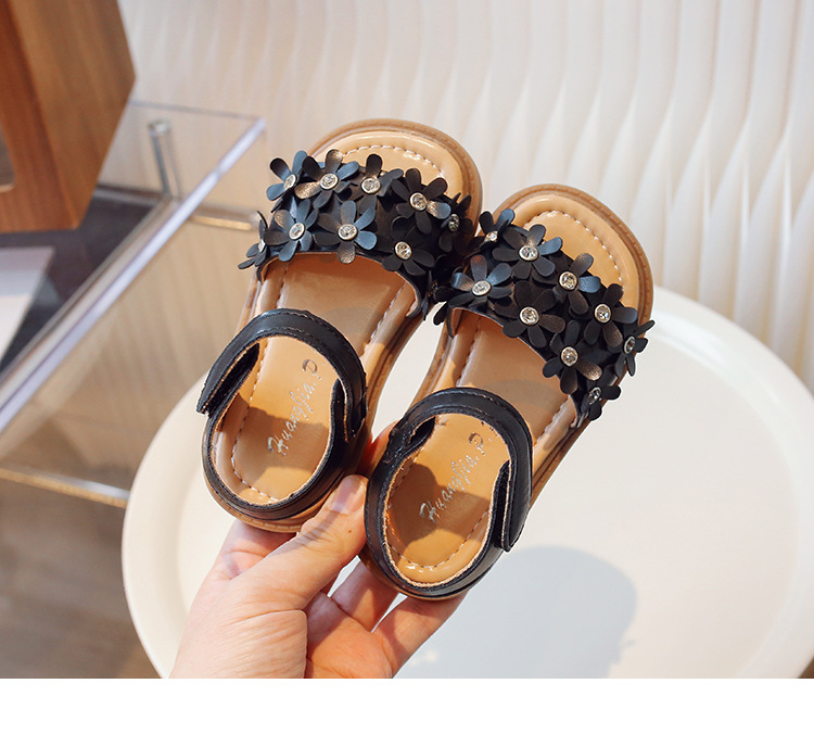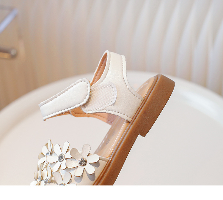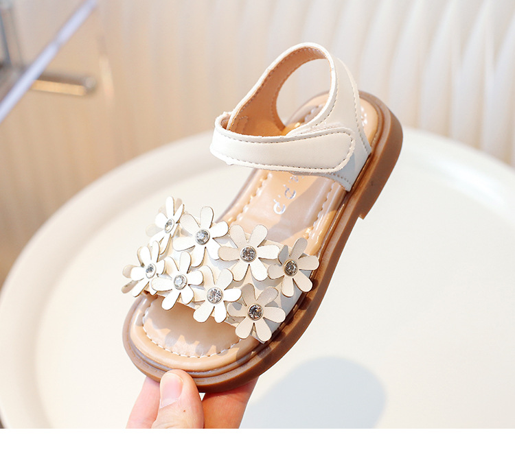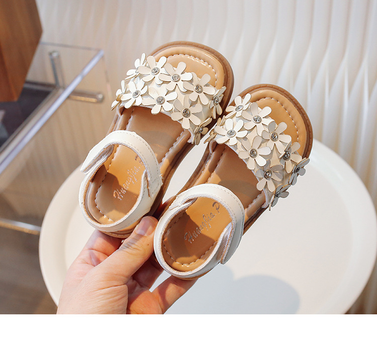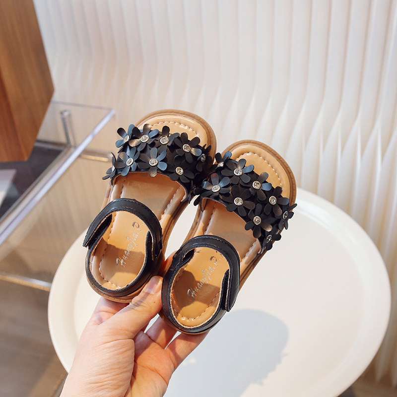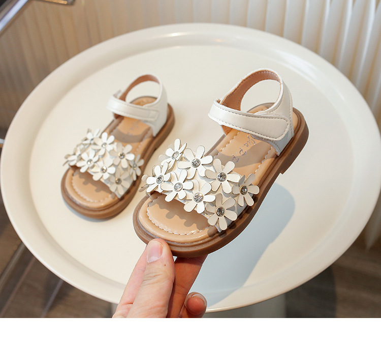 2024 여름 새 소녀 꽃 샌들 한국 패션 공주 스타일 아기 샌들 미끄럼 방지 부드러운 바닥 어린이 샌들스토어 가기