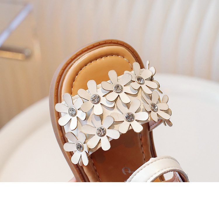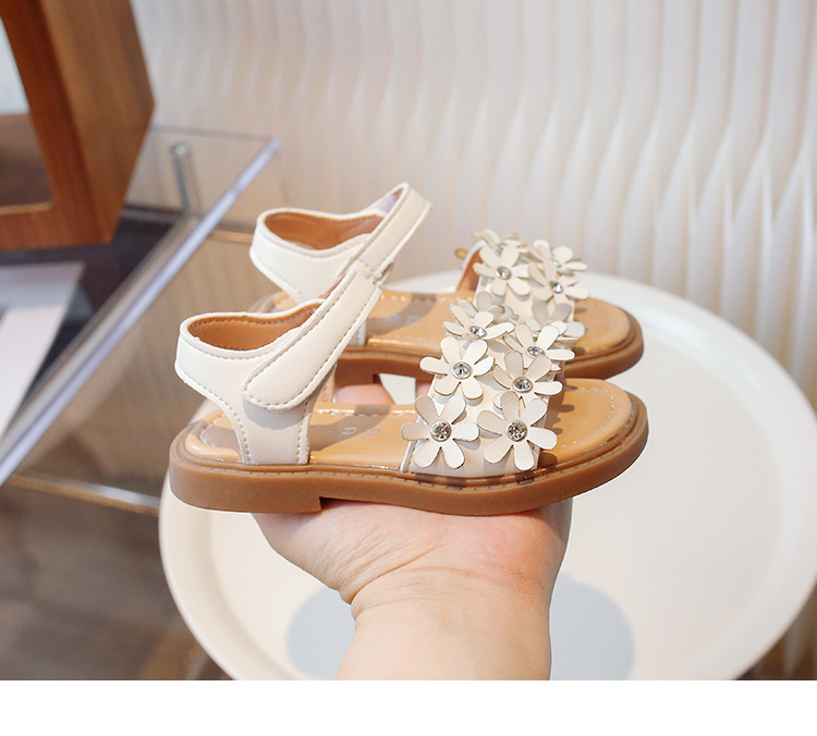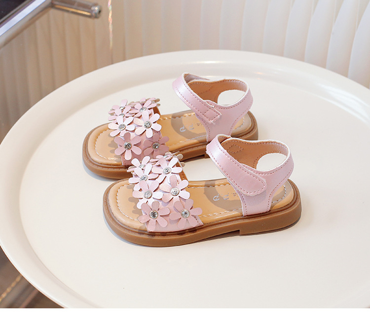 2024 여름 새 소녀 꽃 샌들 한국 패션 공주 스타일 아기 샌들 미끄럼 방지 부드러운 바닥 어린이 샌들