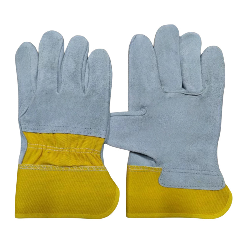 노란색 고무면 두 손가락 전체 손바닥 절반 가죽 짧은 가죽 장갑 용접 장갑 노동 보호 장갑 용접기 장갑 도매