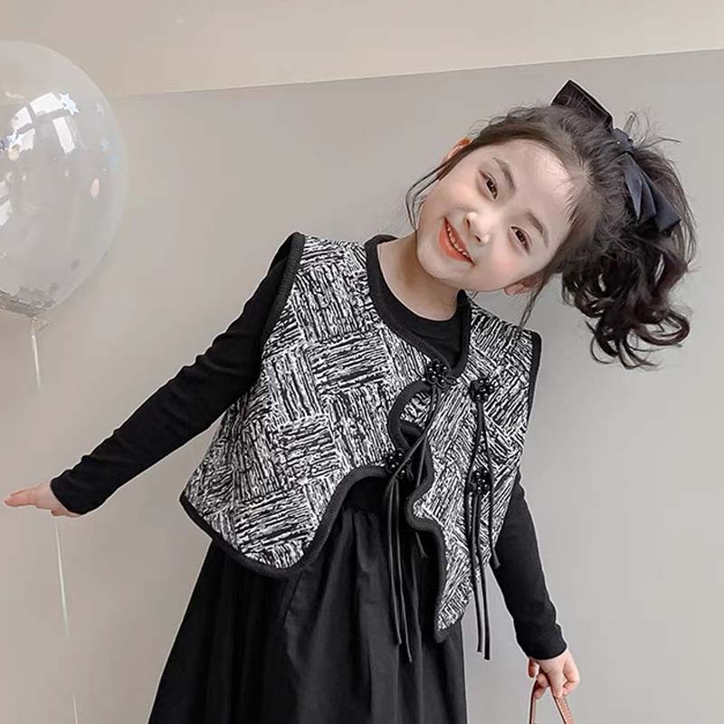 여아 상의, 중국풍, 동양 수묵화, 고대 스타일, 단추 장식, 프린지, 트렌디하고 멋진, 새로운 중국 스타일 조끼, 2025 봄 가을 신상
