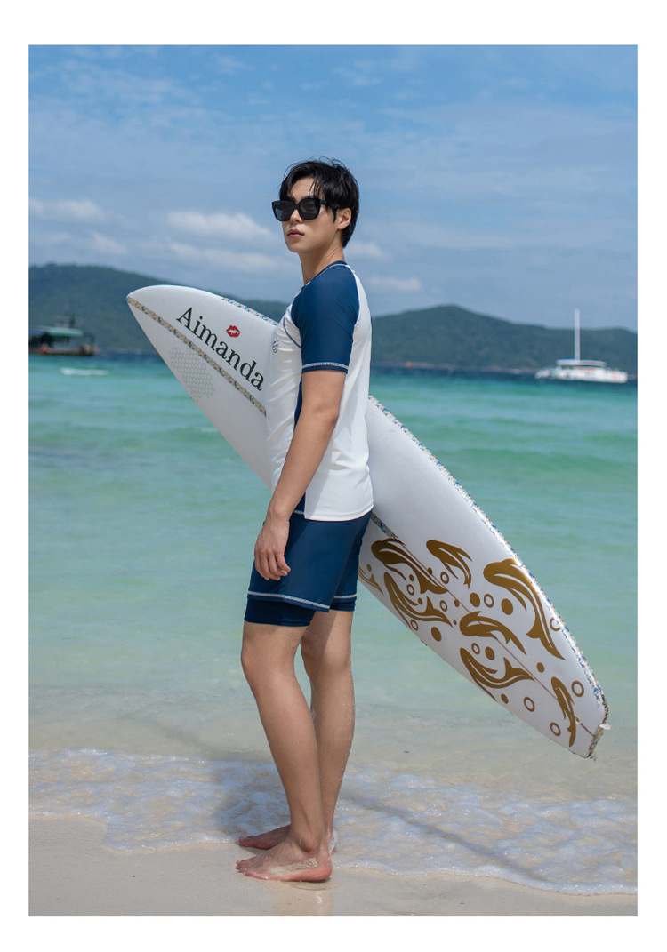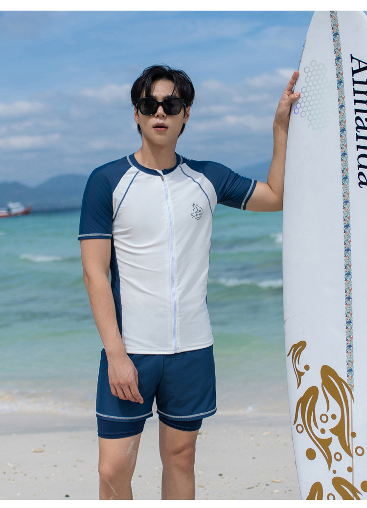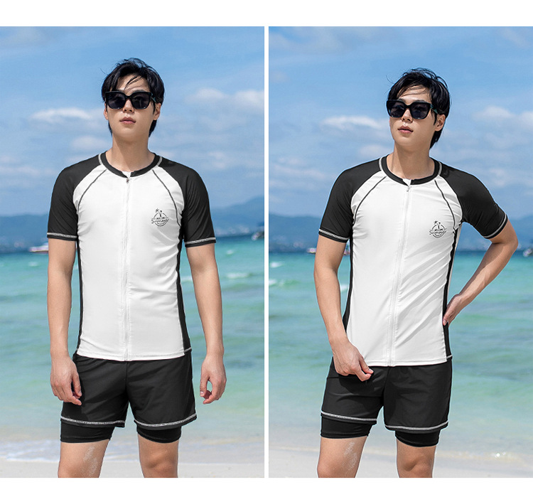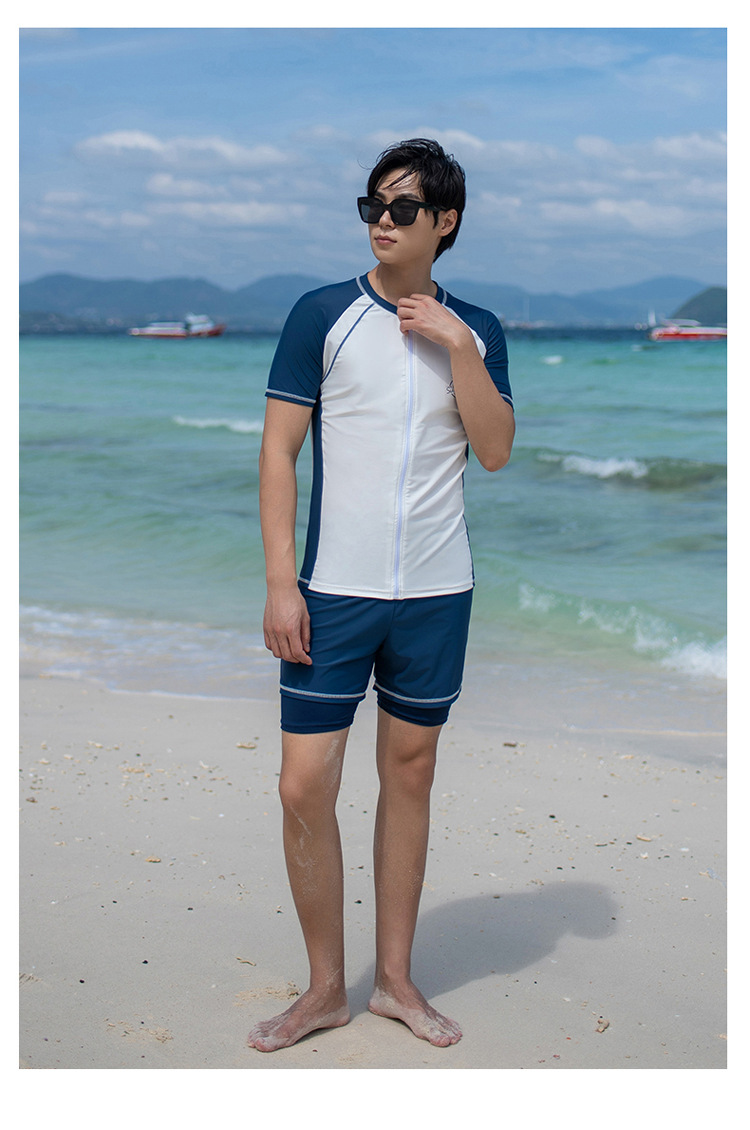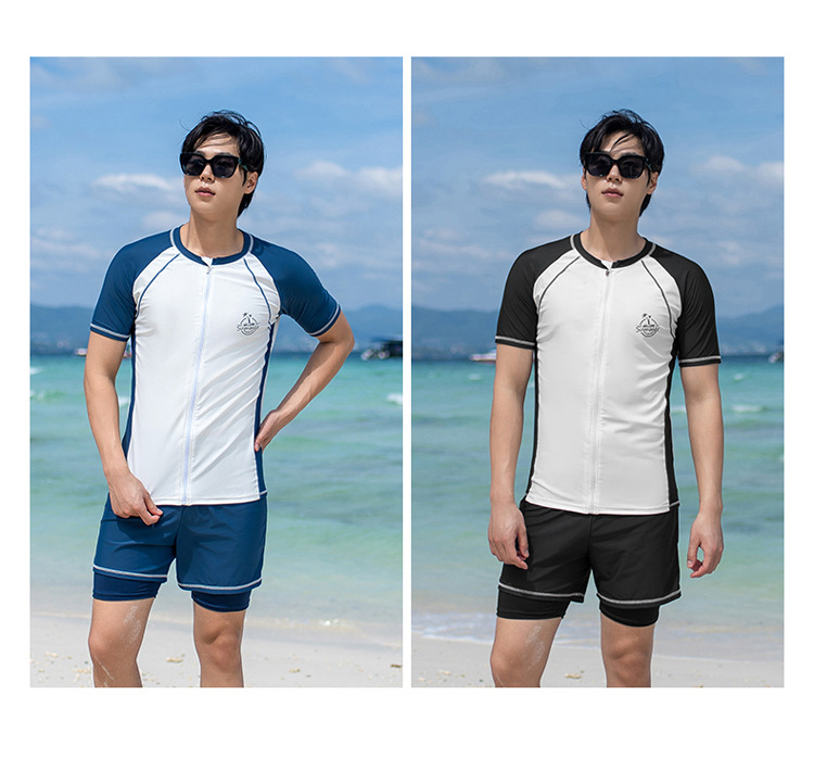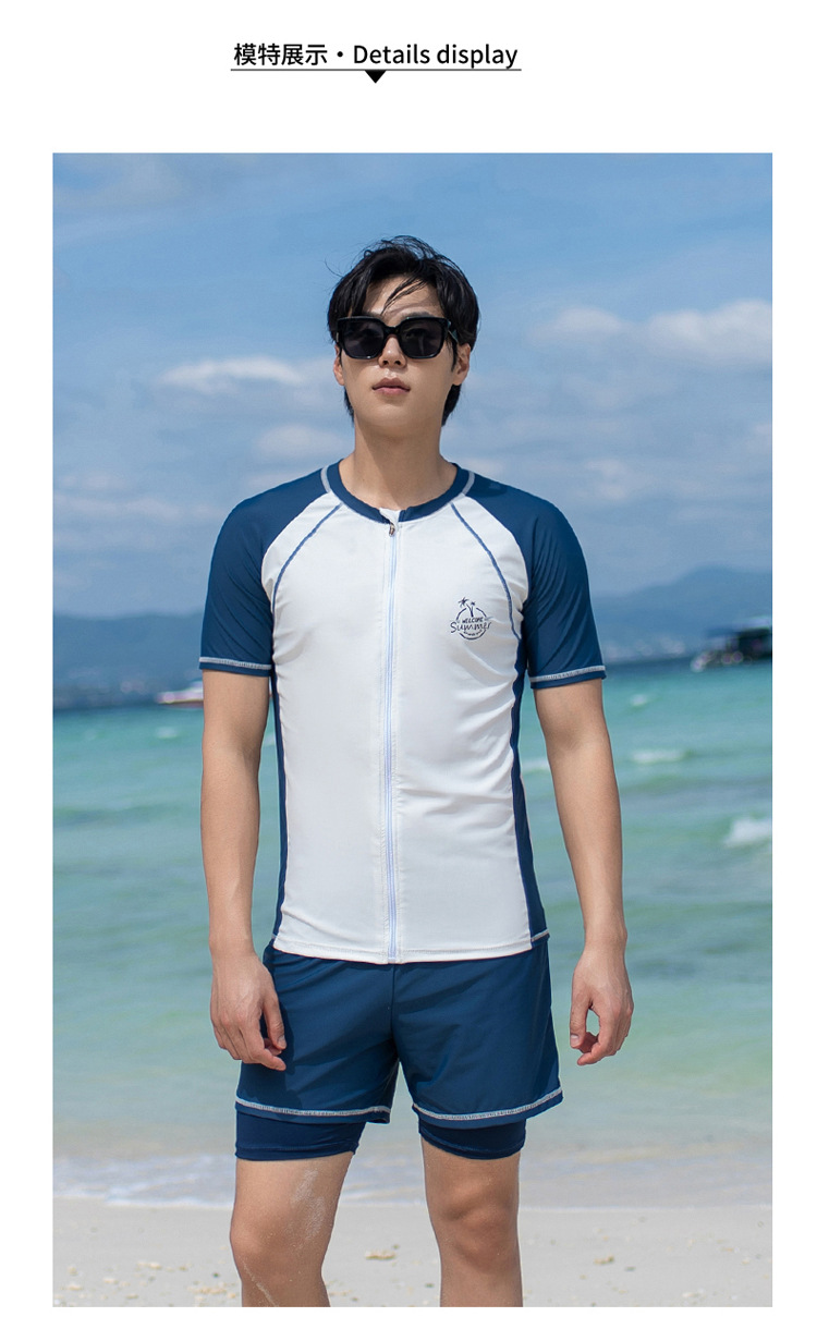 대형 수영 세트 남자 수영 세트 성인 분할 대형 수영 트렁크 5 점 태양 보호 세트 해변 남자 수영 세트스토어 가기