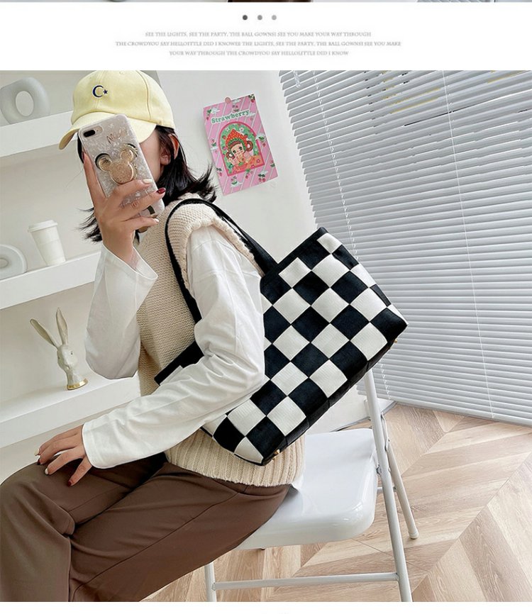 한국 스타일 새로운 대용량 여성 가방 캐주얼 쇼핑백 대형 가방 간단한 짠 핸드백 어깨 가방 휴대 전화 가방스토어 가기