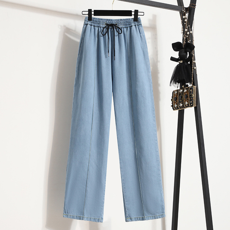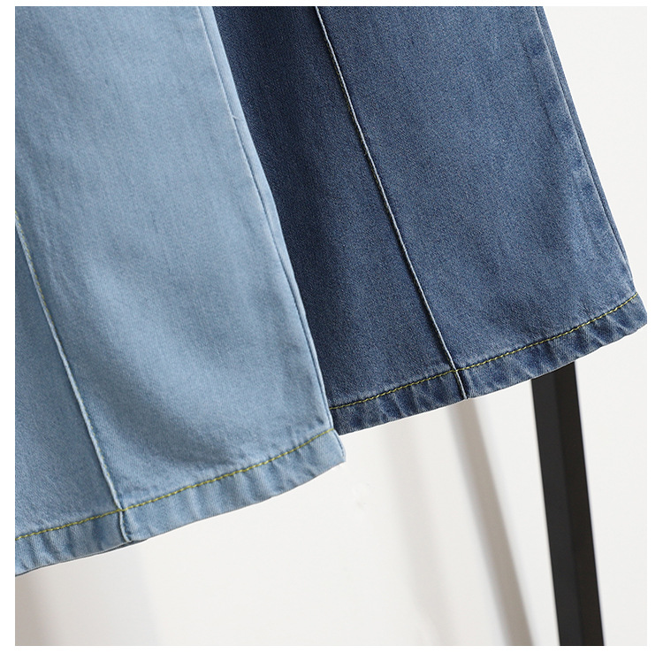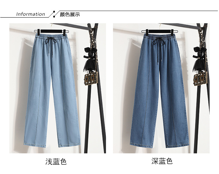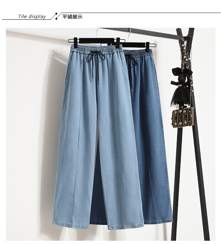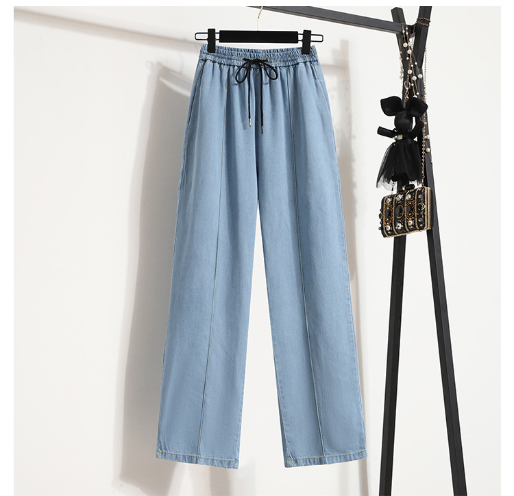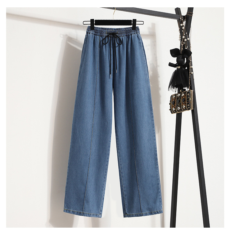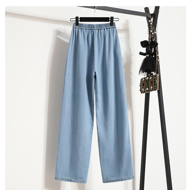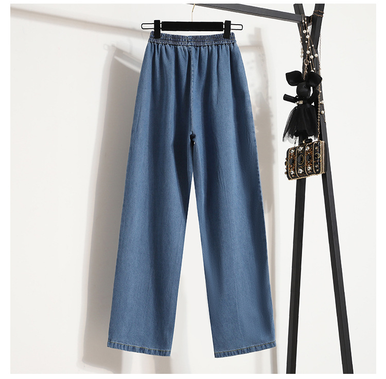 진짜 텐셀 청바지 여성 여름 얇은 높은 허리 작은 스트레이트 아이스 실크 처진 넓은 다리 바지스토어 가기