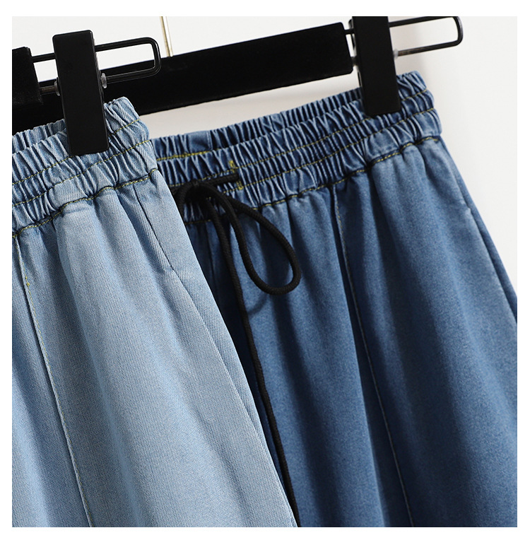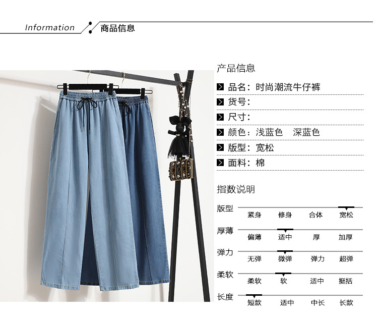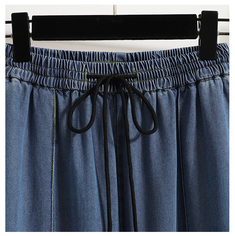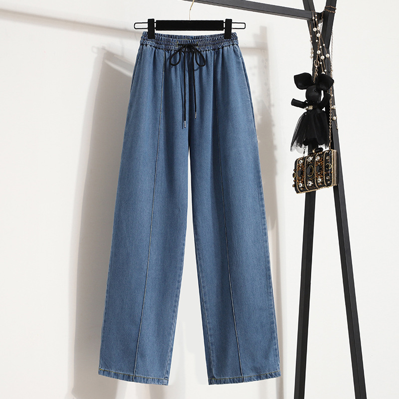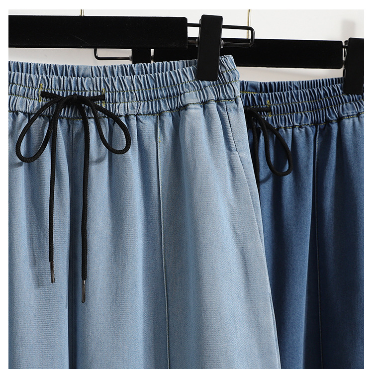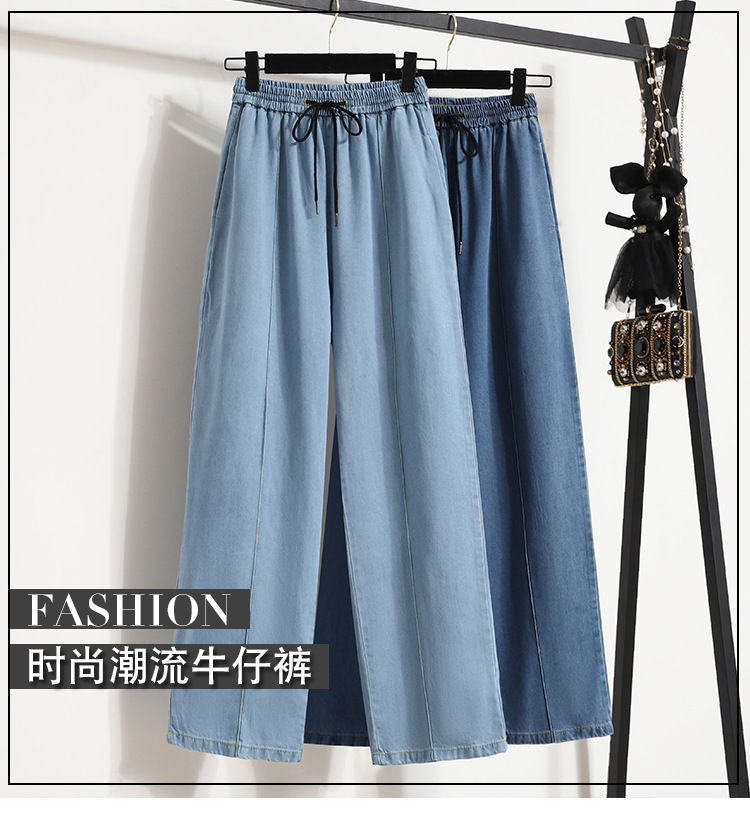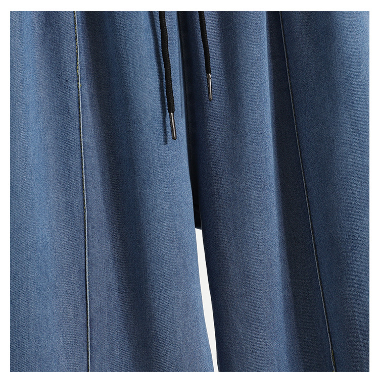 진짜 텐셀 청바지 여성 여름 얇은 높은 허리 작은 스트레이트 아이스 실크 처진 넓은 다리 바지스토어 가기