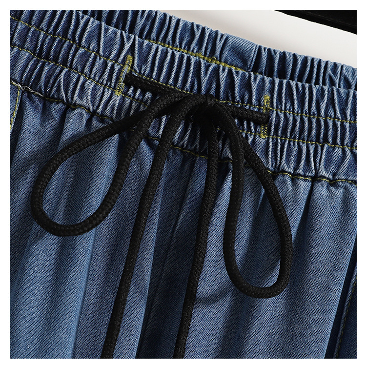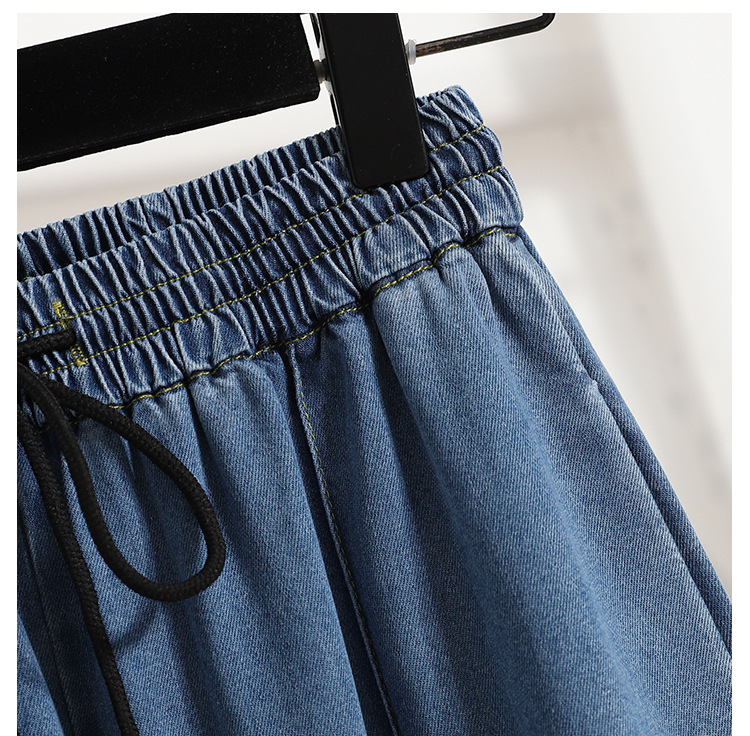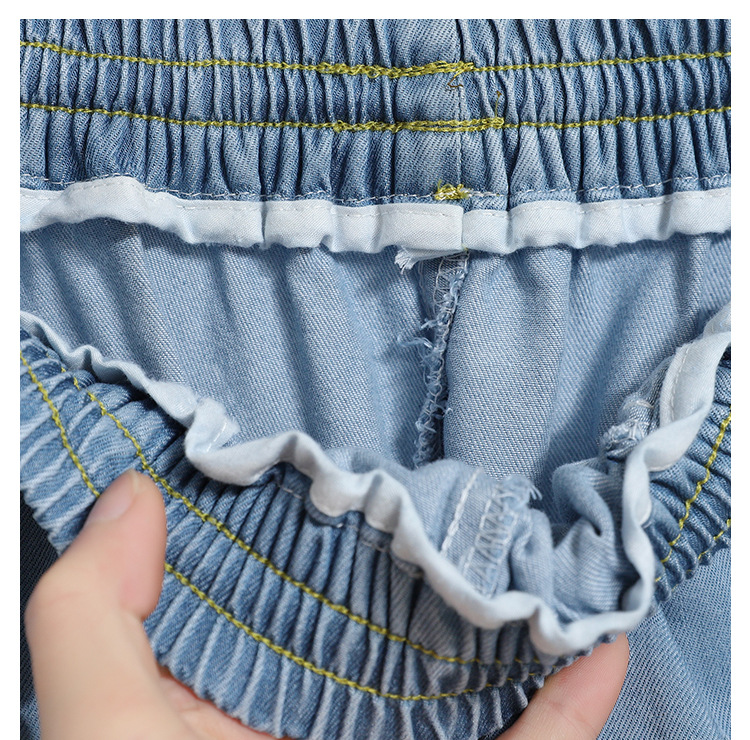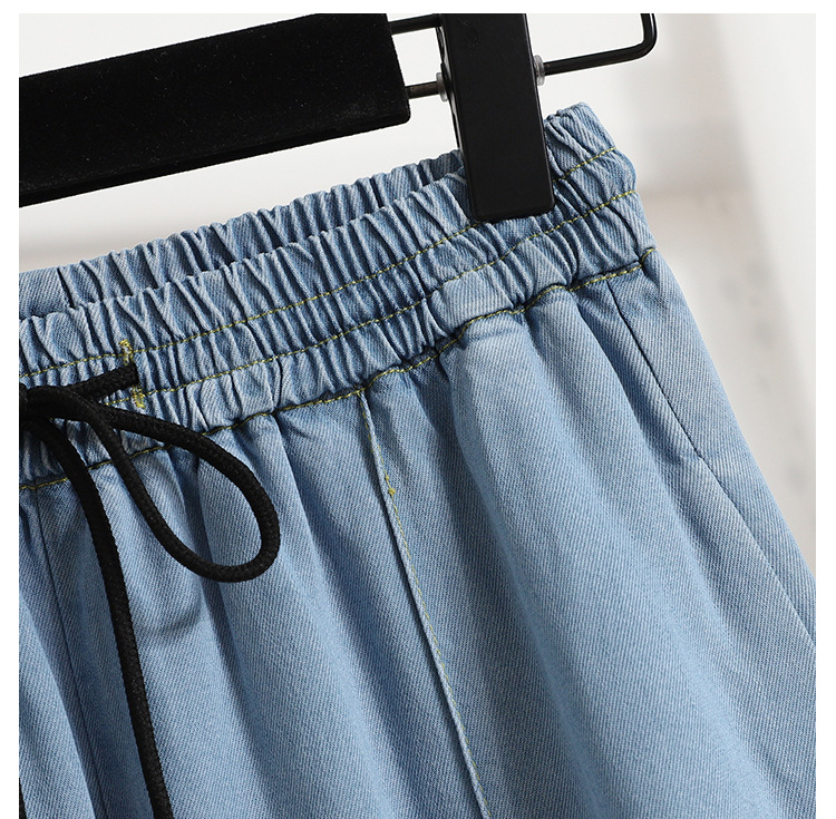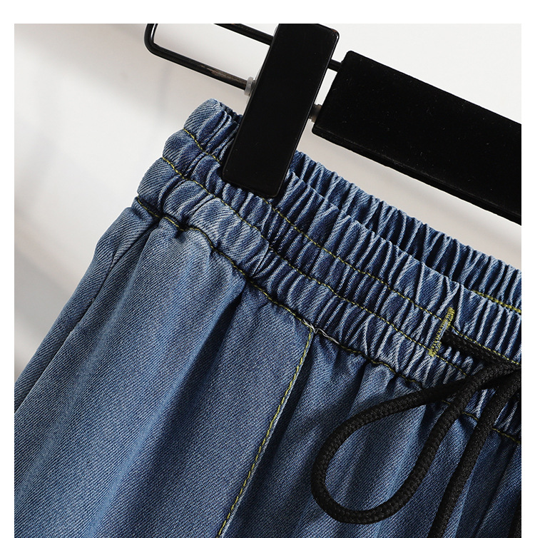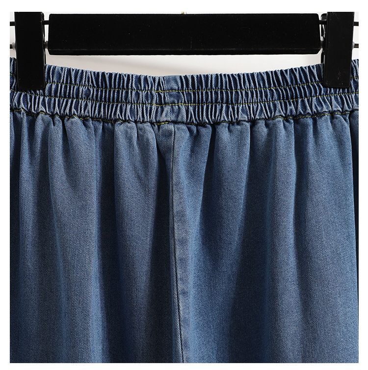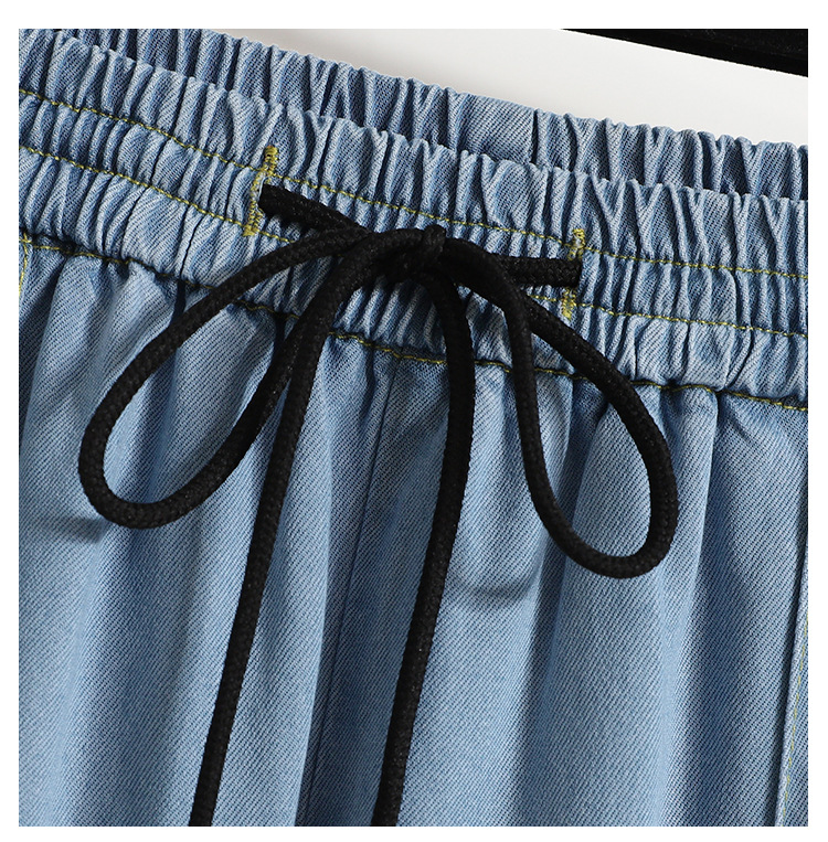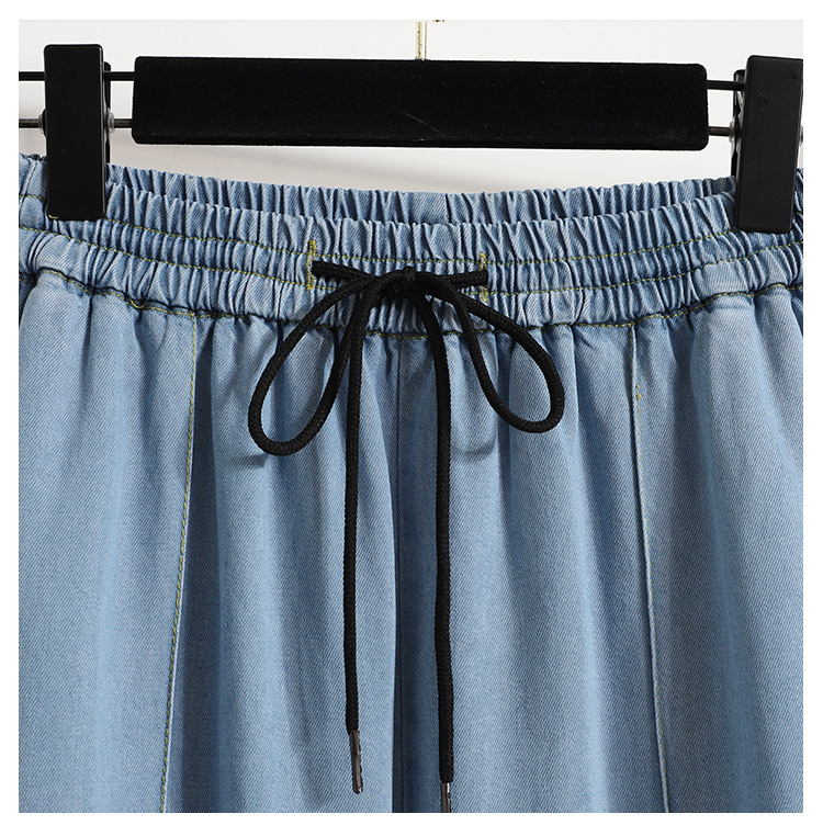 진짜 텐셀 청바지 여성 여름 얇은 높은 허리 작은 스트레이트 아이스 실크 처진 넓은 다리 바지스토어 가기