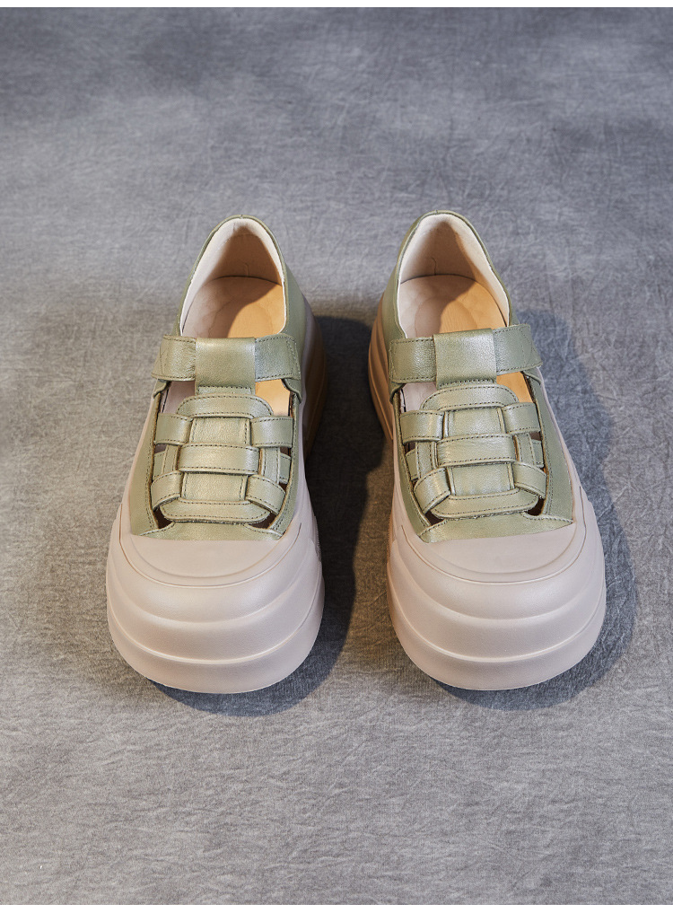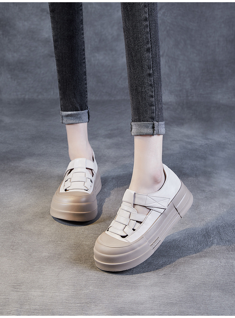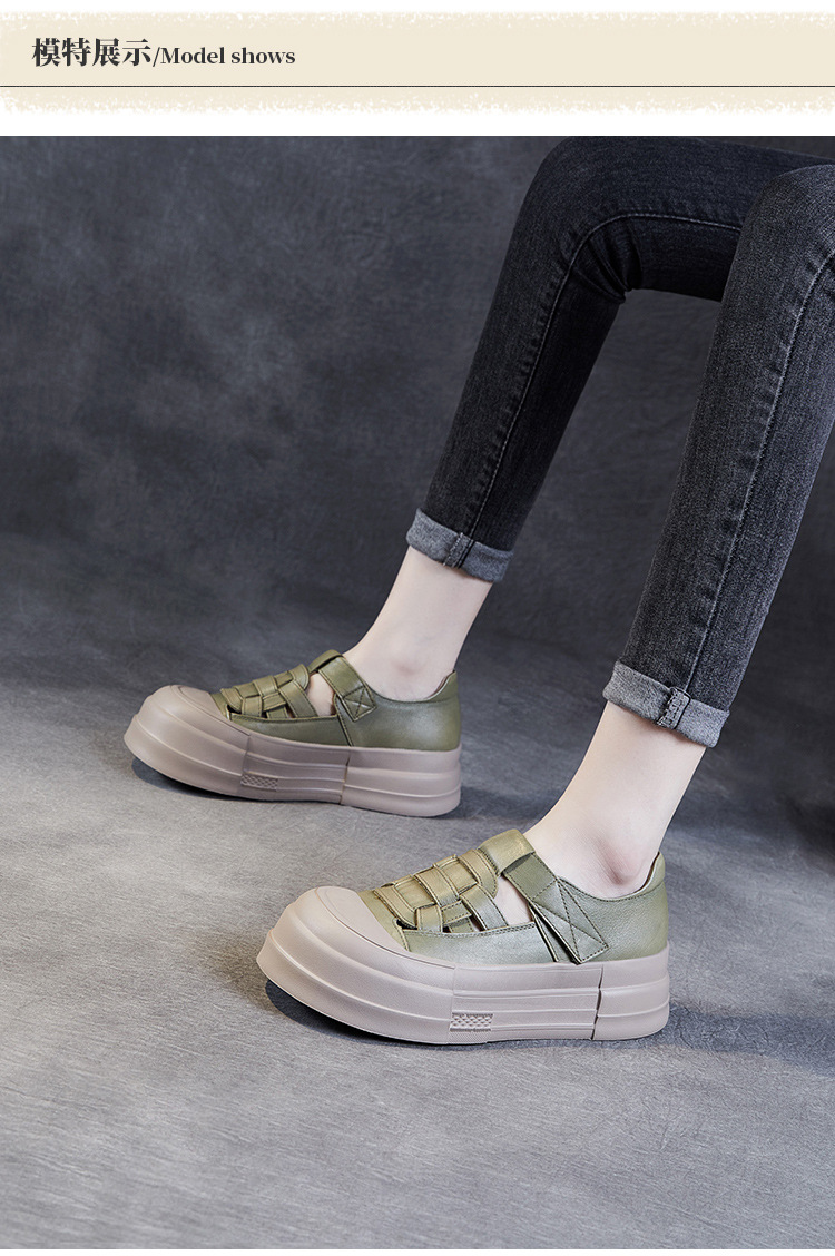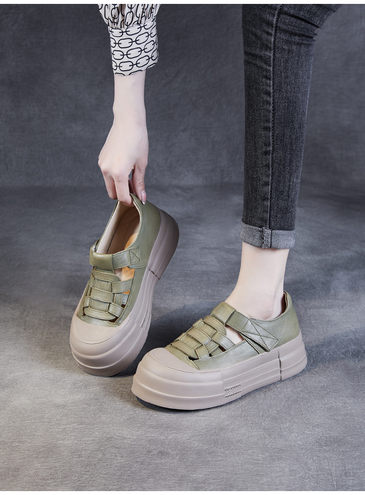 짠 로마 Baotou Lefu 싱글 레이어 신발 2024 봄과 여름 새로운 돼지 케이지 신발 영국 스타일 플랫폼 샌들 여성용