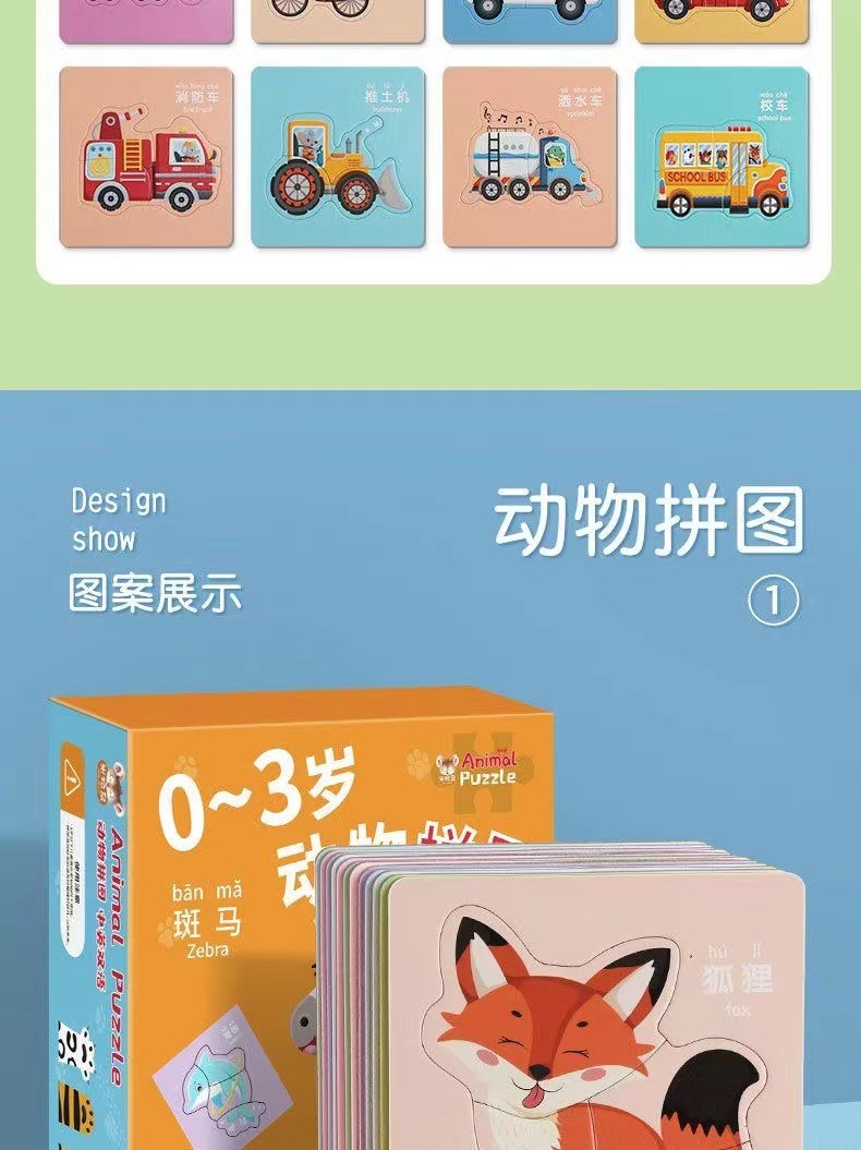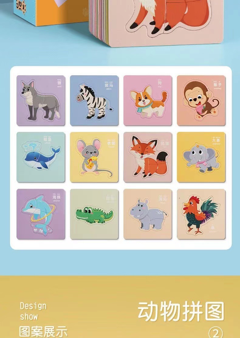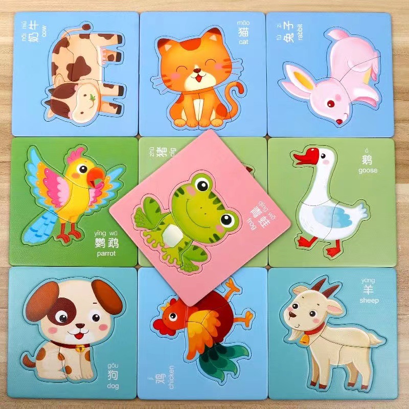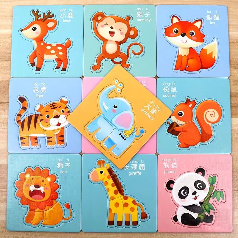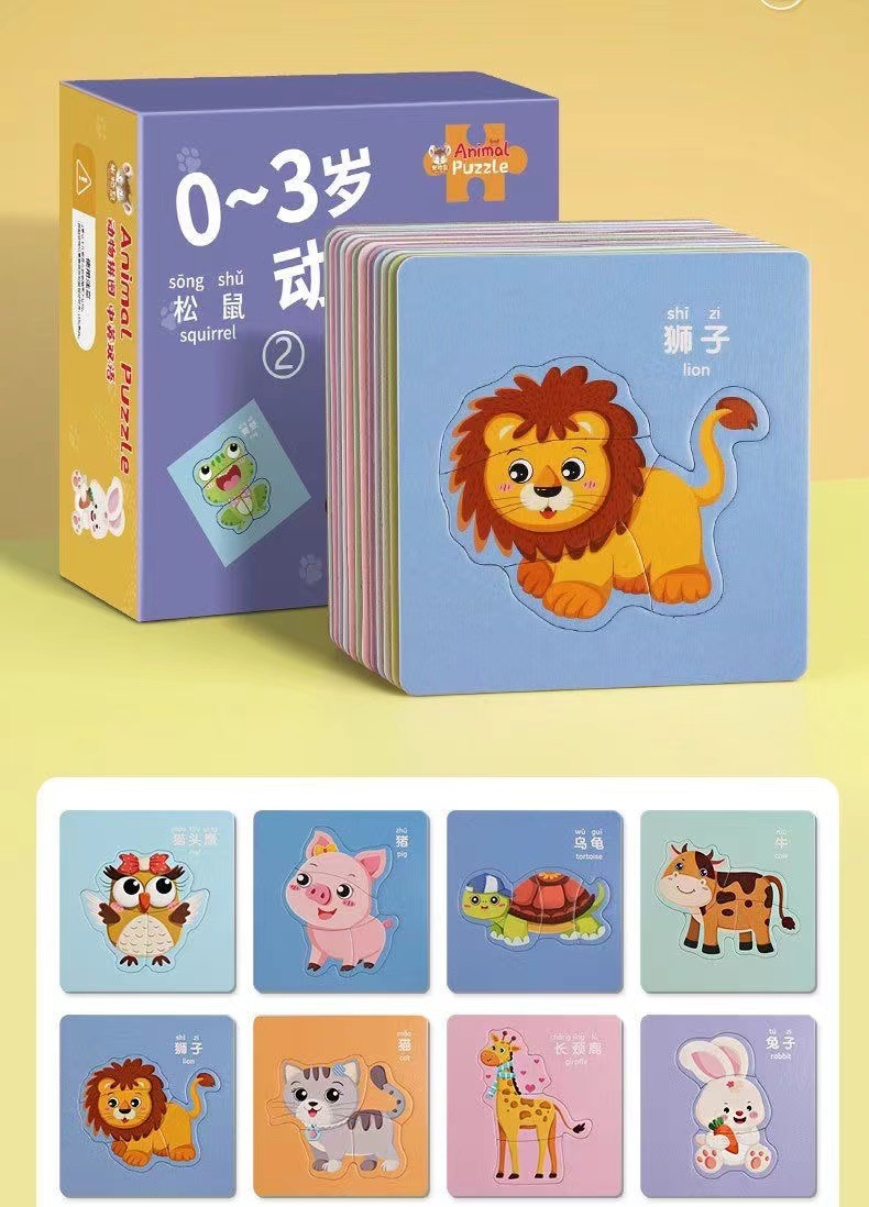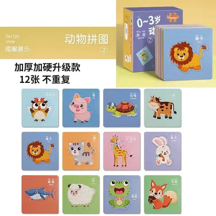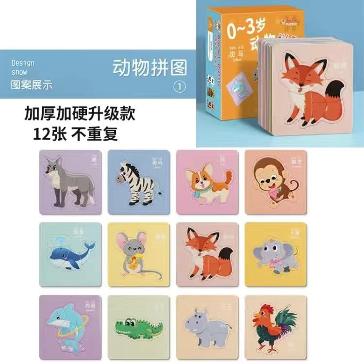 어린이 퍼즐 2 세 아기 3 ~ 6 세 어린이 1 세 반 동물 플랫 차트 3 엔트리 레벨 조기 교육 완구스토어 가기