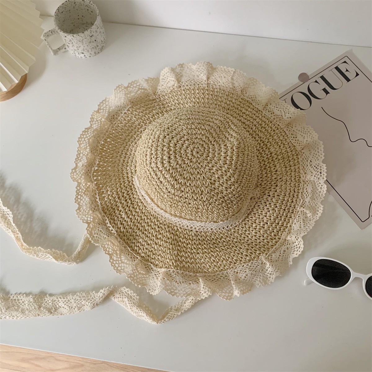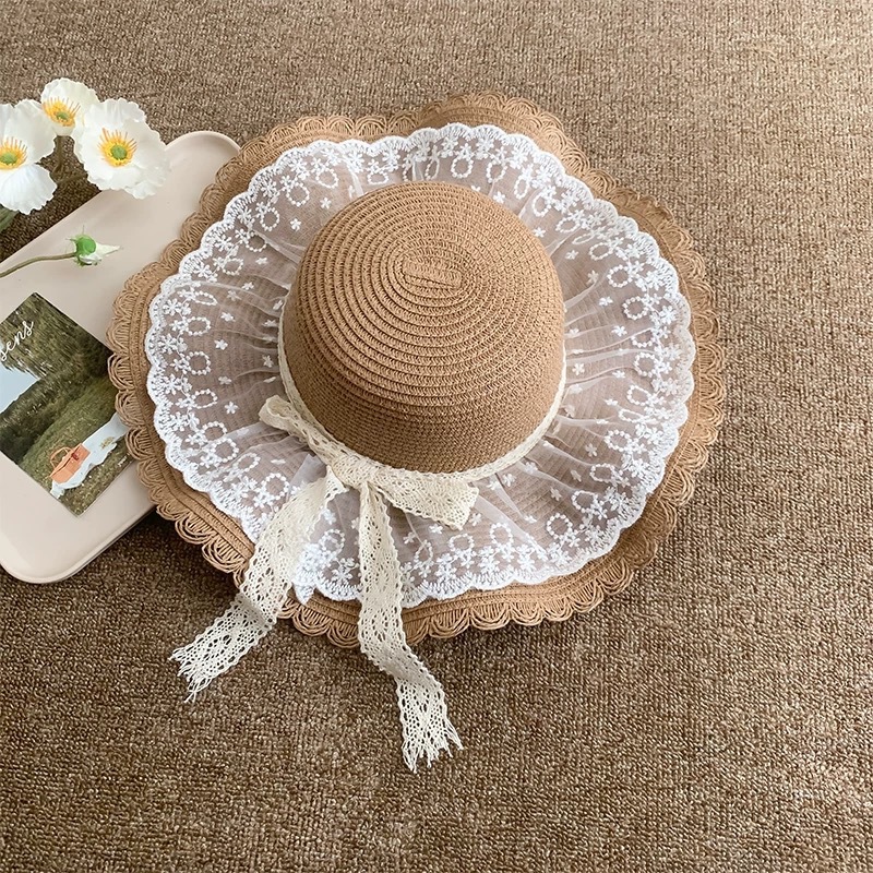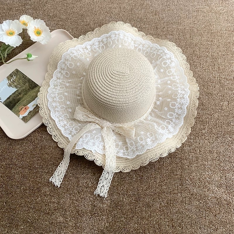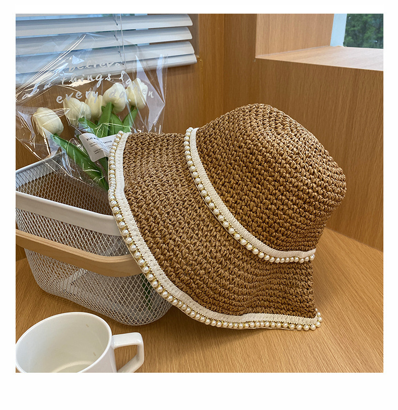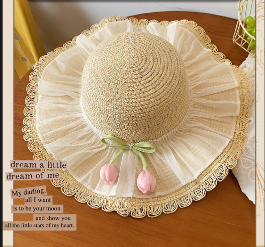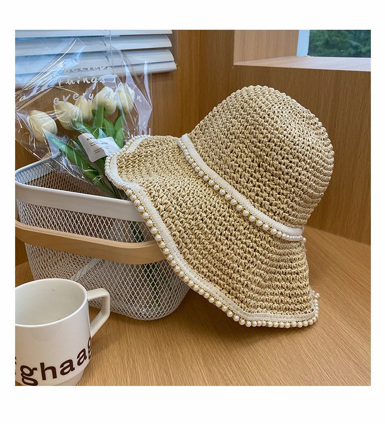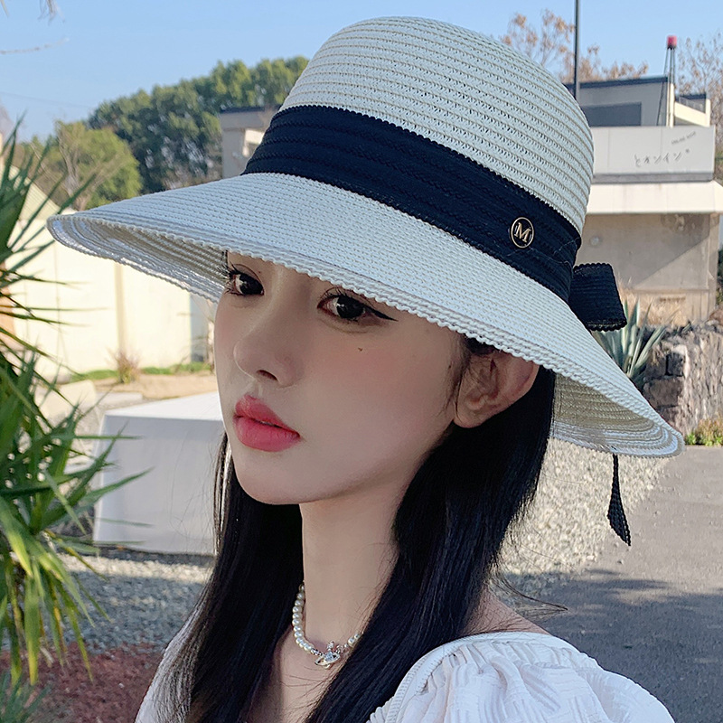 여성용 여름 야외 해변 모자, 큰 챙 튤립 모자, 진주 리본 자외선 차단 모자, 리본 밀짚모스토어 가기