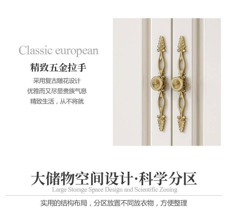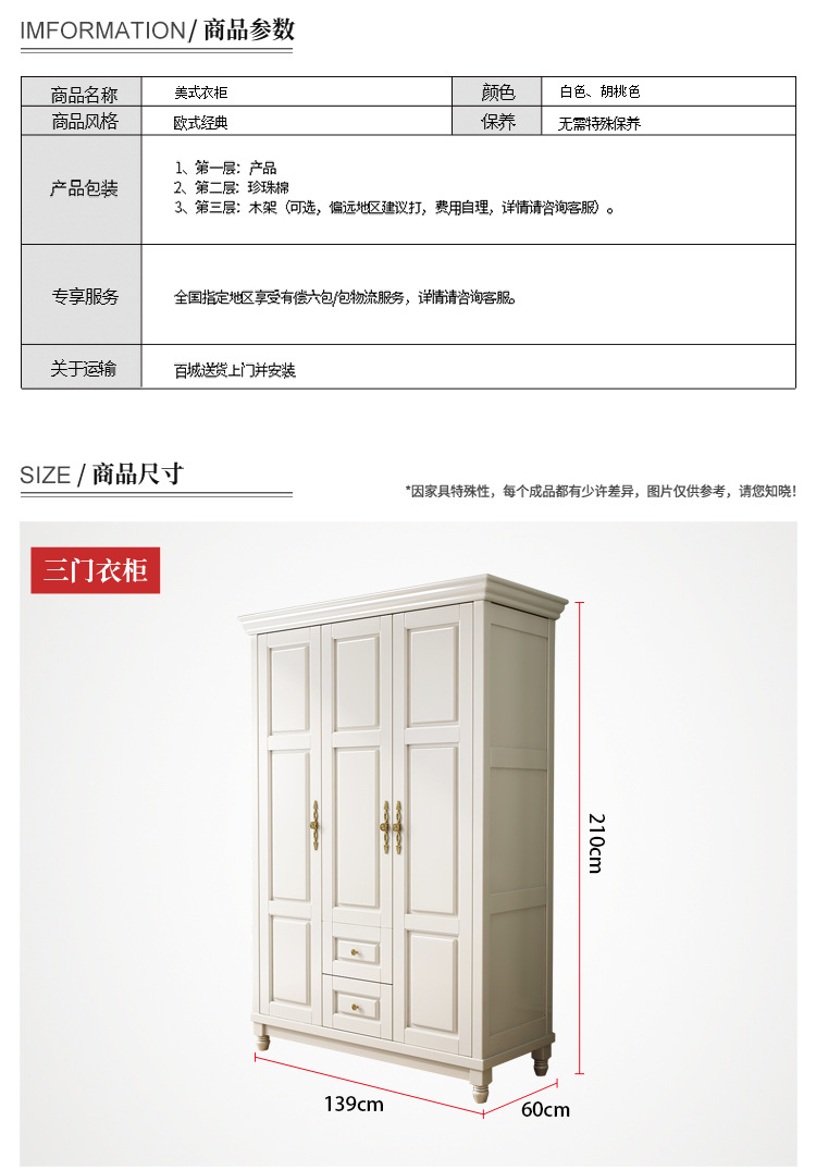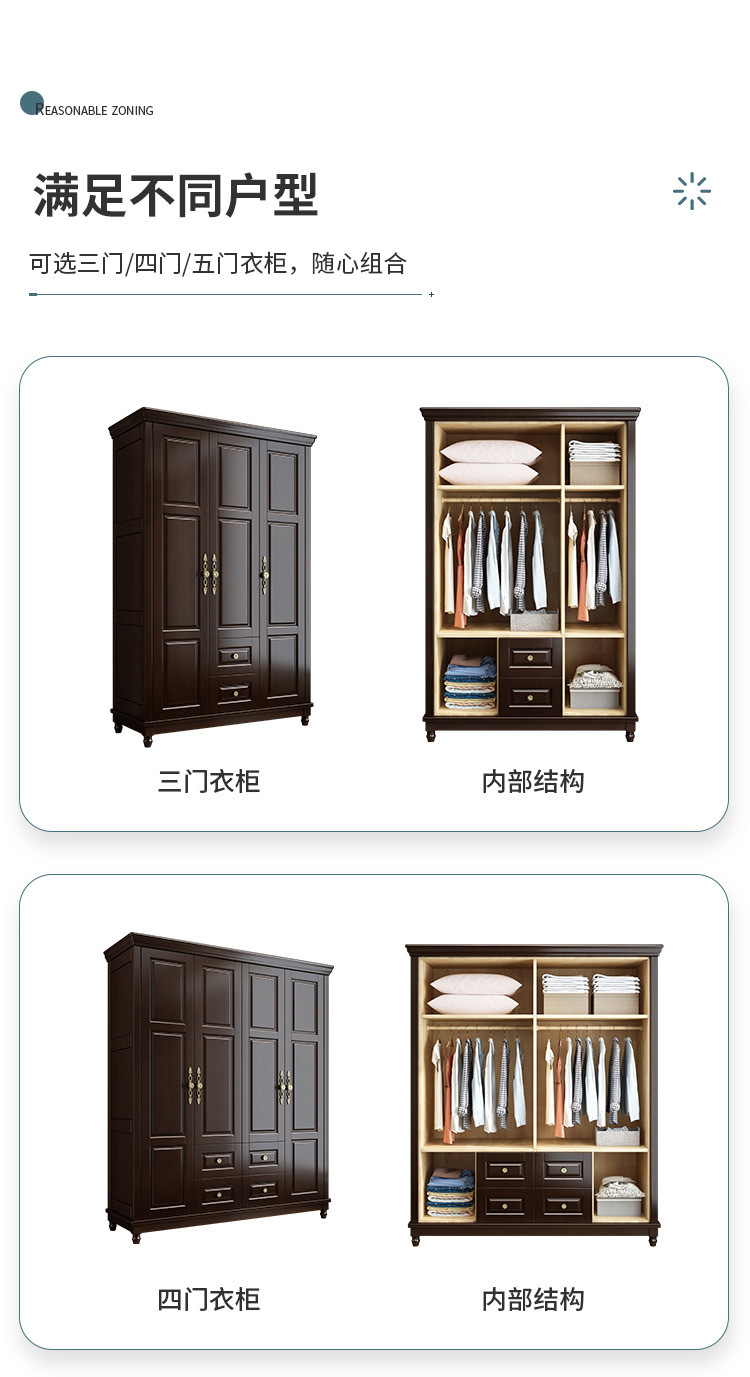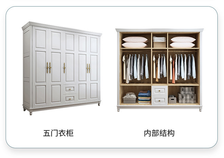 프렌치 원목 옷장, 모던하고 심플하고 경제적인 3도어, 4도어, 5도어 일체형 옷장, 수납장, 원목 옷장