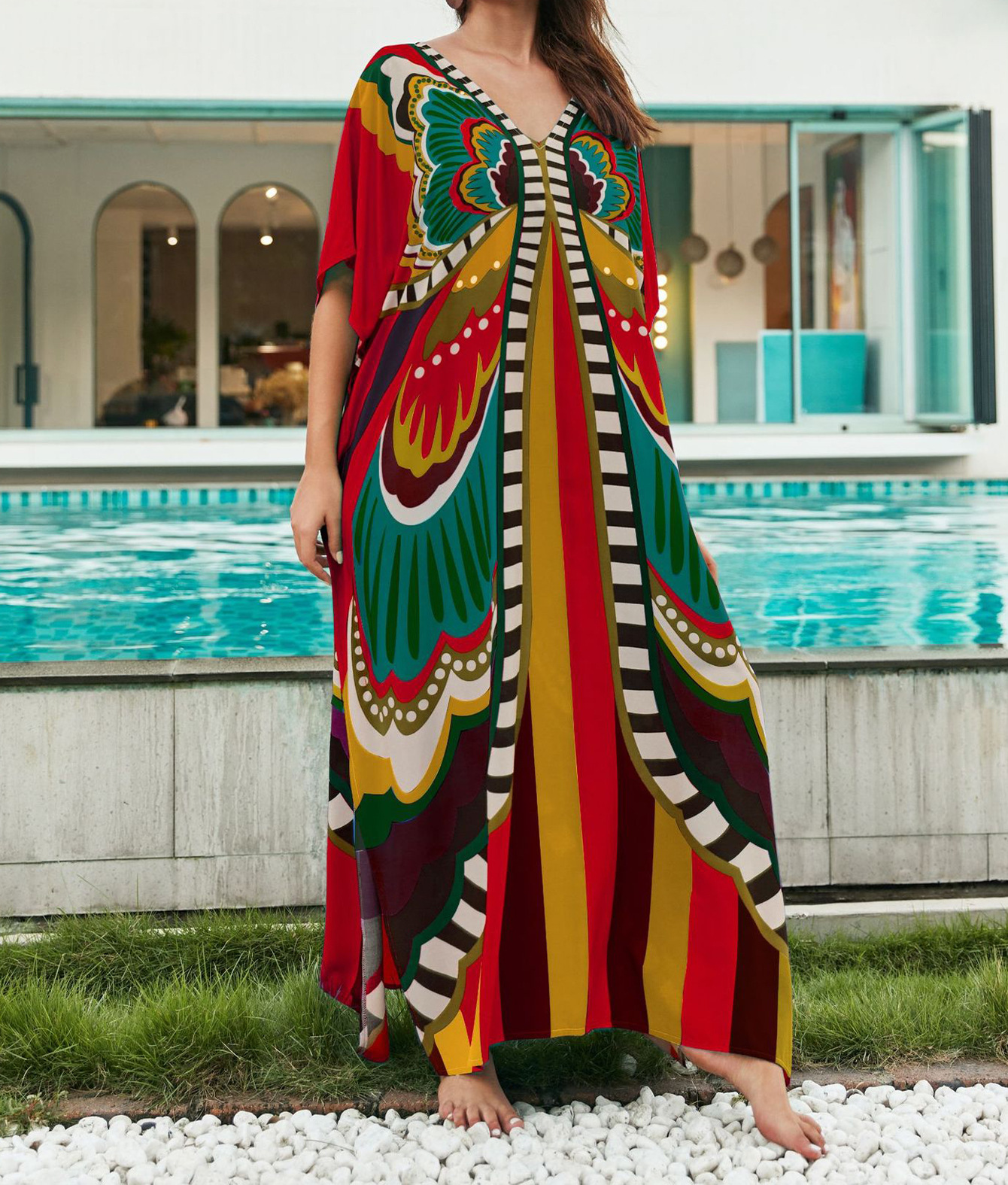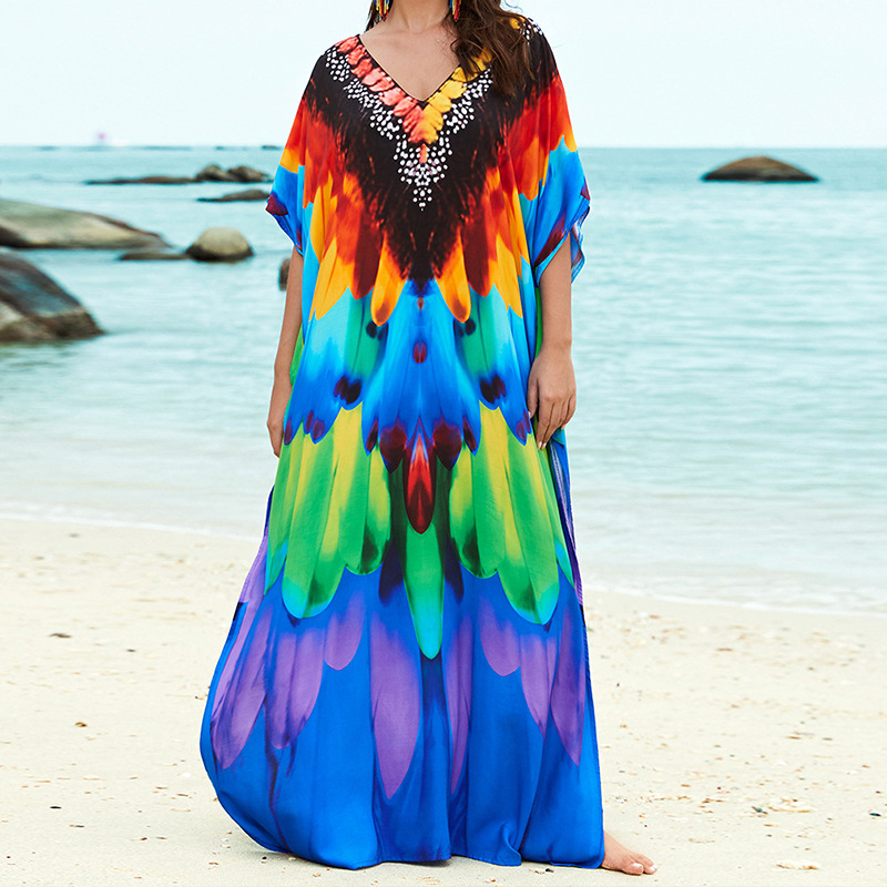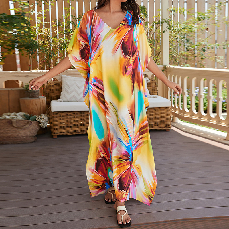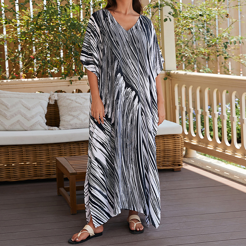 해변 블라우스 면화 포지셔닝 프린트 휴일 홈 가운 국경 아마존 프린트 원피스