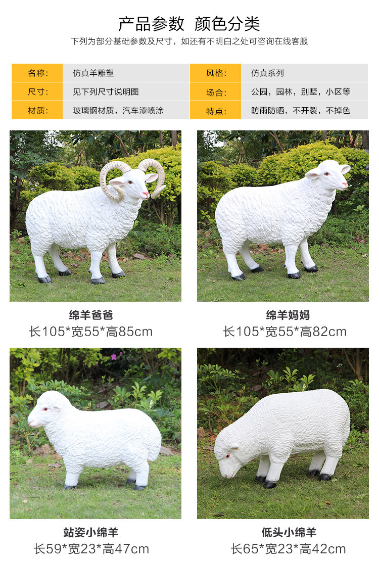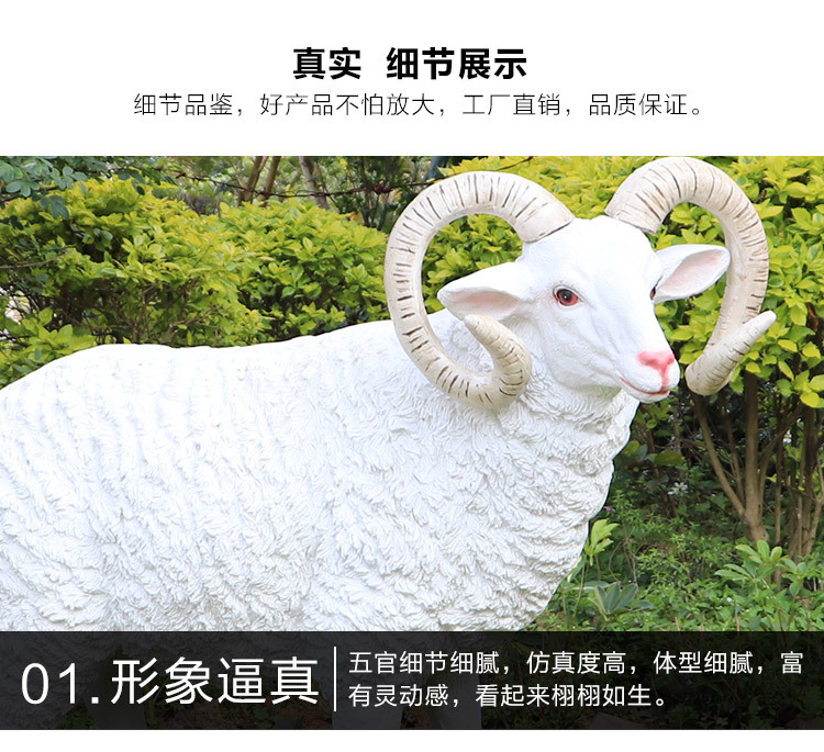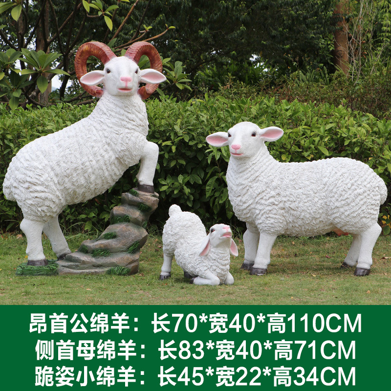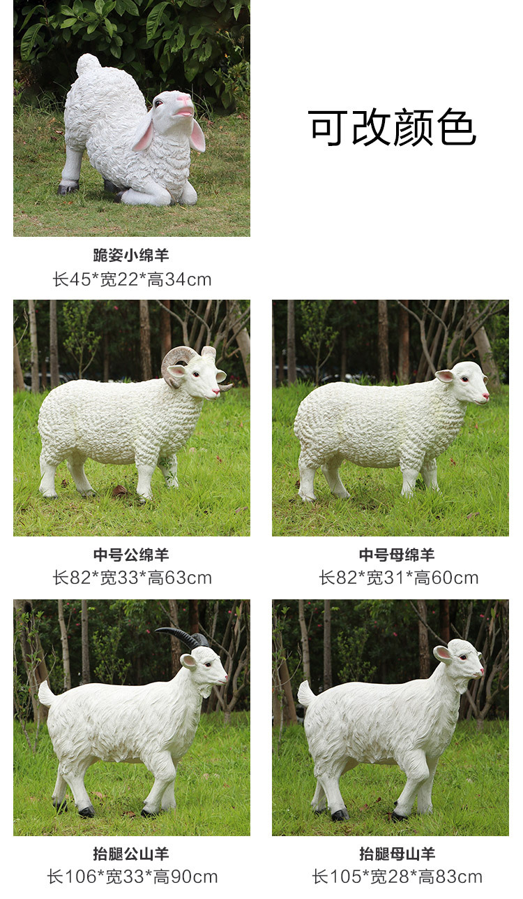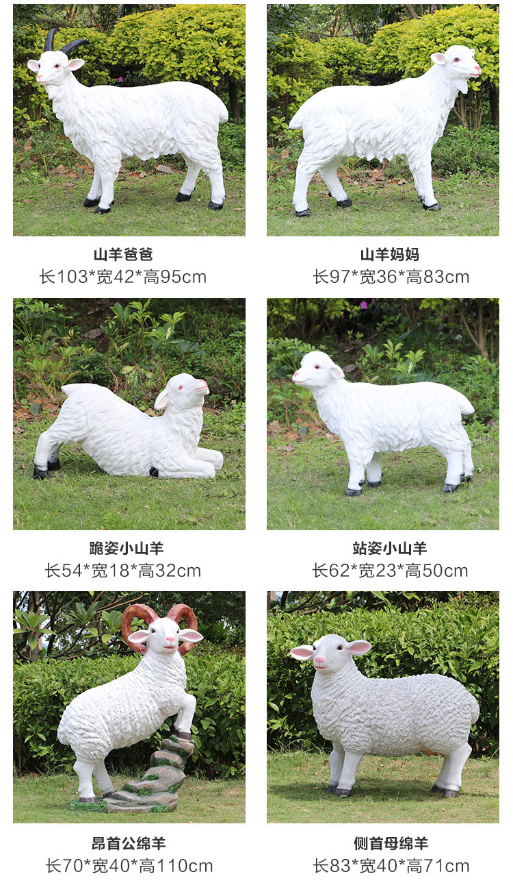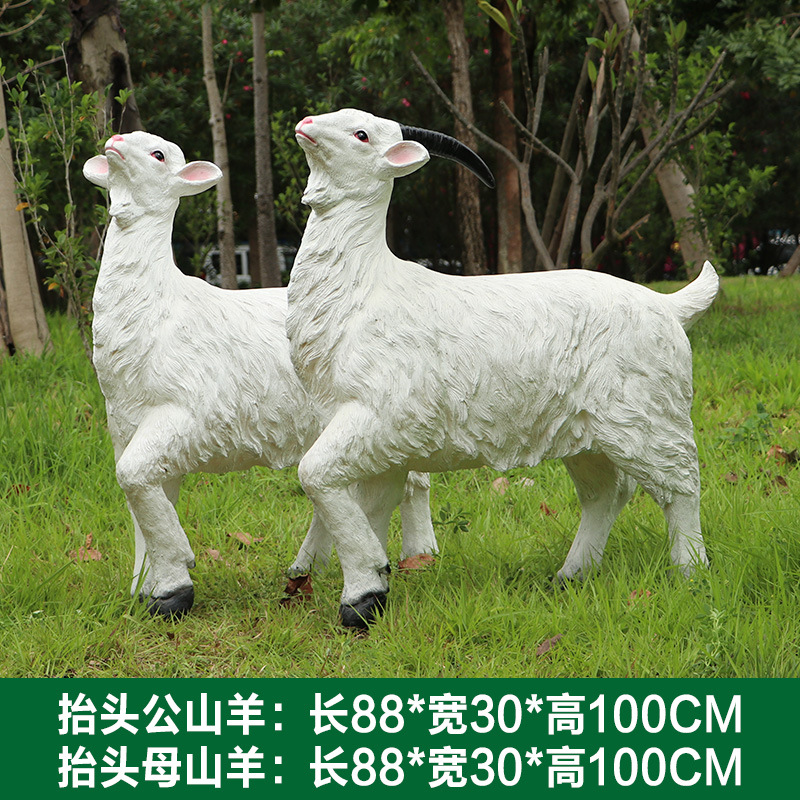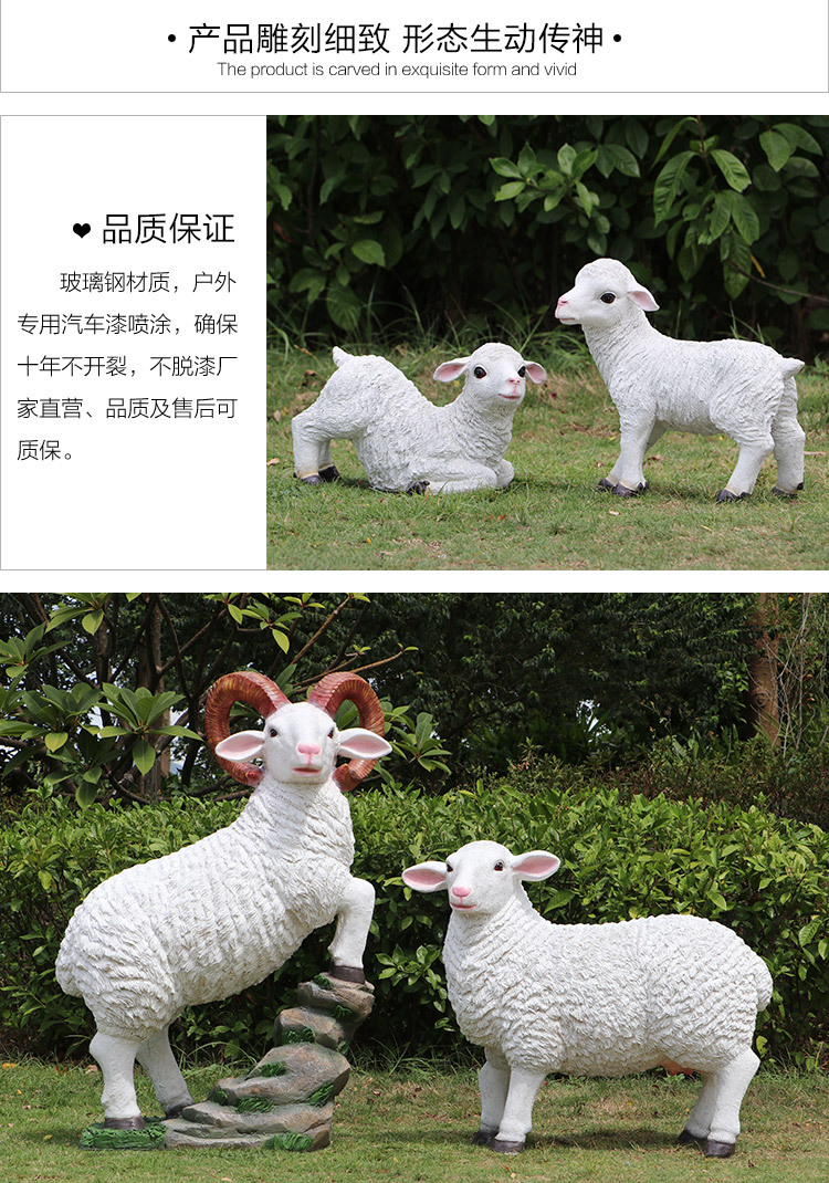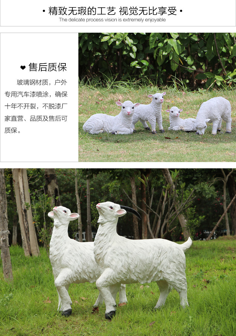 야외 시뮬레이션 양 장식품 정원 조경 유리 강철 염소 조각 공원 잔디 농장 경치 장식스토어 가기