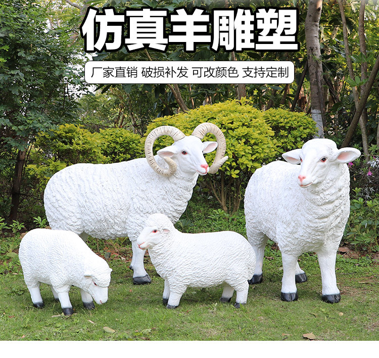 야외 시뮬레이션 양 장식품 정원 조경 유리 강철 염소 조각 공원 잔디 농장 경치 장식