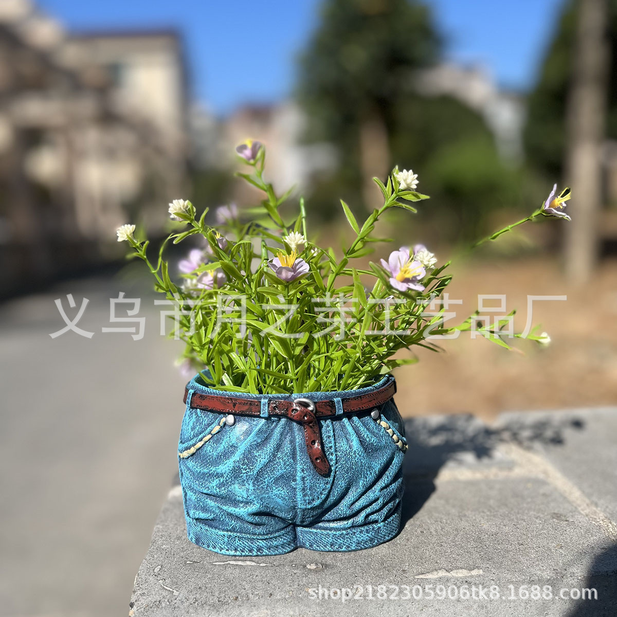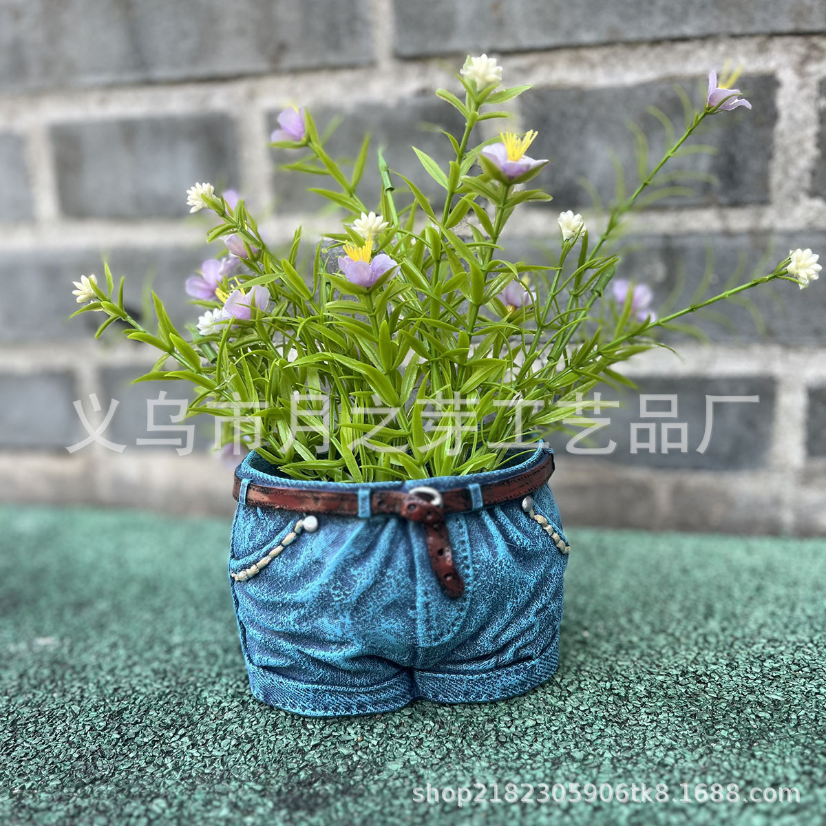창의 데님 반바지 꽃 냄비 독특한 수지 동상 홈 발코니 장식 정원 장식품