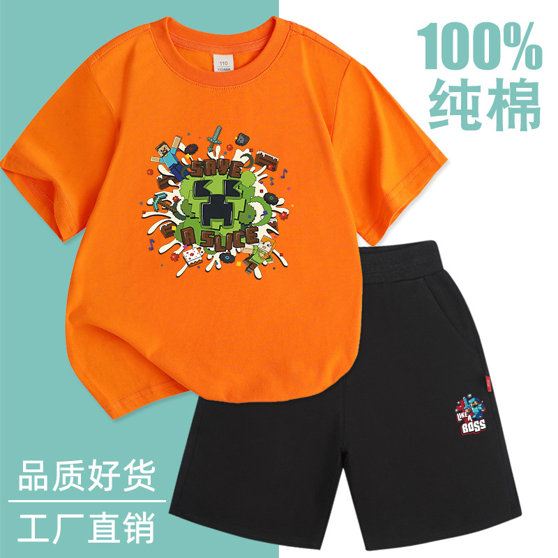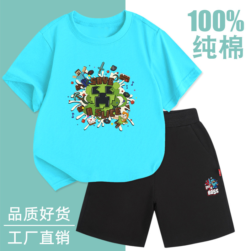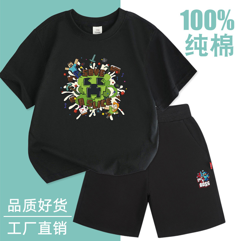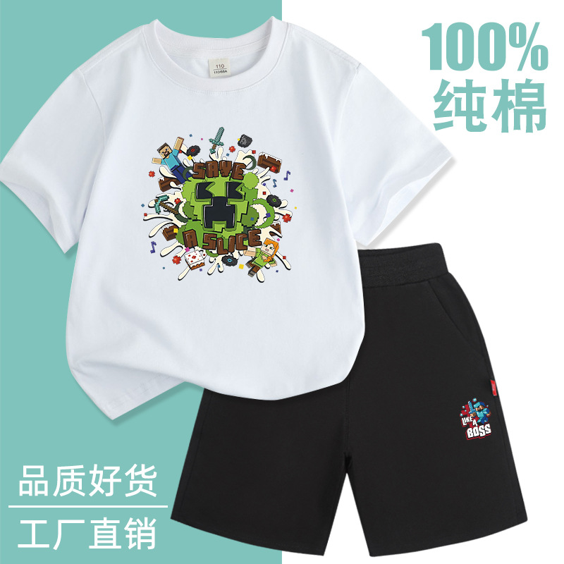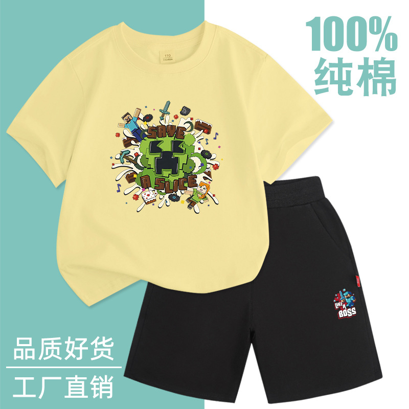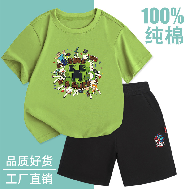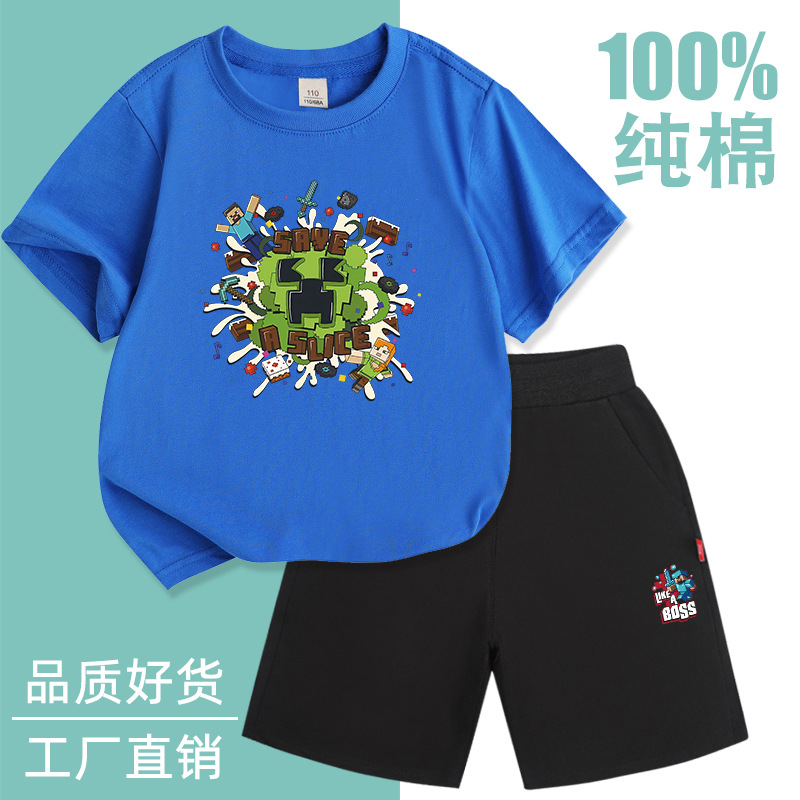 어린이 여름옷 세트, 남아용 트렌디한 여름 반팔 반바지 순면 투피스 세트, 즉시 배송 가능스토어 가기