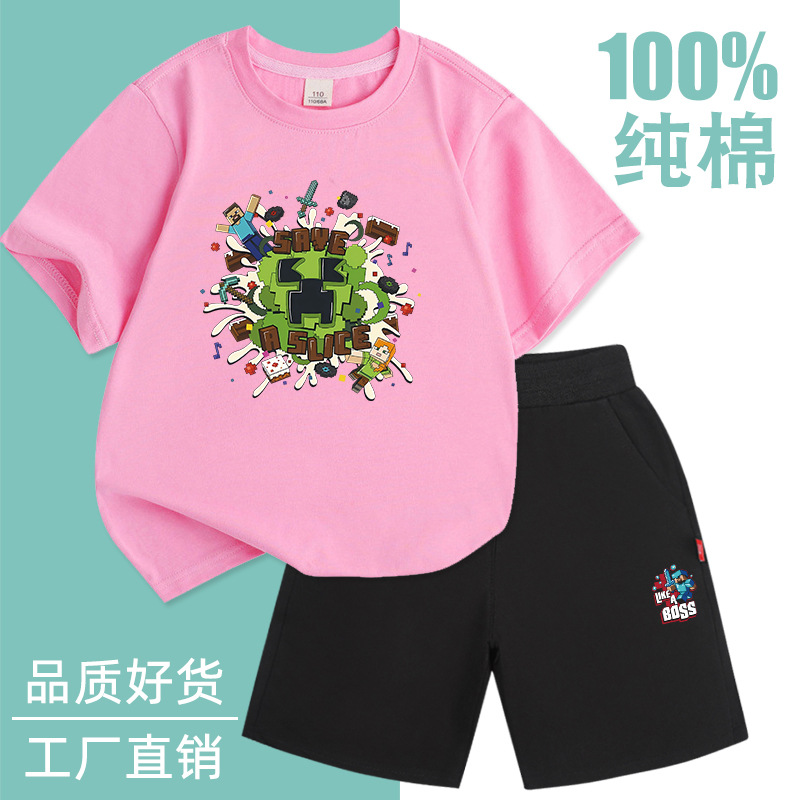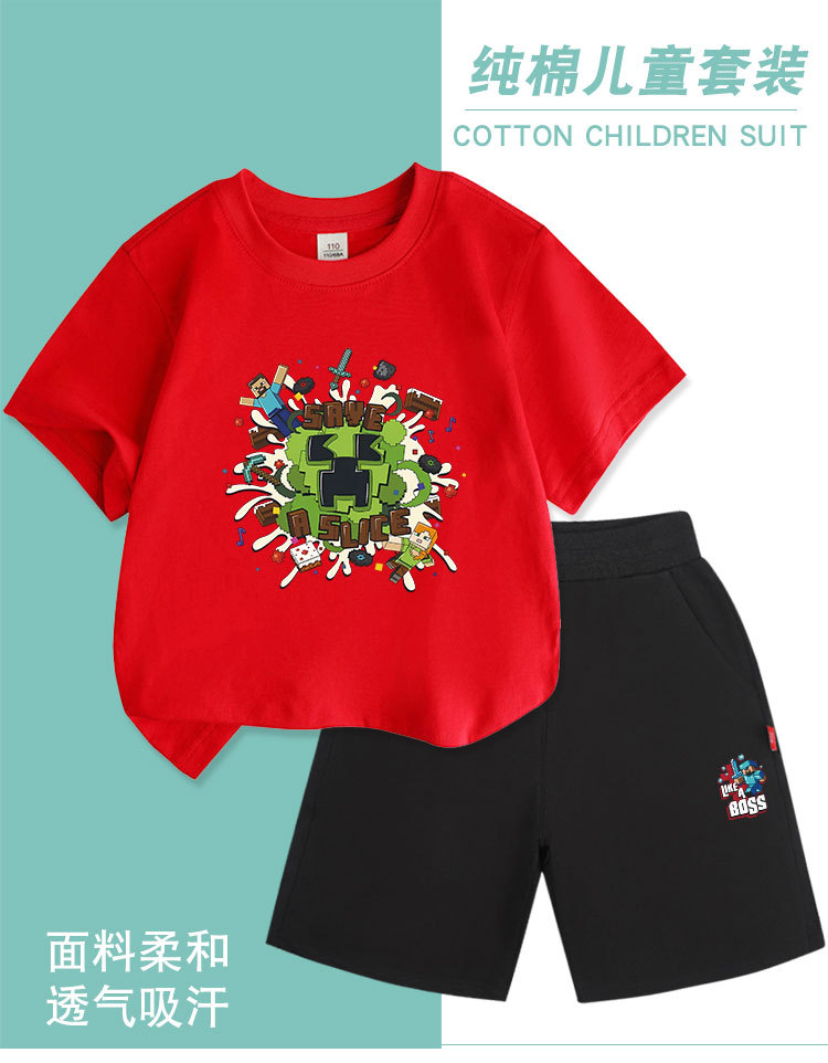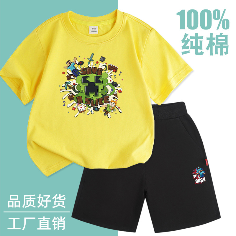 어린이 여름옷 세트, 남아용 트렌디한 여름 반팔 반바지 순면 투피스 세트, 즉시 배송 가능