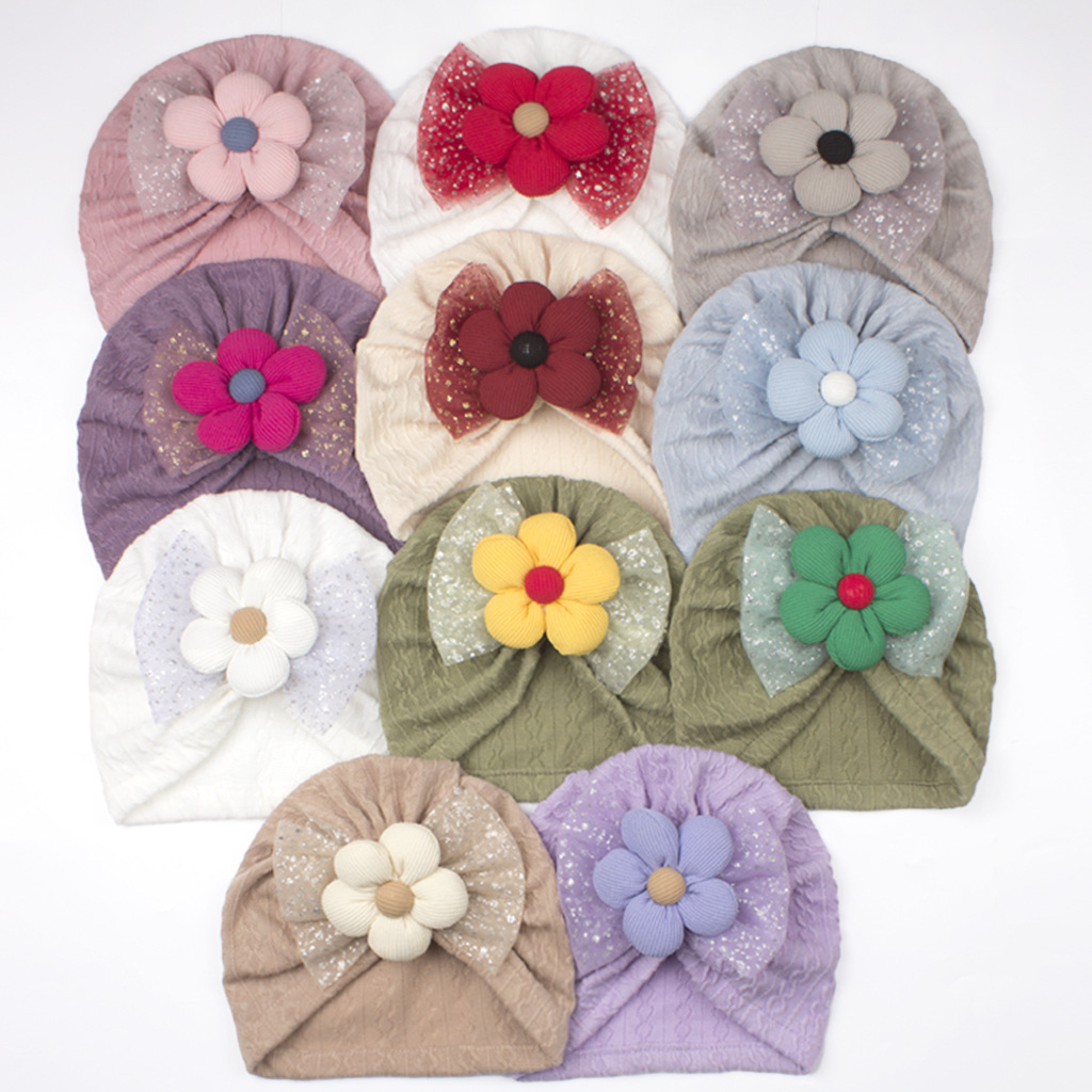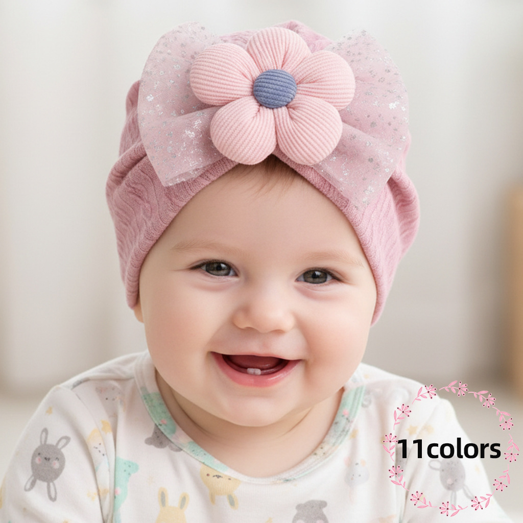 유럽과 미국의 새로운 스타일 아동용 모자, 금박 메쉬 리본 꽃무늬 아기 모자, 사계절 부드럽고 편안한 유아용 모자스토어 가기