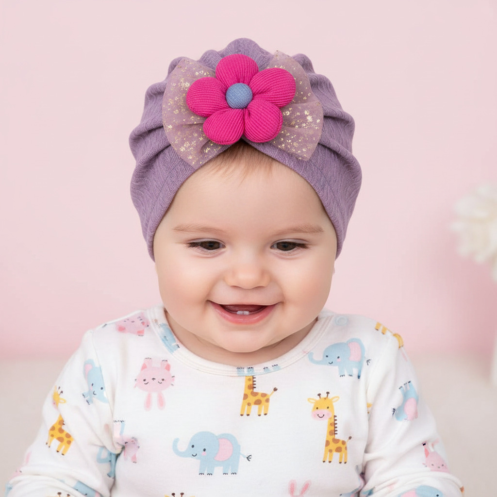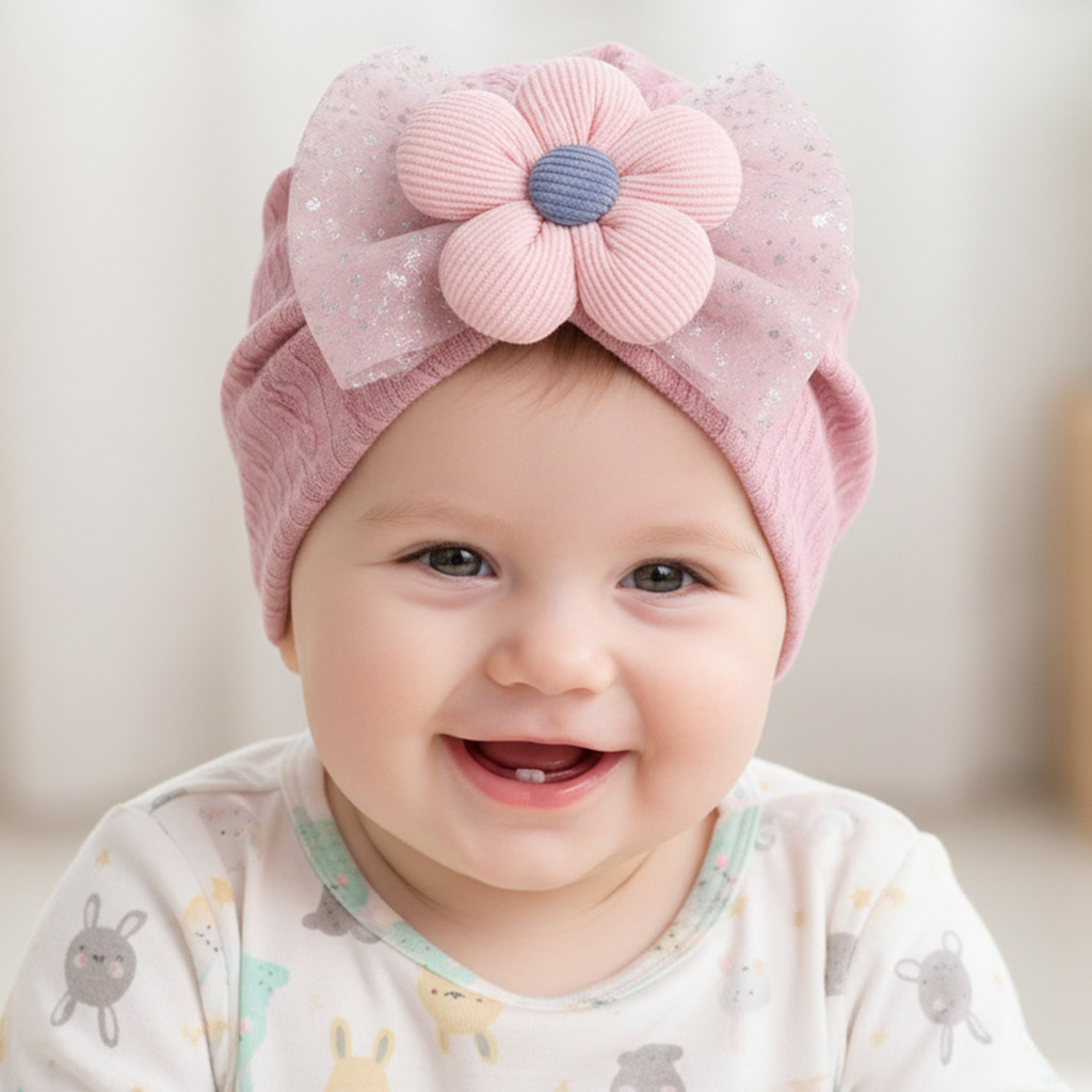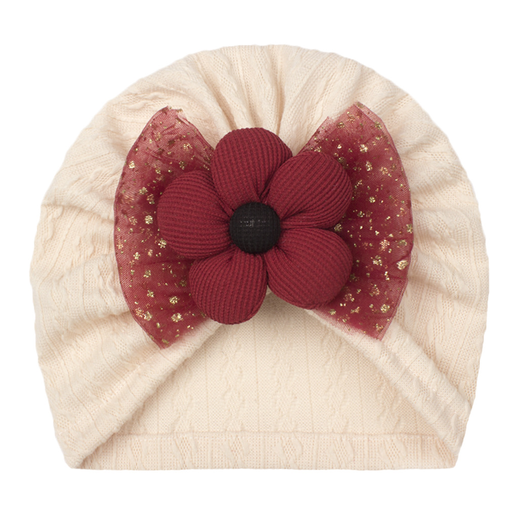유럽과 미국의 새로운 스타일 아동용 모자, 금박 메쉬 리본 꽃무늬 아기 모자, 사계절 부드럽고 편안한 유아용 모자