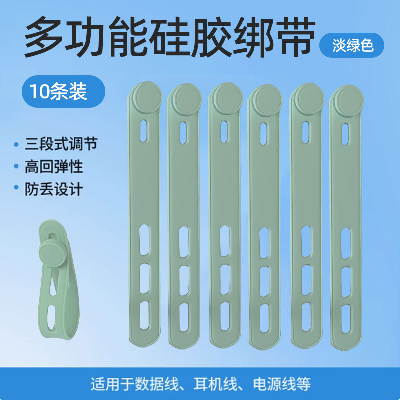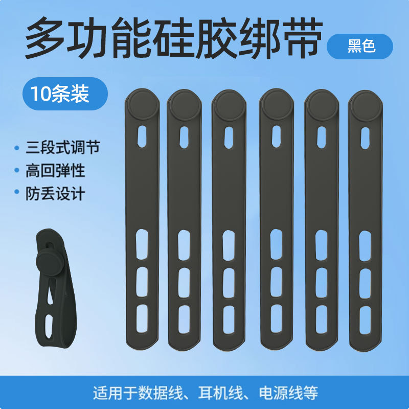数据线等多功能捆绑扎带,弹性硅胶,自扣设计