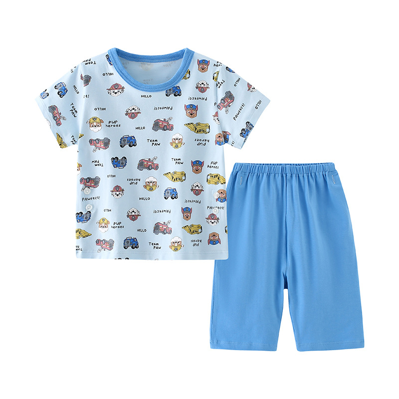 여름 어린이 순면 홈웨어 세트 일본 스타일 남아 여아 반팔 투피스 세트 만화 어린이복 신상품
