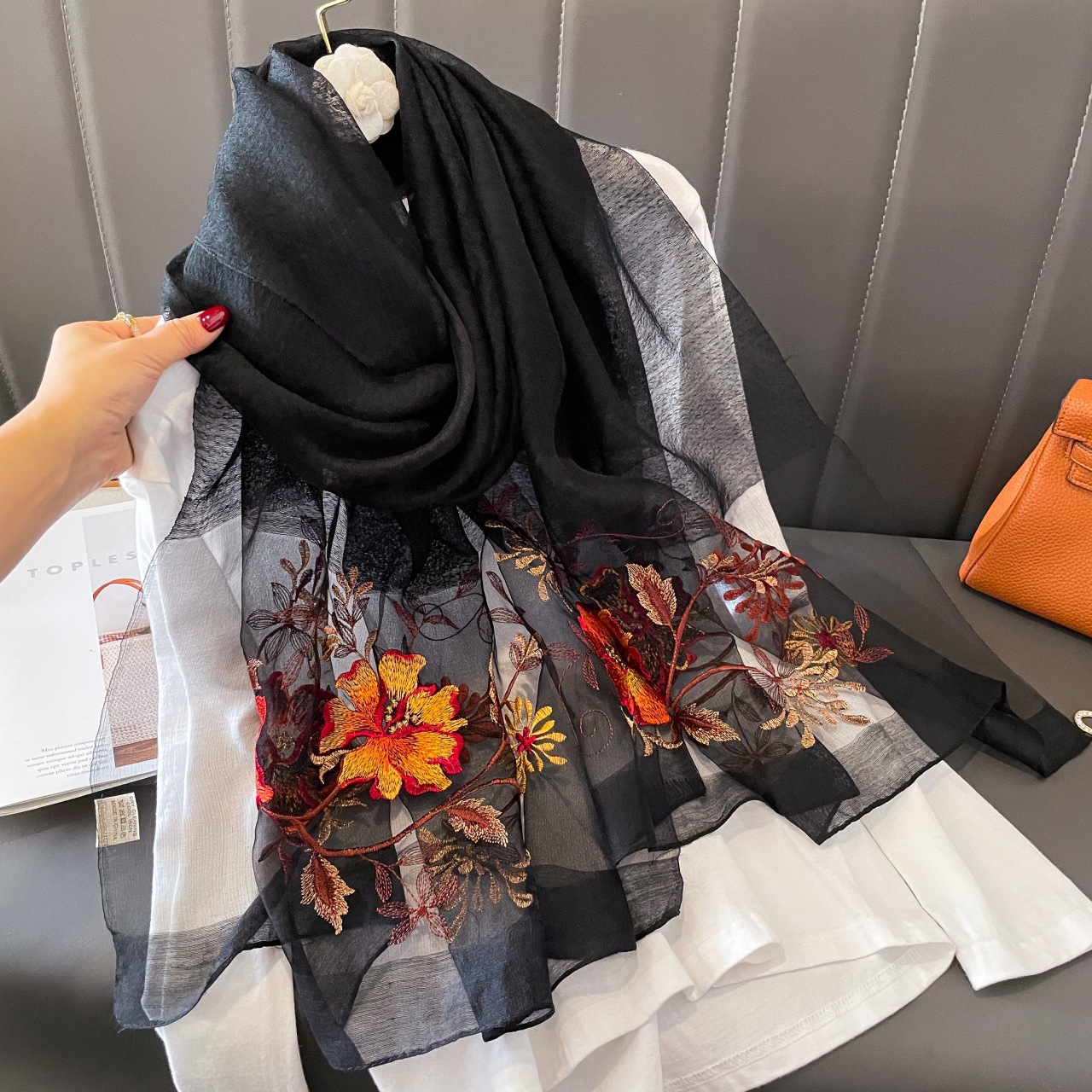 丝巾尺寸为:70*190cm(±5cm)