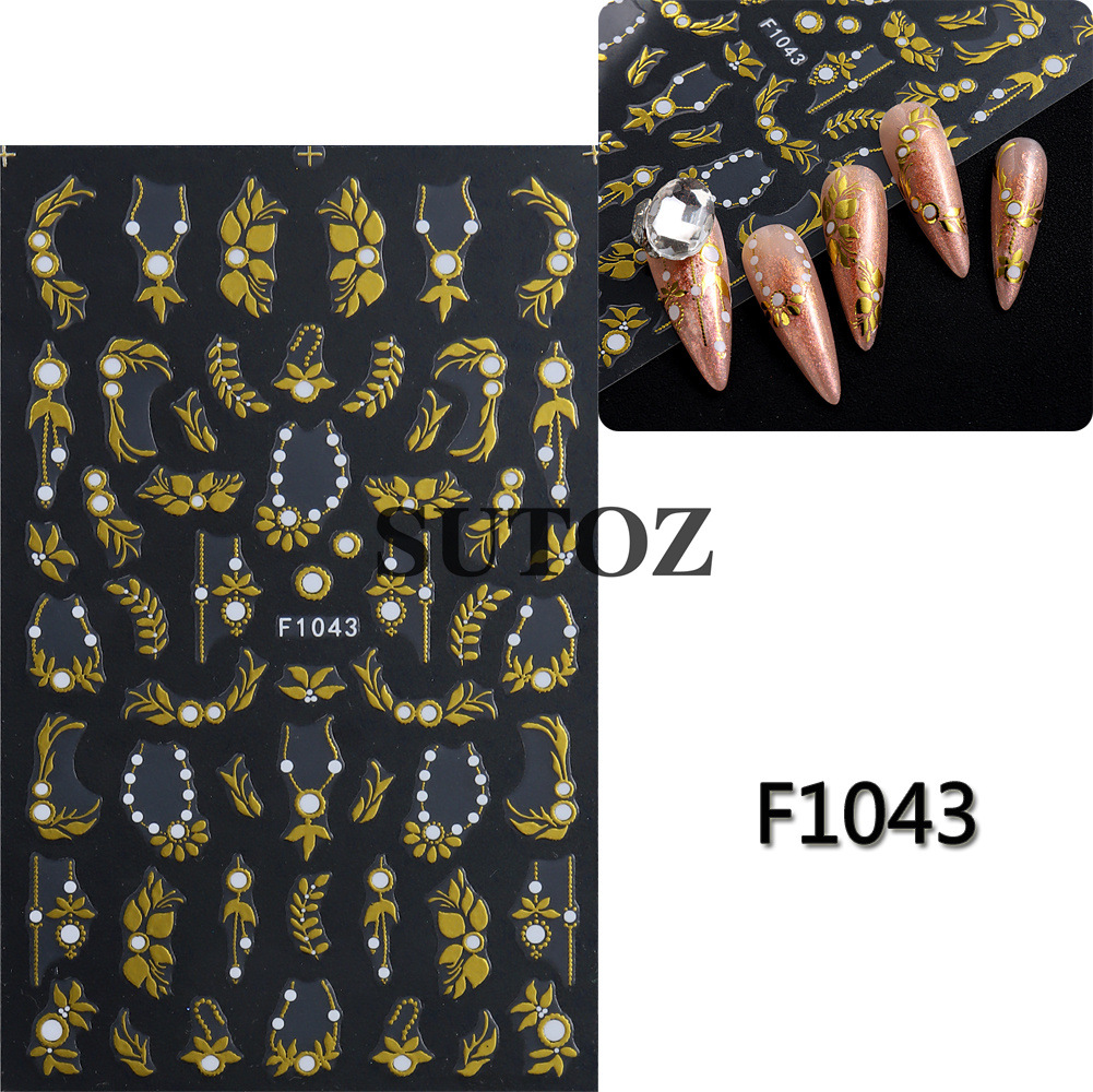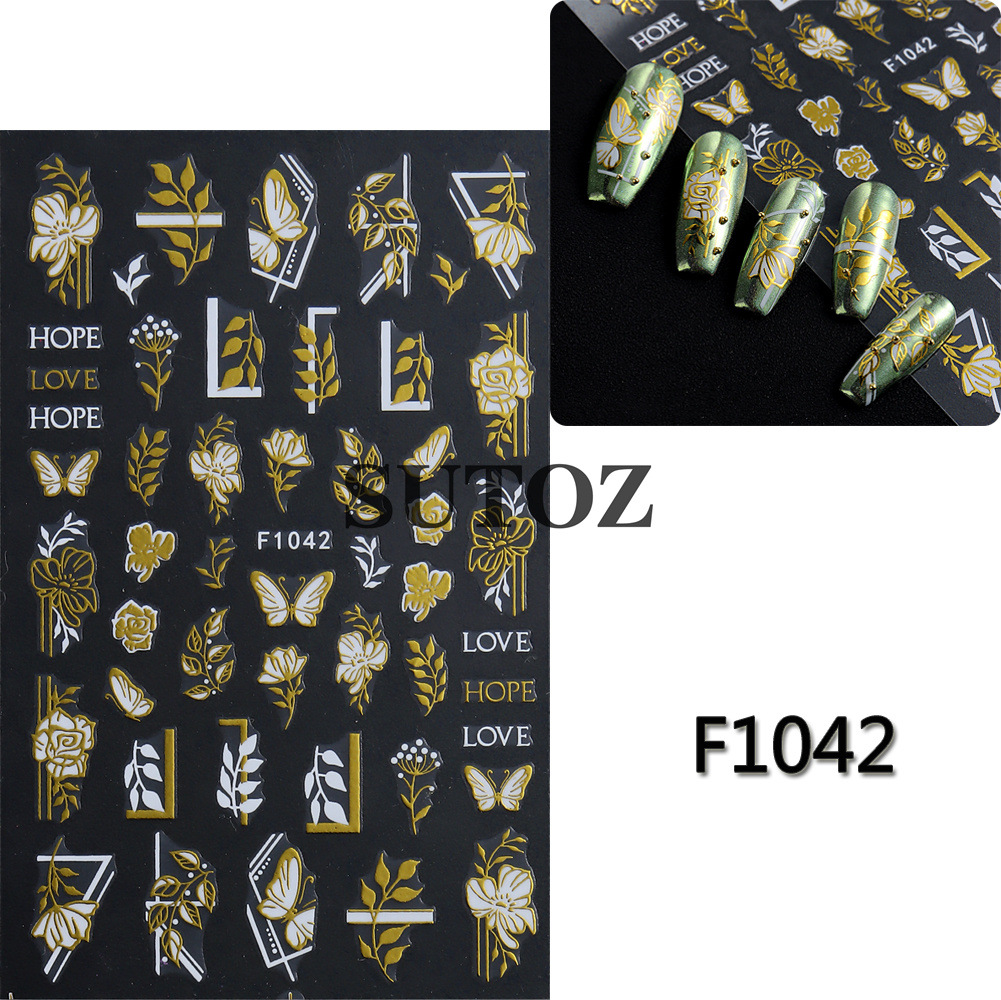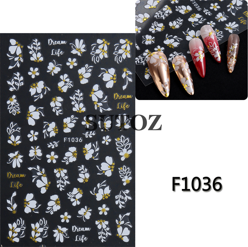 2024 국경을 넘는 새로운 네일 아트 스티커 Ins 간단한 브론징 리프 작은 데이지 꽃 네일 다시 접착 스티커