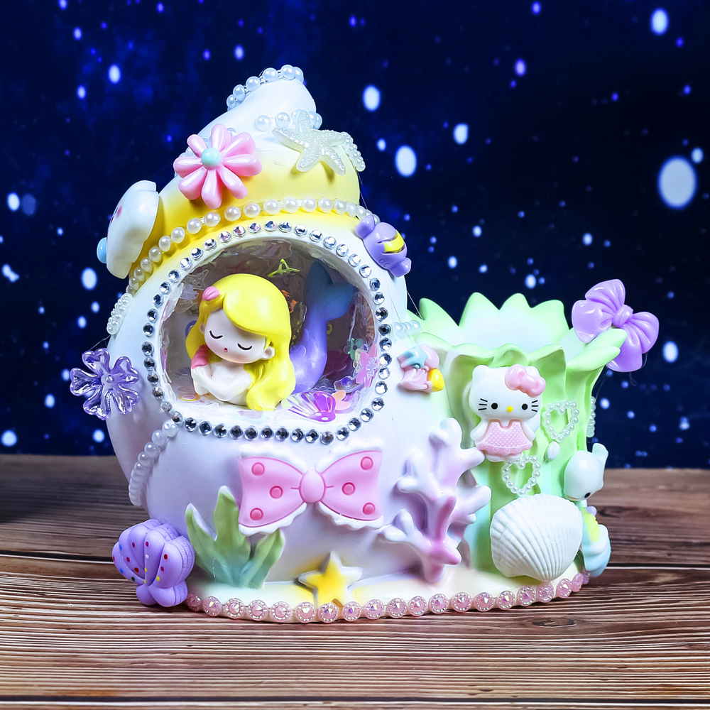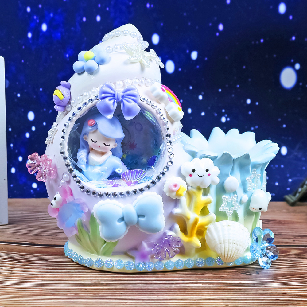 인어 쉘 나이트 라이트 어린이 수제 DIY 크림 접착제 소재 가방 창조적 인 선물 소녀 교육 장난감