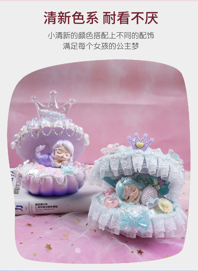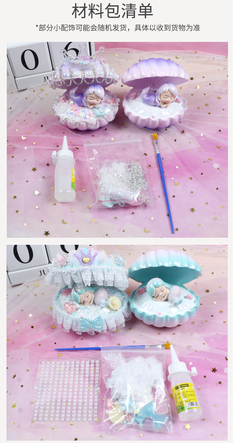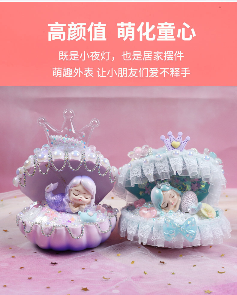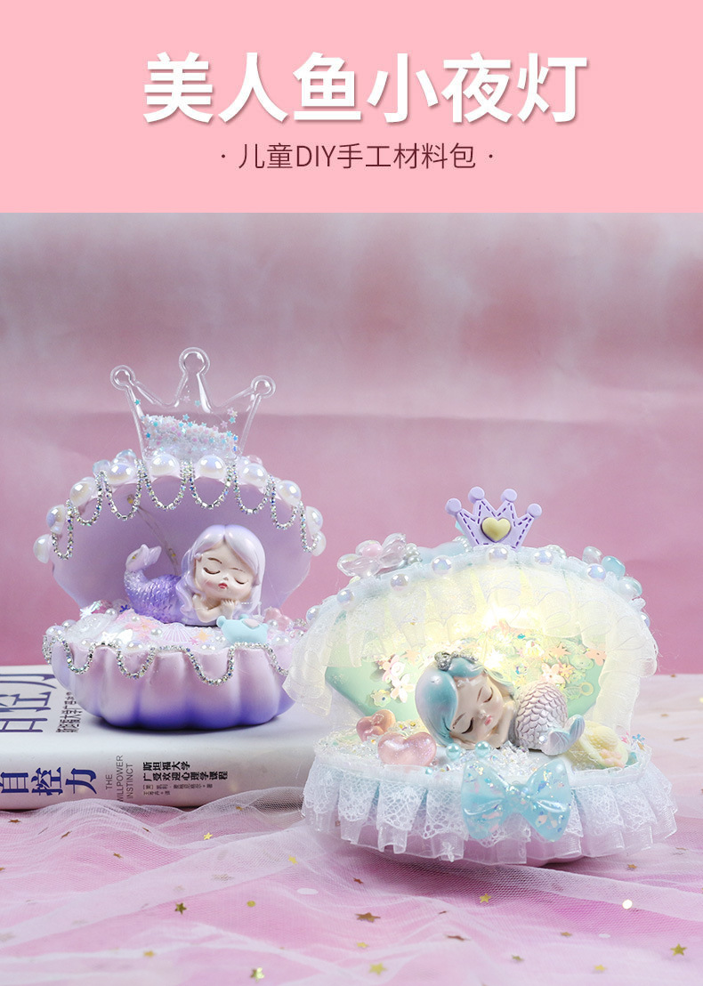 인어 쉘 나이트 라이트 어린이 수제 DIY 크림 접착제 소재 가방 창조적 인 선물 소녀 교육 장난감스토어 가기