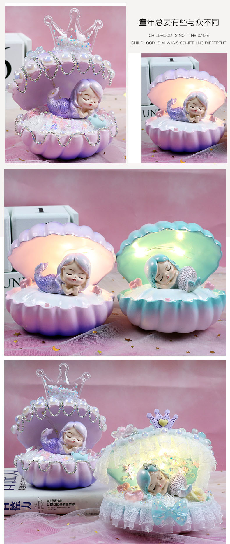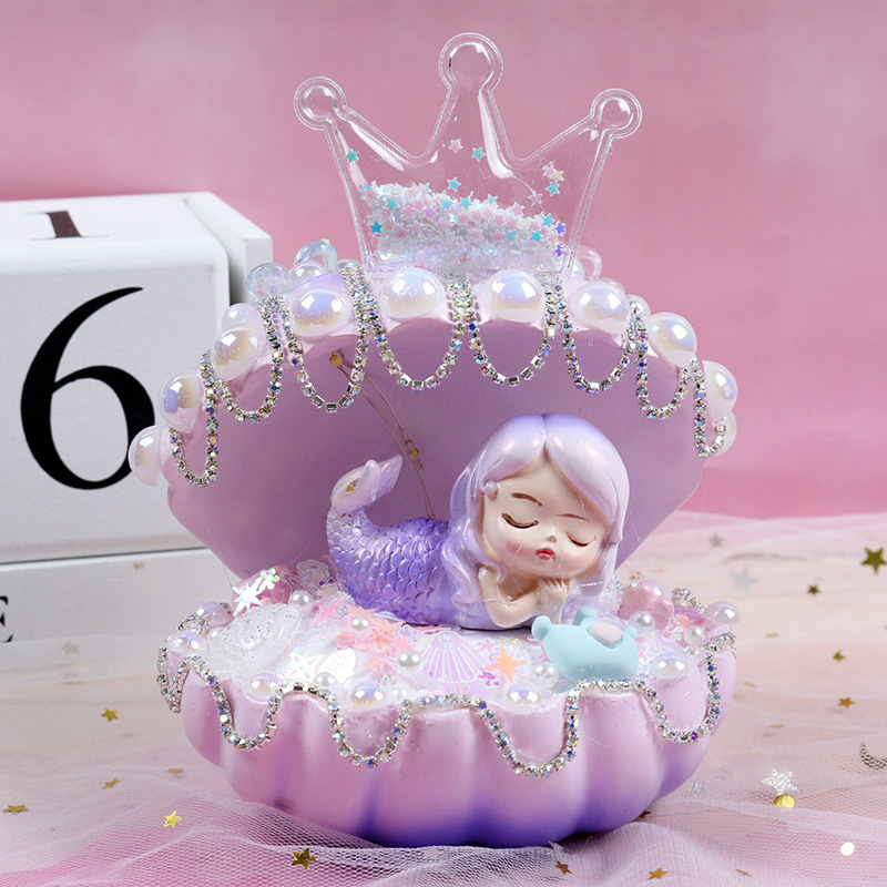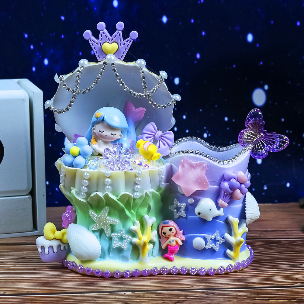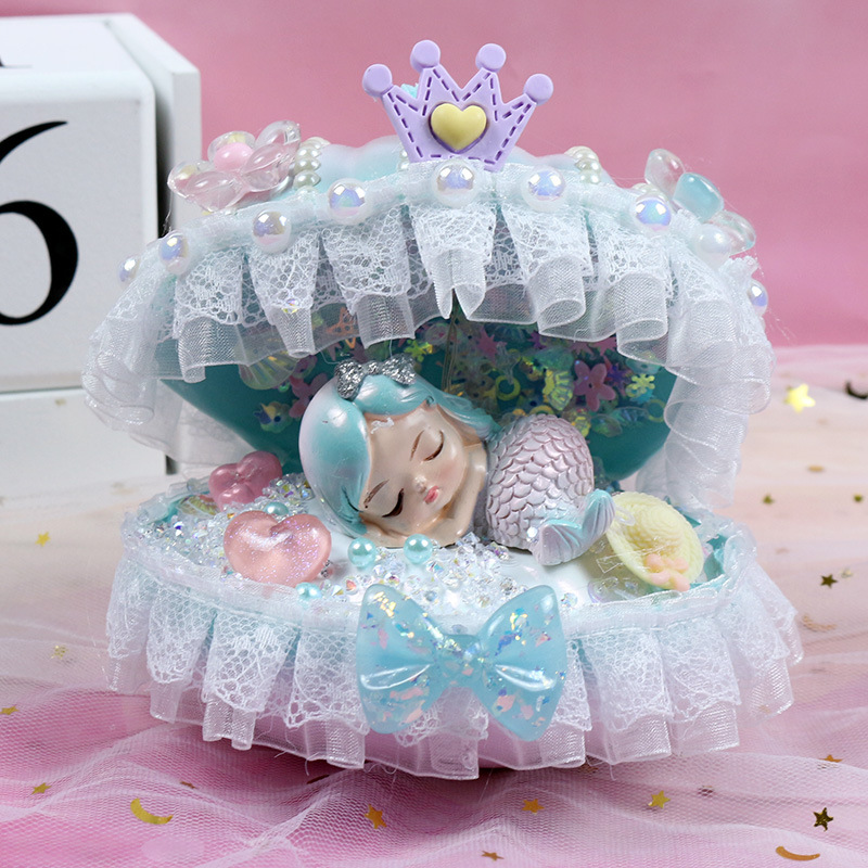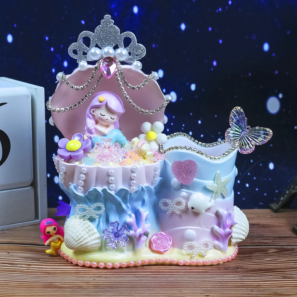 인어 쉘 나이트 라이트 어린이 수제 DIY 크림 접착제 소재 가방 창조적 인 선물 소녀 교육 장난감스토어 가기
