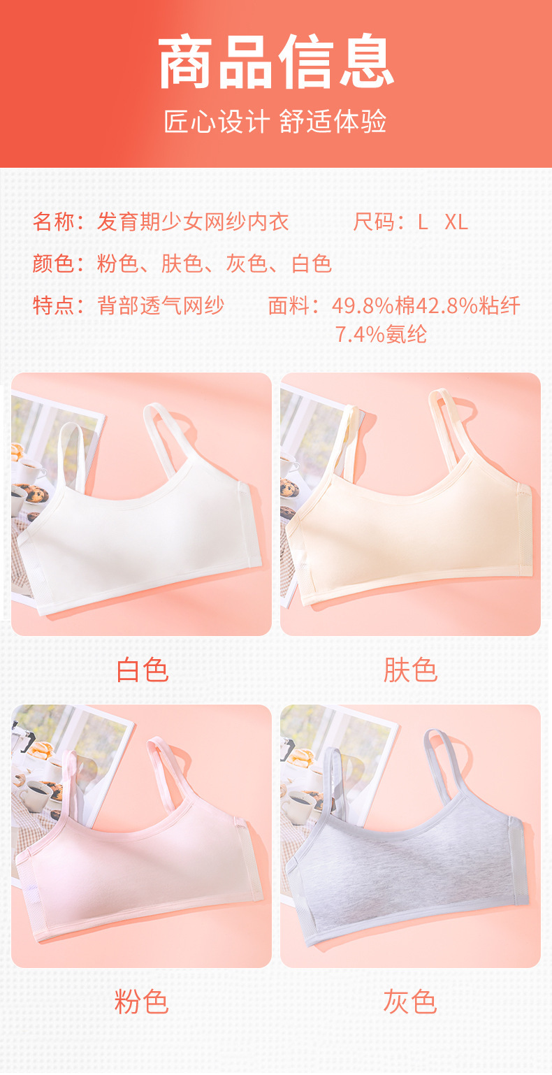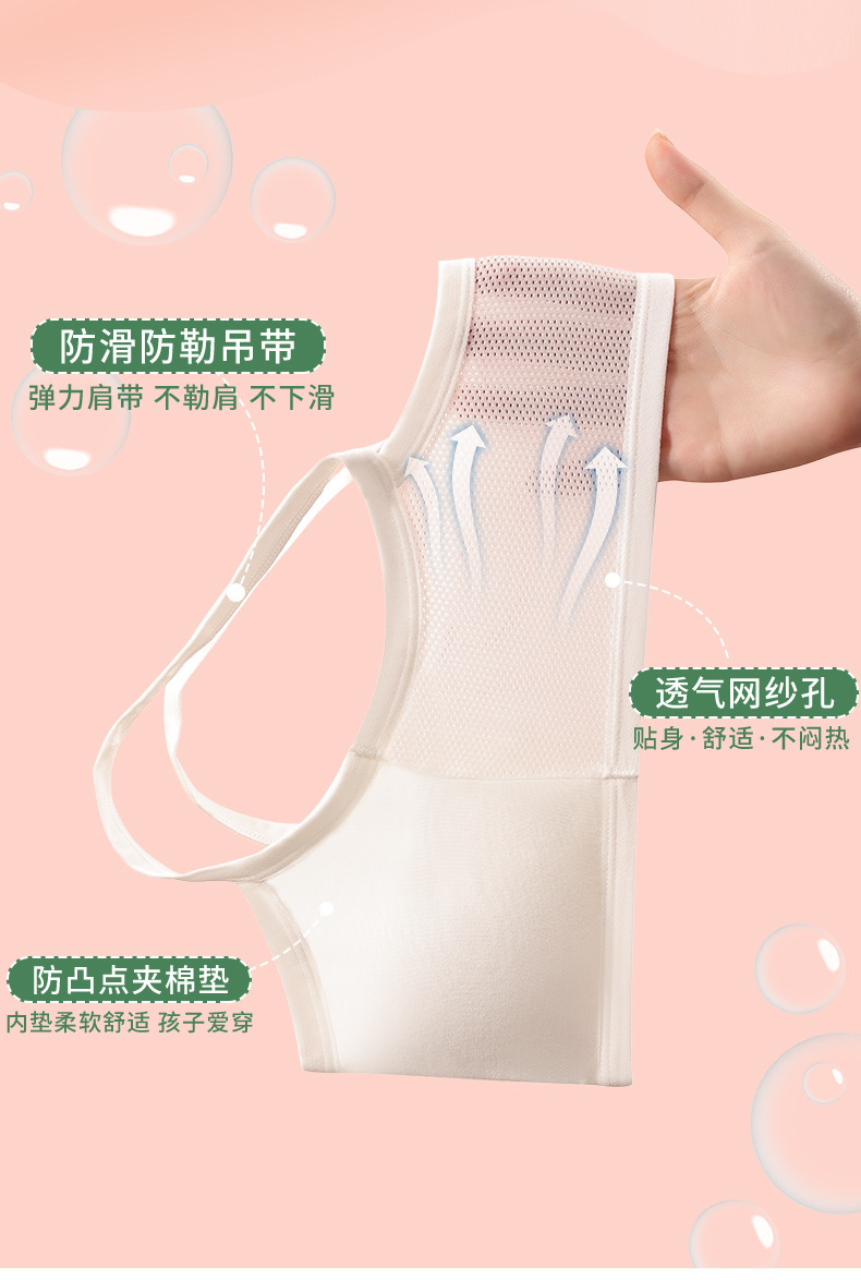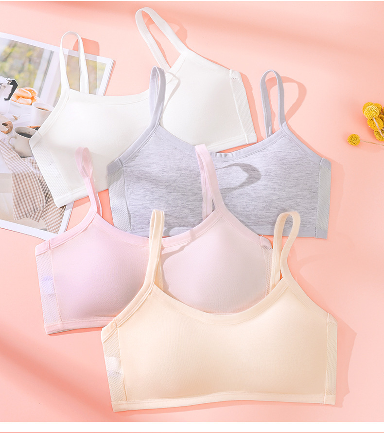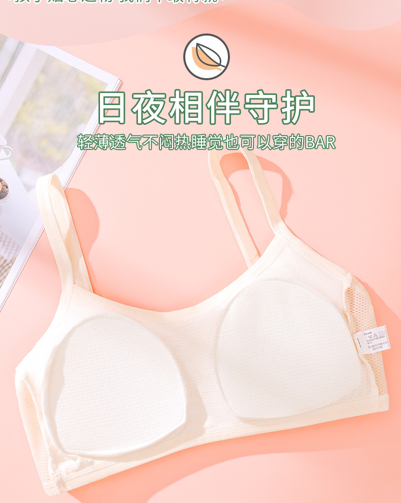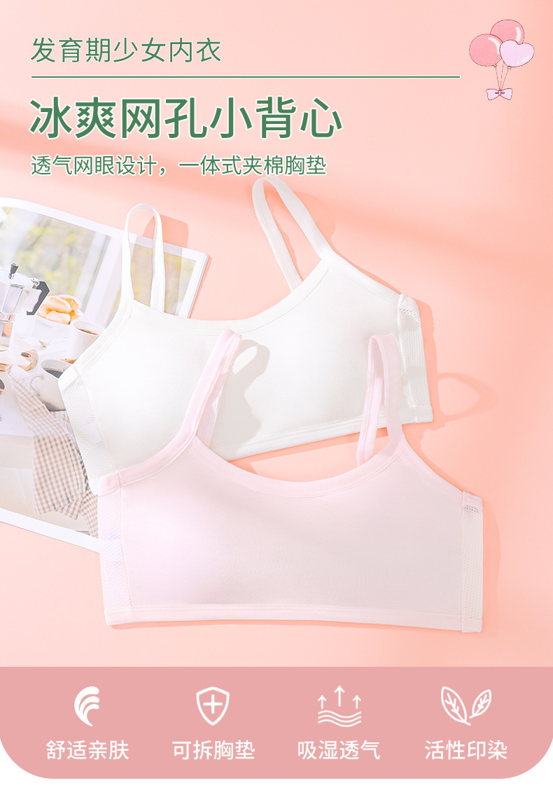 초중고 학생을위한 강철 반지 메쉬 더블 레이어 통기성 브래지어가없는 발달 소녀의 작은 조끼 큰 여아 속옷