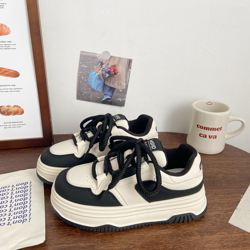 두꺼운 밑창 높이 증가 작은 흰색 신발 여성 인 조수 2024 봄 새로운 틈새 추악한 사랑스러운 빵 신발 스포츠 캐주얼 스케이트 신발스토어 가기
