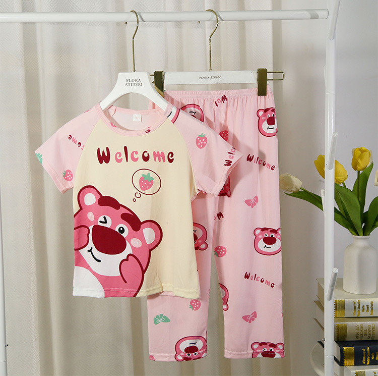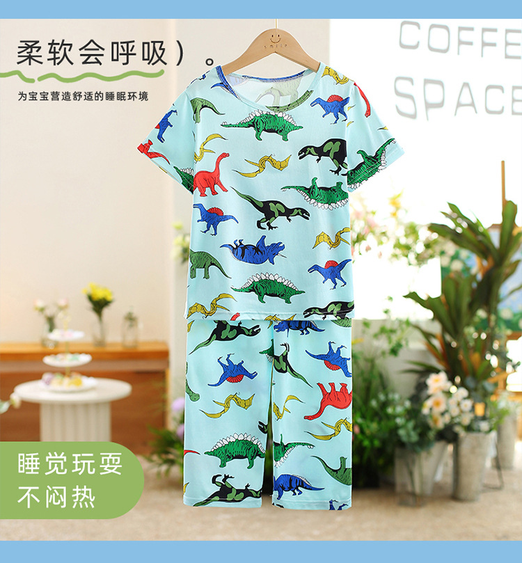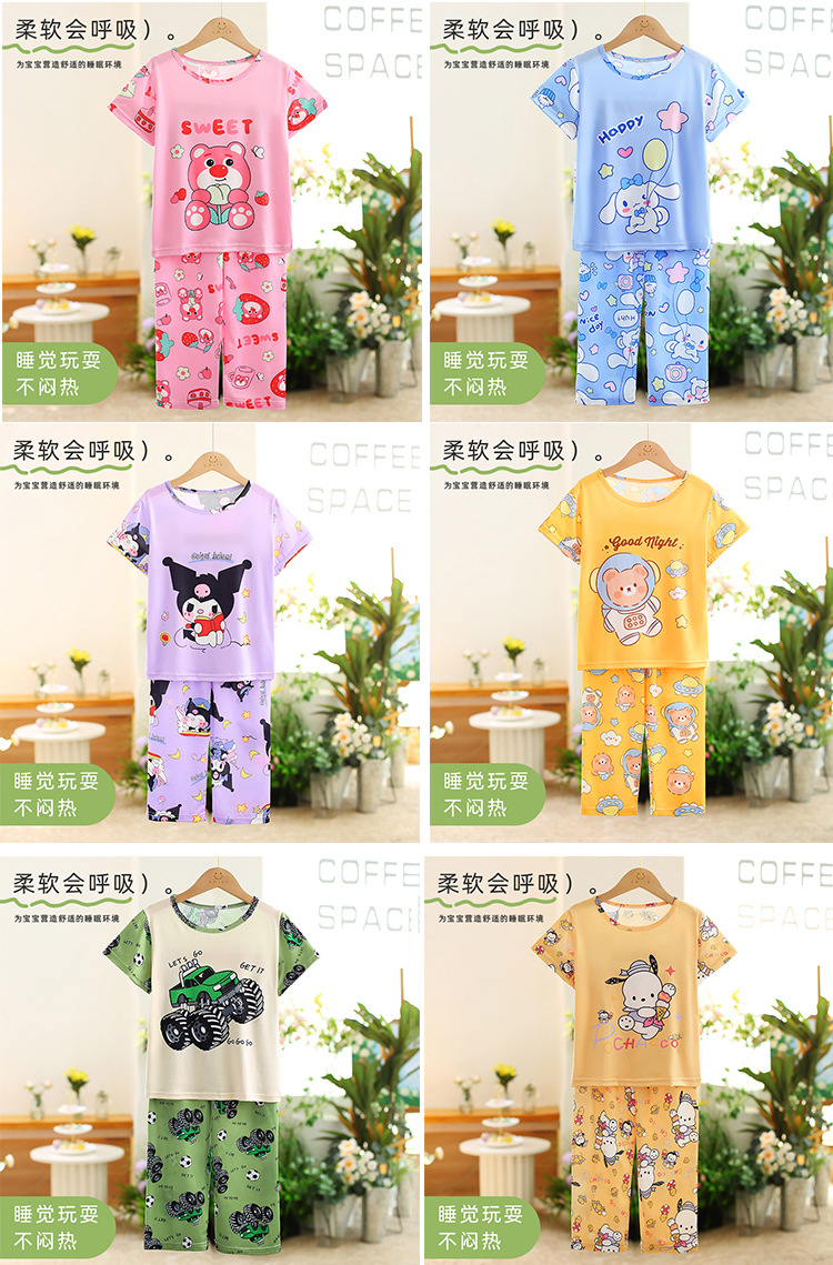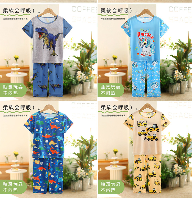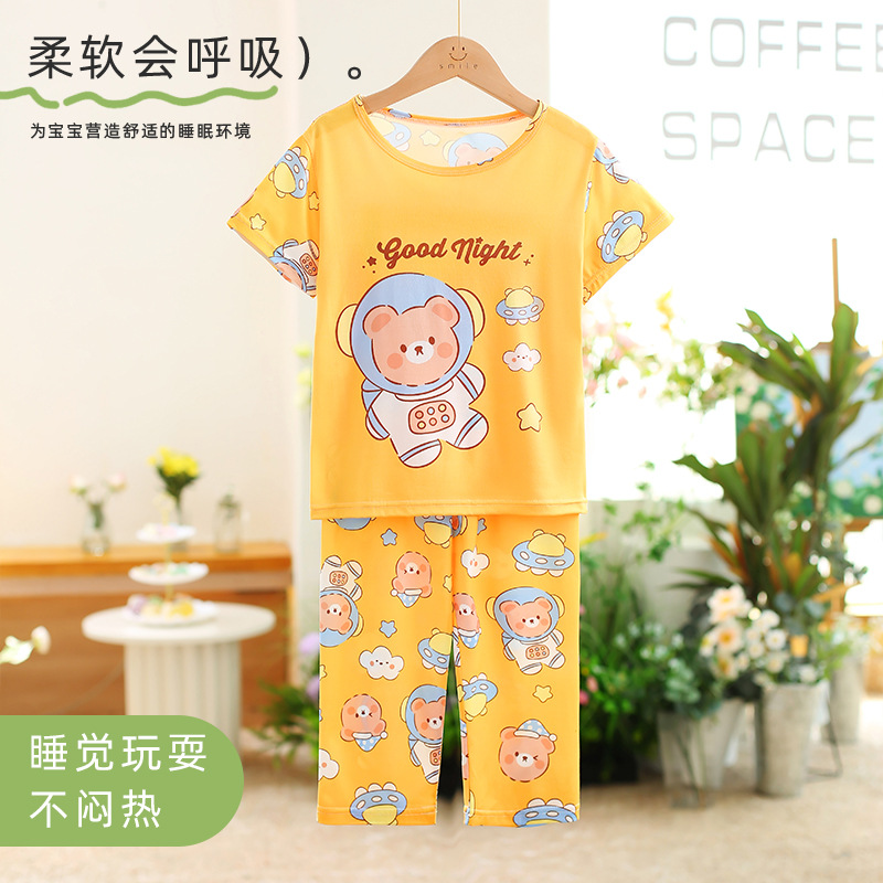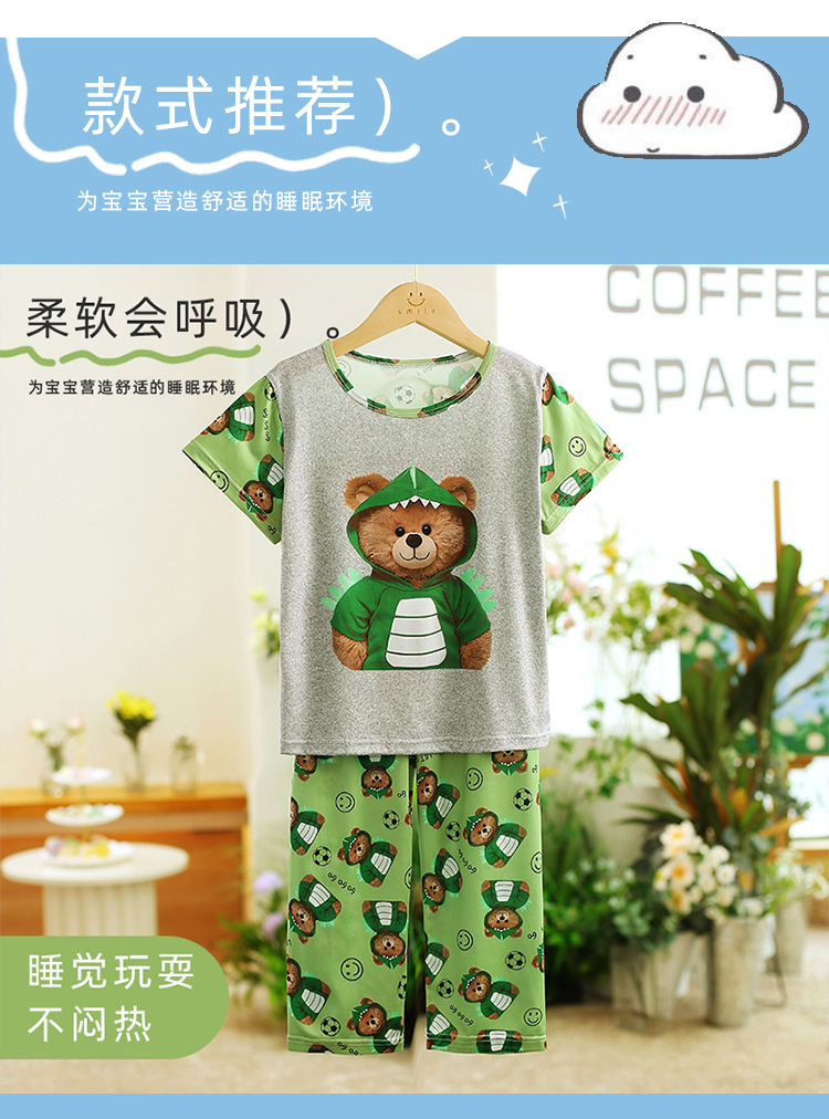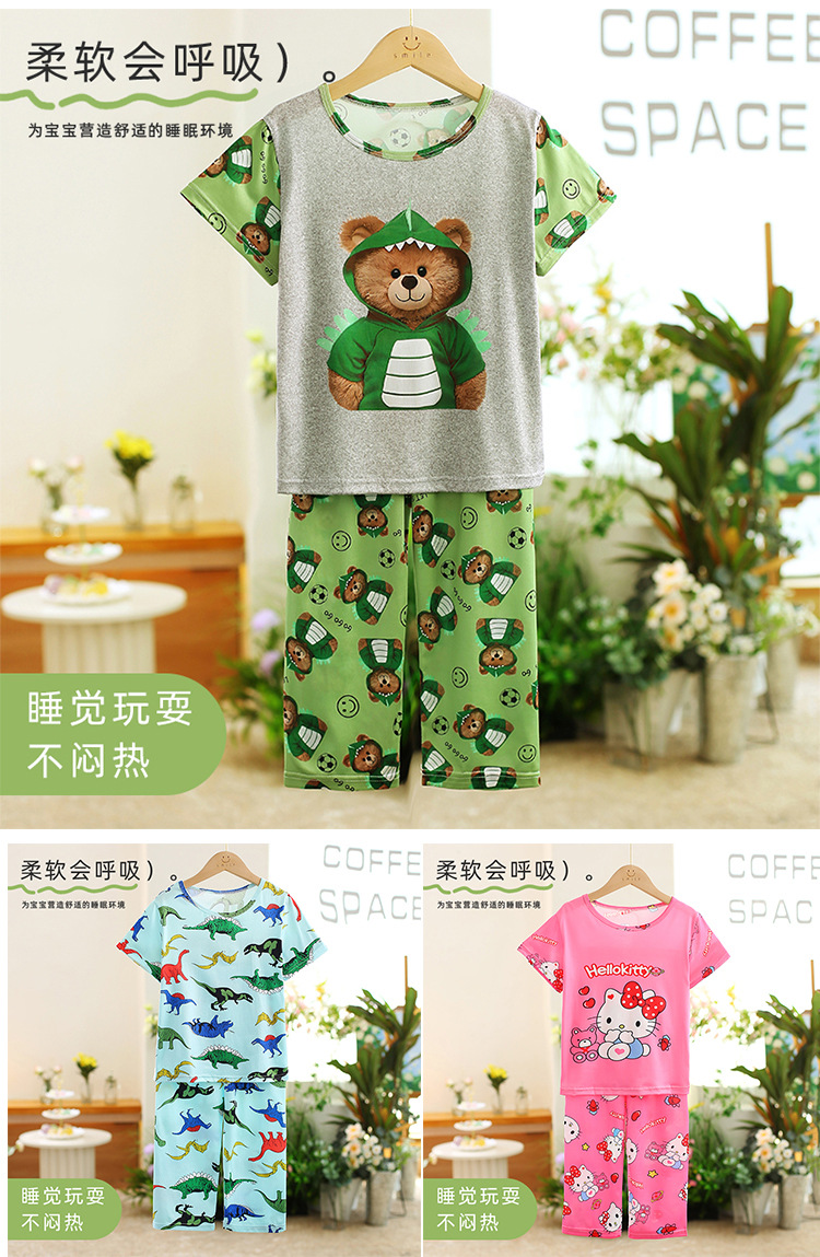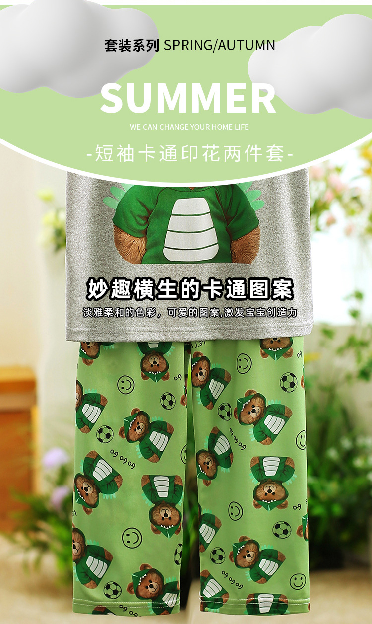 홈 의류 어린이 한국식 인쇄 소년 소녀 가을 파자마 반팔 속옷 투피스 에어컨 아동용 세트스토어 가기