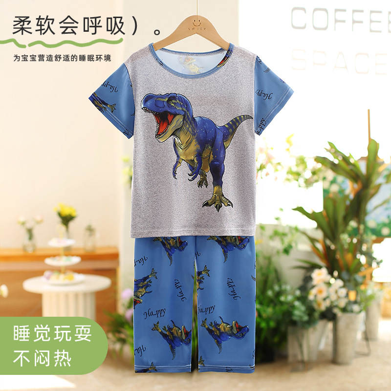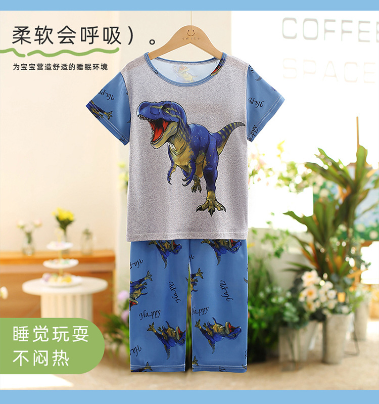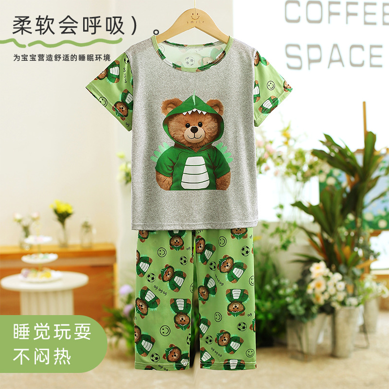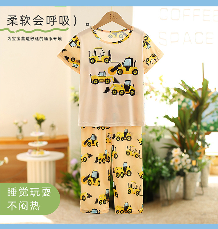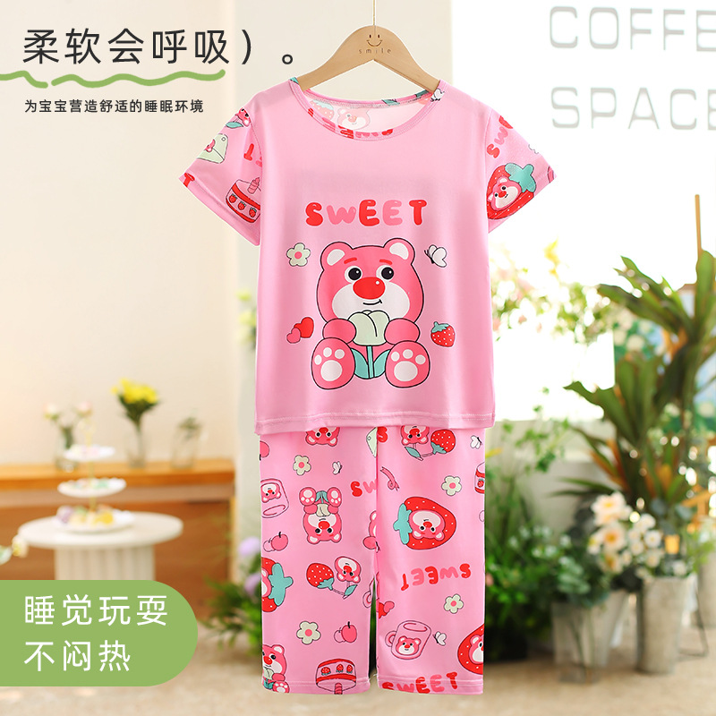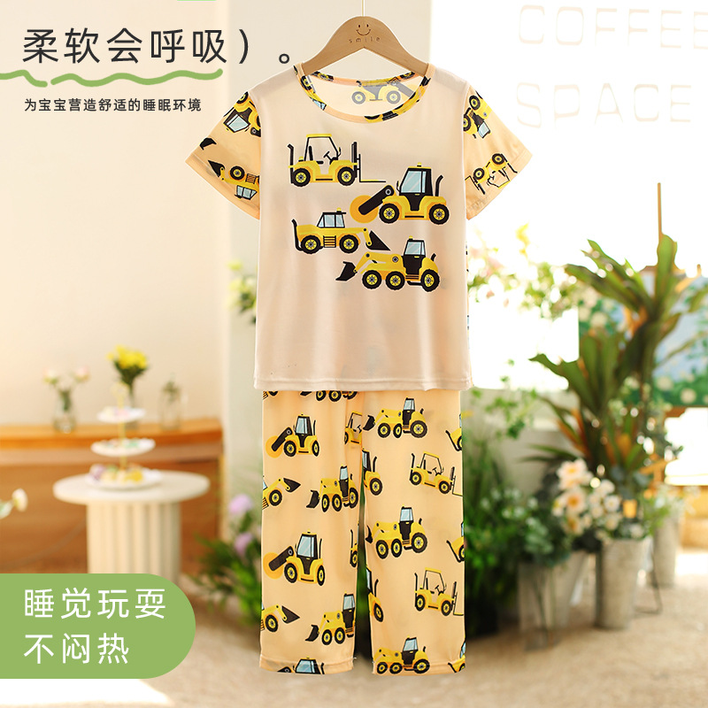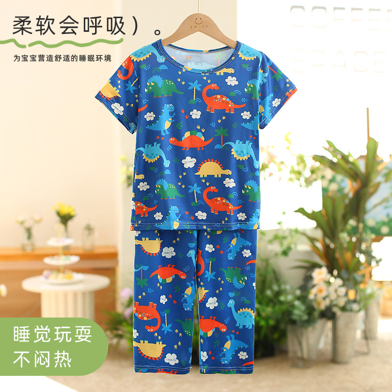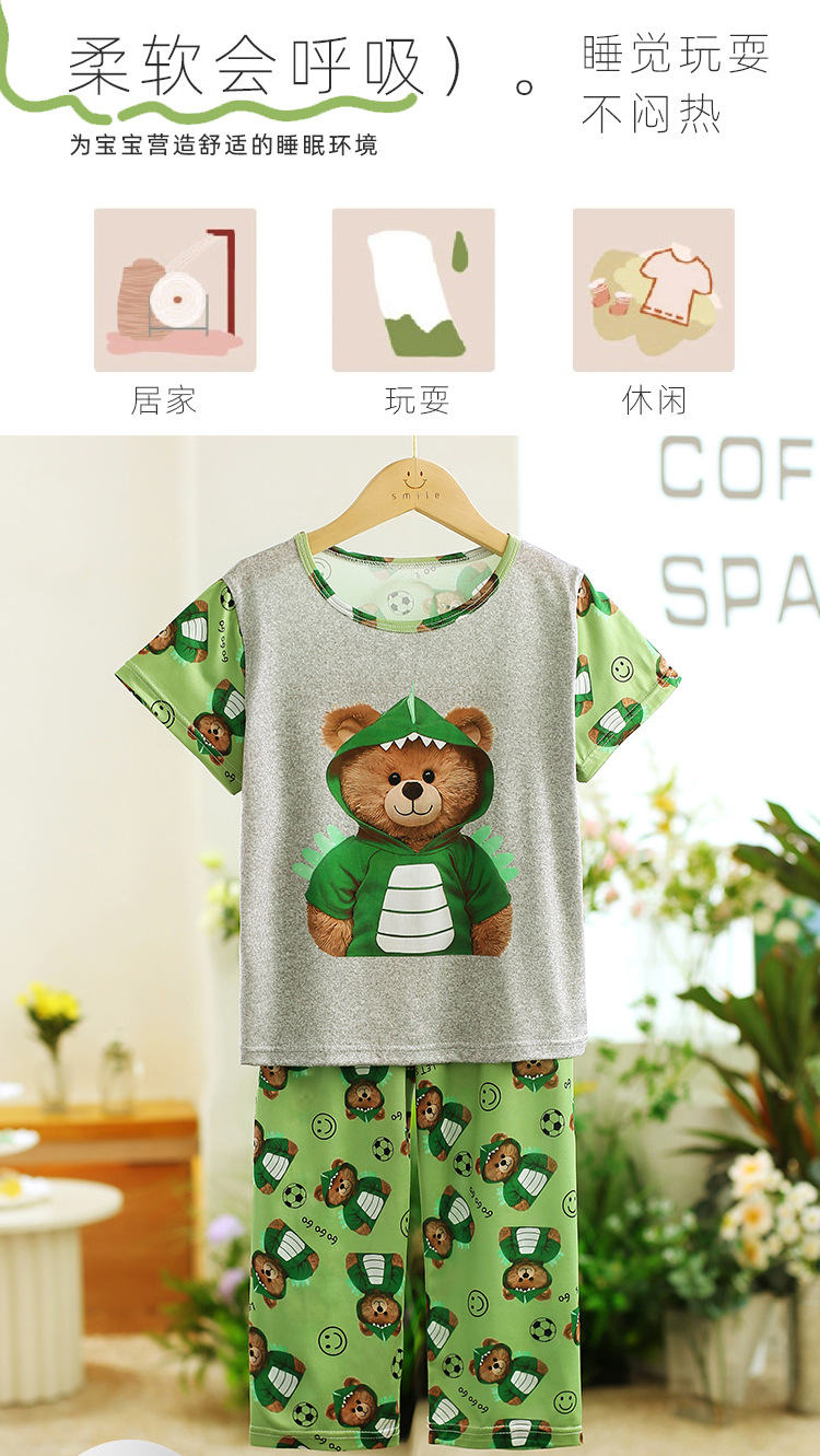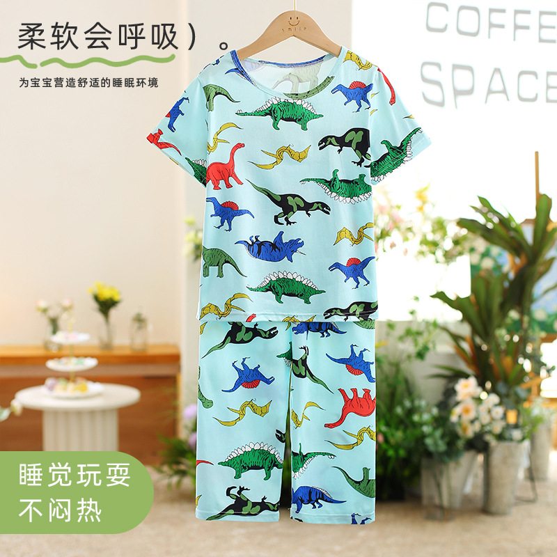홈 의류 어린이 한국식 인쇄 소년 소녀 가을 파자마 반팔 속옷 투피스 에어컨 아동용 세트스토어 가기