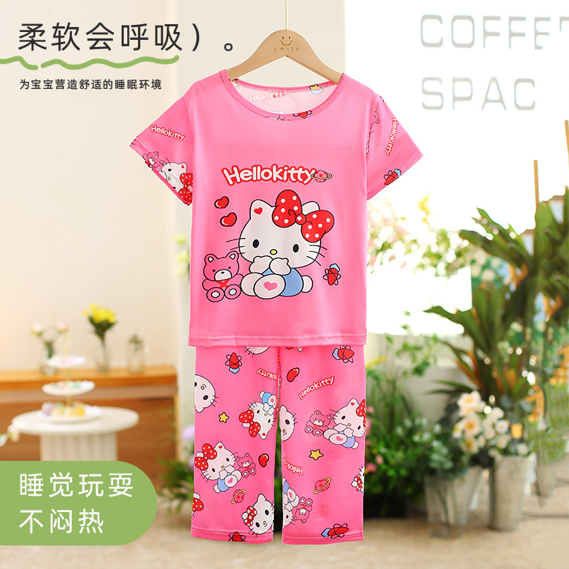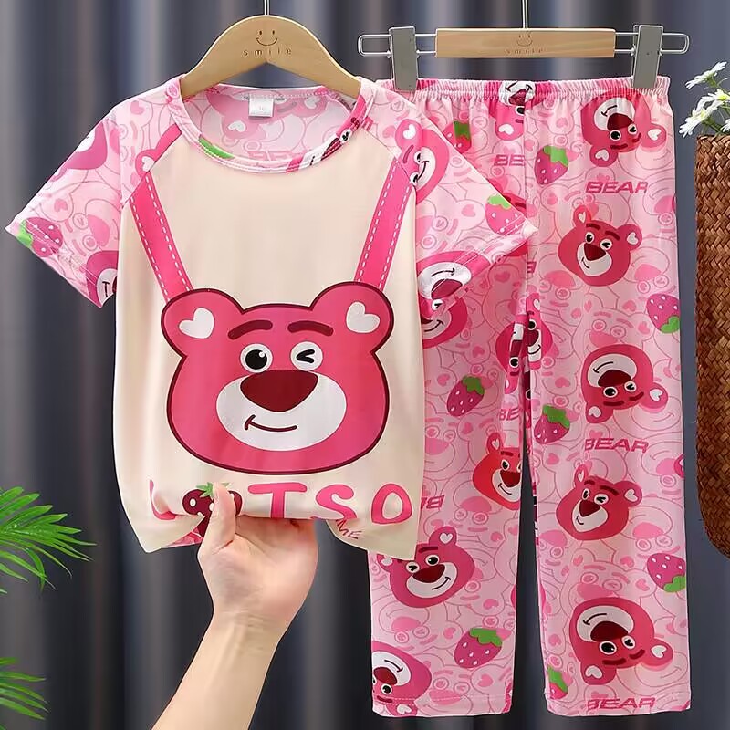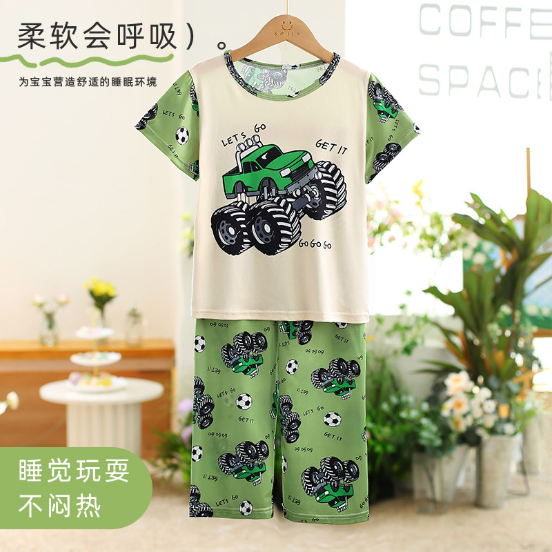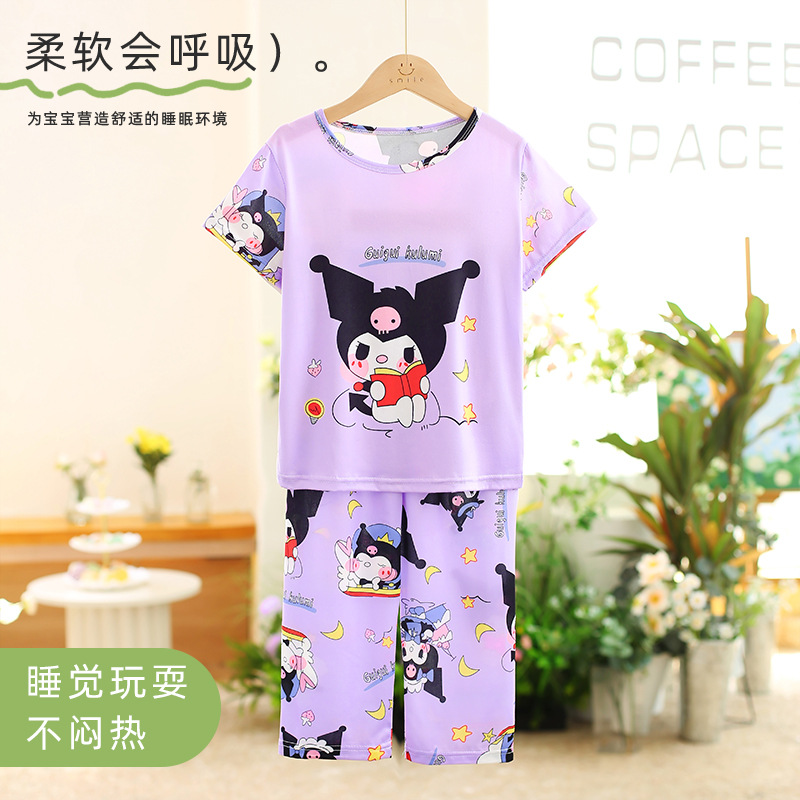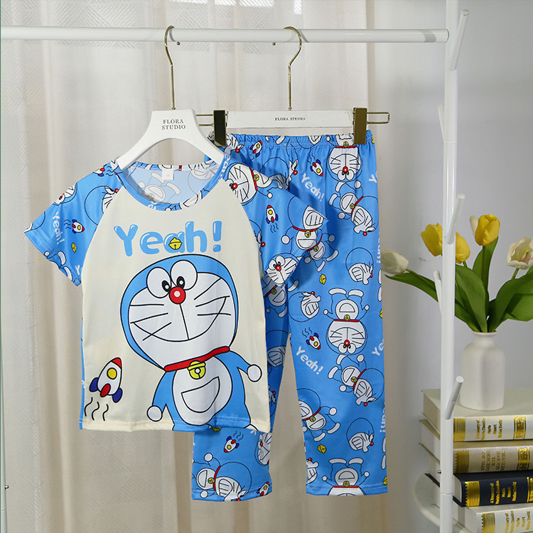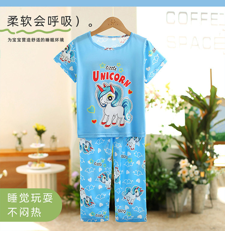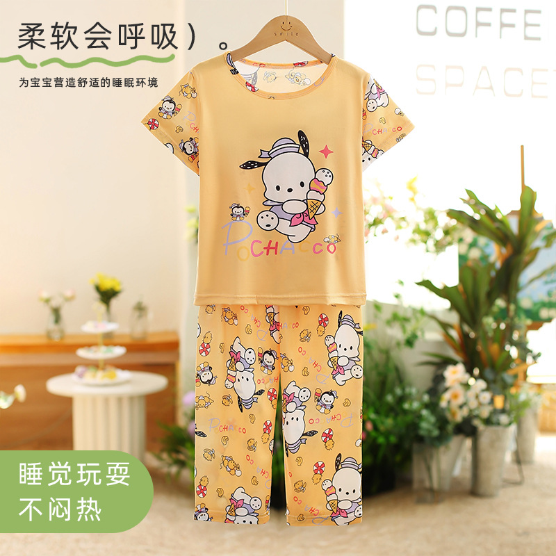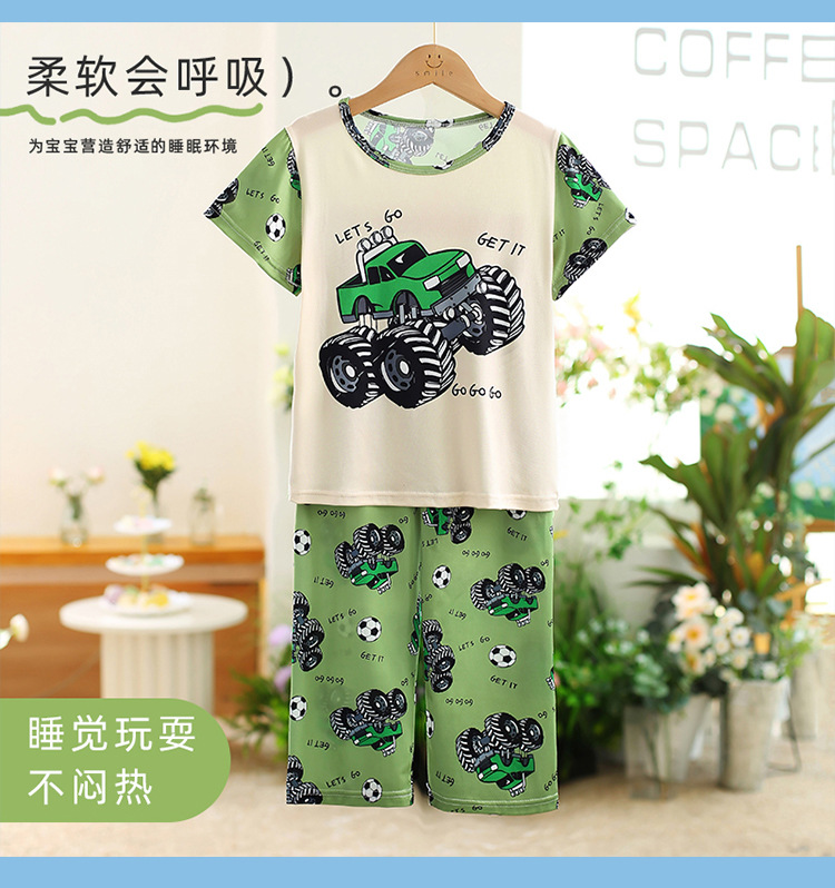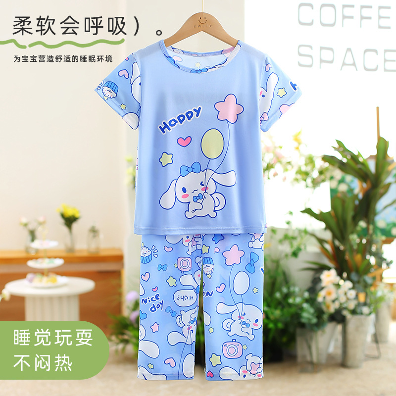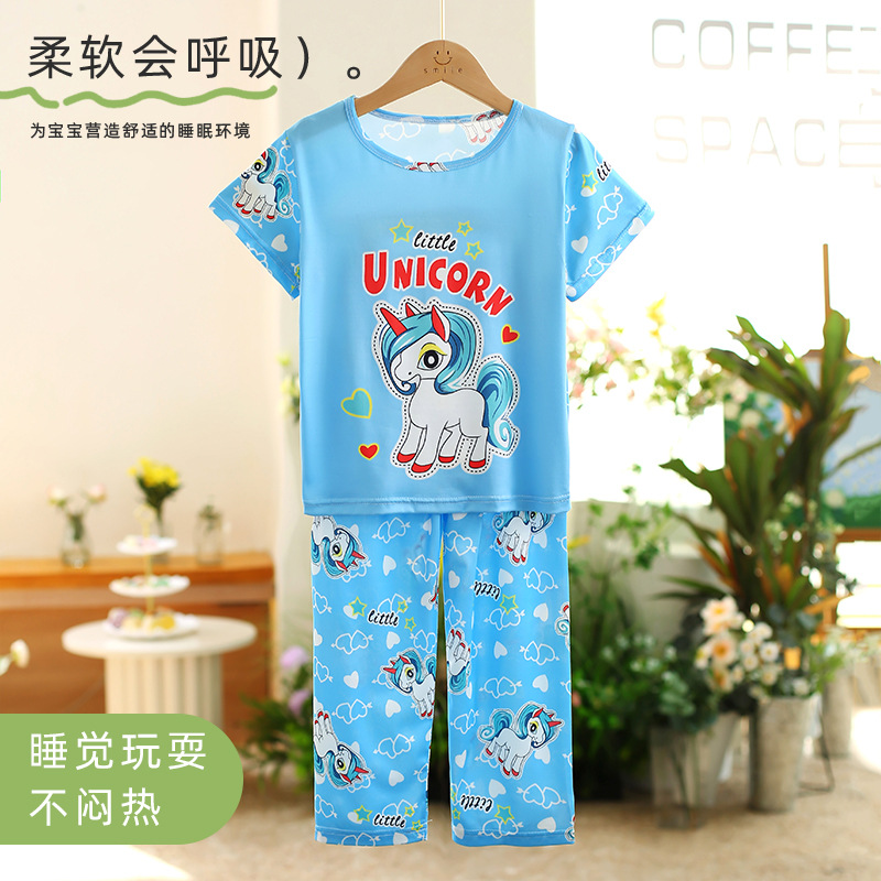 홈 의류 어린이 한국식 인쇄 소년 소녀 가을 파자마 반팔 속옷 투피스 에어컨 아동용 세트스토어 가기