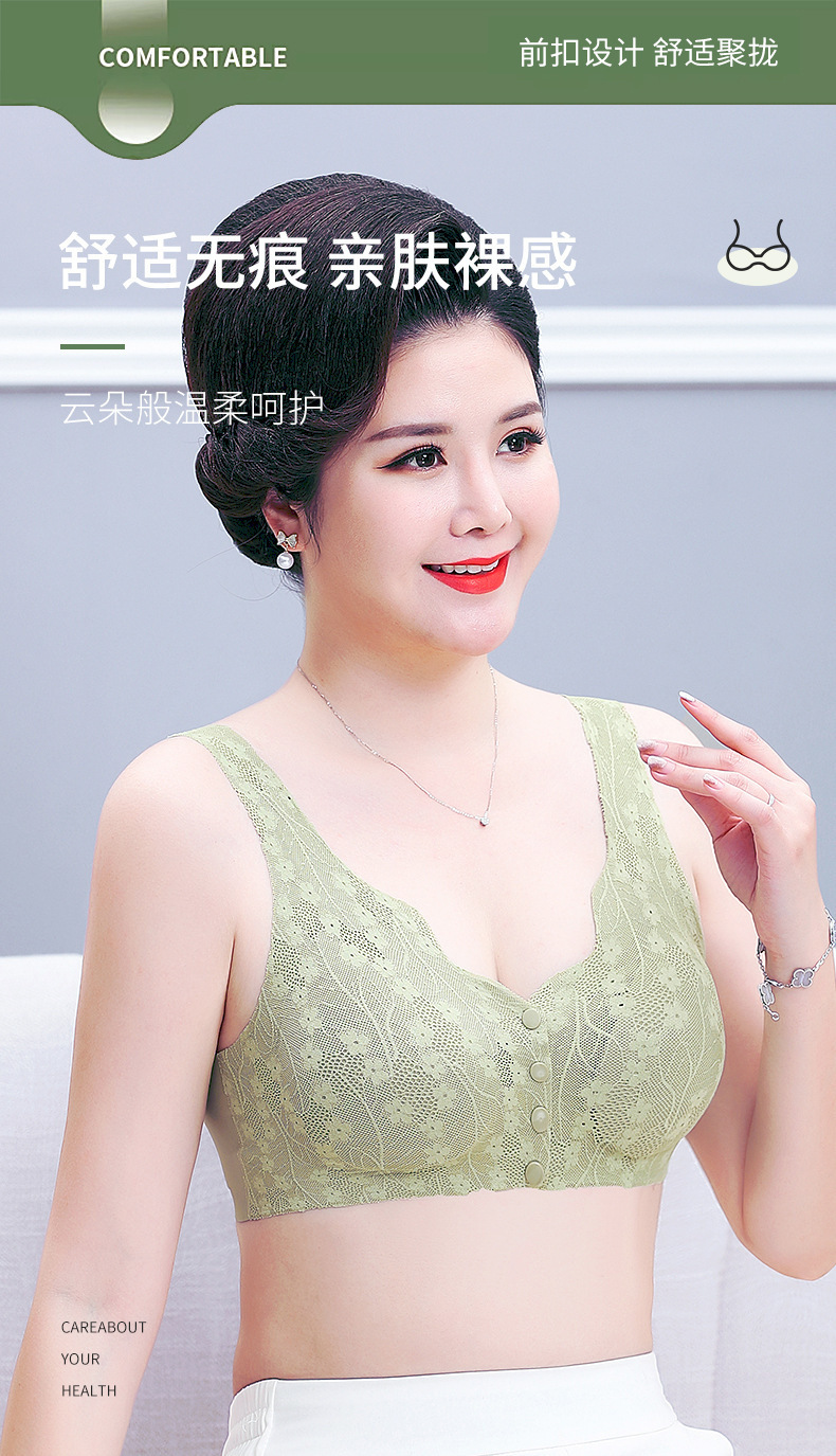 어머니의 전선 오프닝 버클 속옷 여성의 중년 및 노인 여성 조끼 플러스 사이즈 추적없는 반지 안티 처짐 레이스 브라