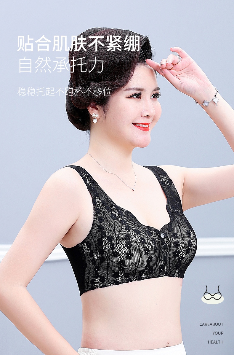 어머니의 전선 오프닝 버클 속옷 여성의 중년 및 노인 여성 조끼 플러스 사이즈 추적없는 반지 안티 처짐 레이스 브라스토어 가기