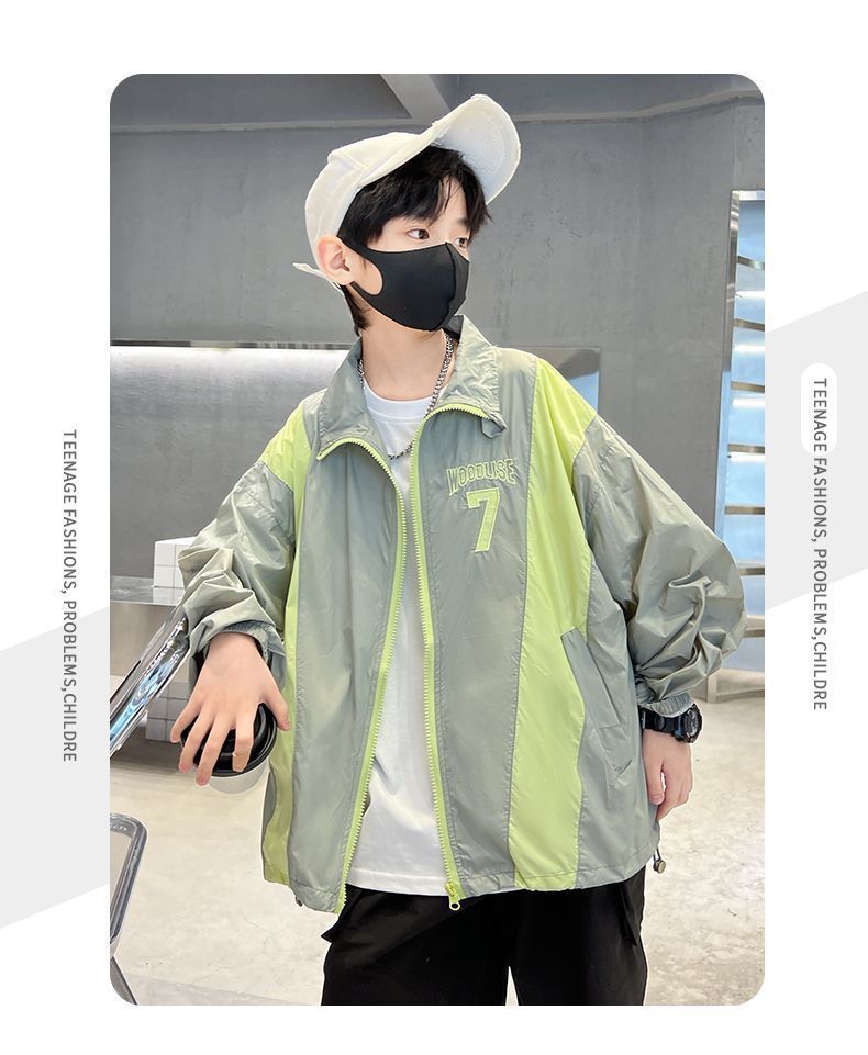 어린이 착용 새로운 2024 여름 소년 야외 셔츠 외부 UV 저항 통기성 경량 소년 얇은 코트 트렌디