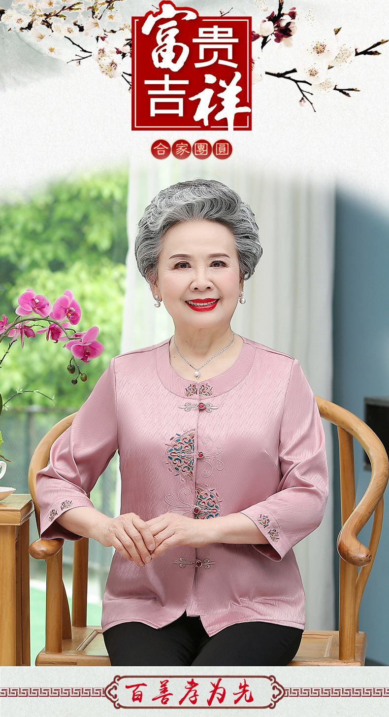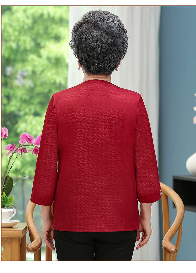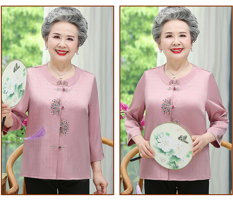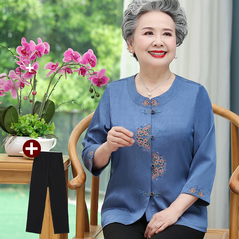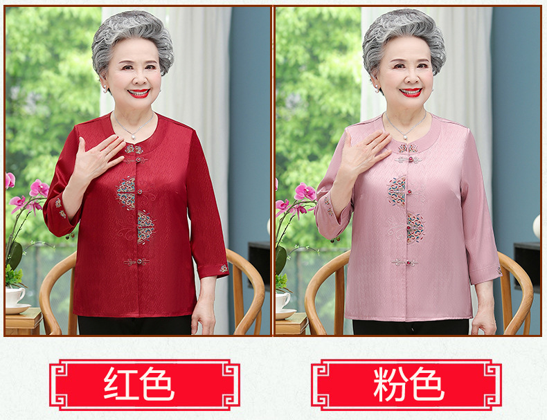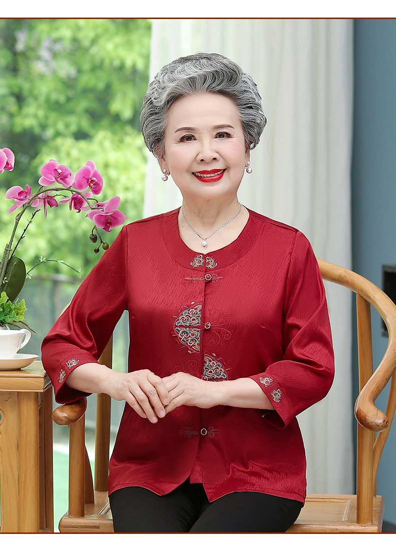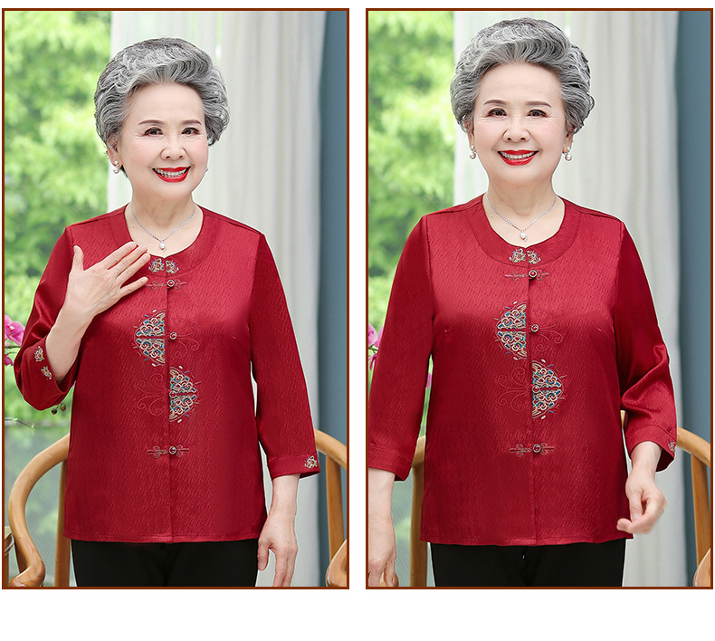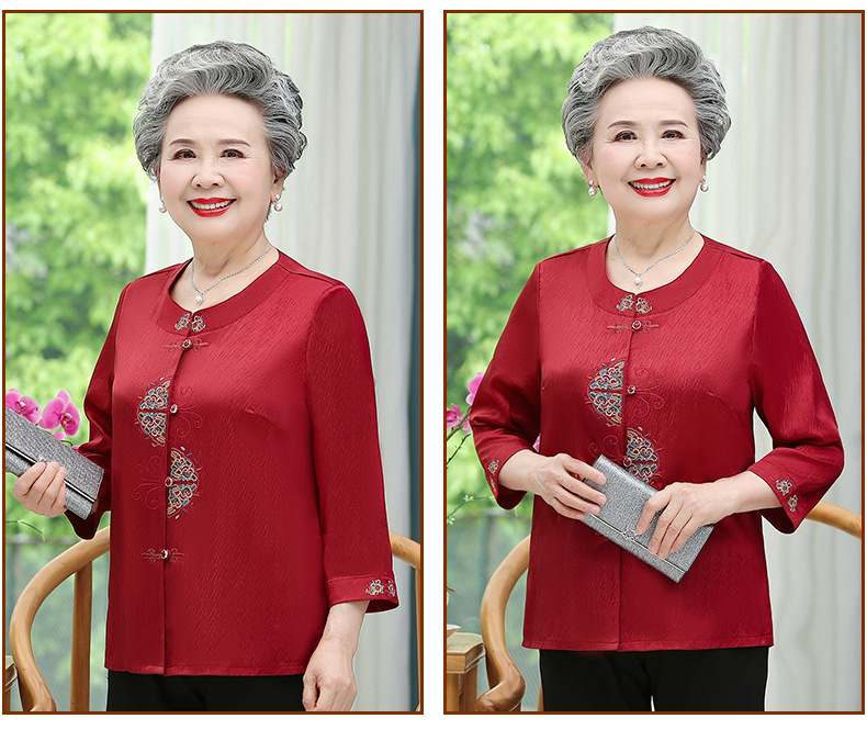 중년 및 노인 어머니 여름 의류 7 소매 복고풍 셔츠 탑 80 세 할머니의 중국식 카디건 셔츠