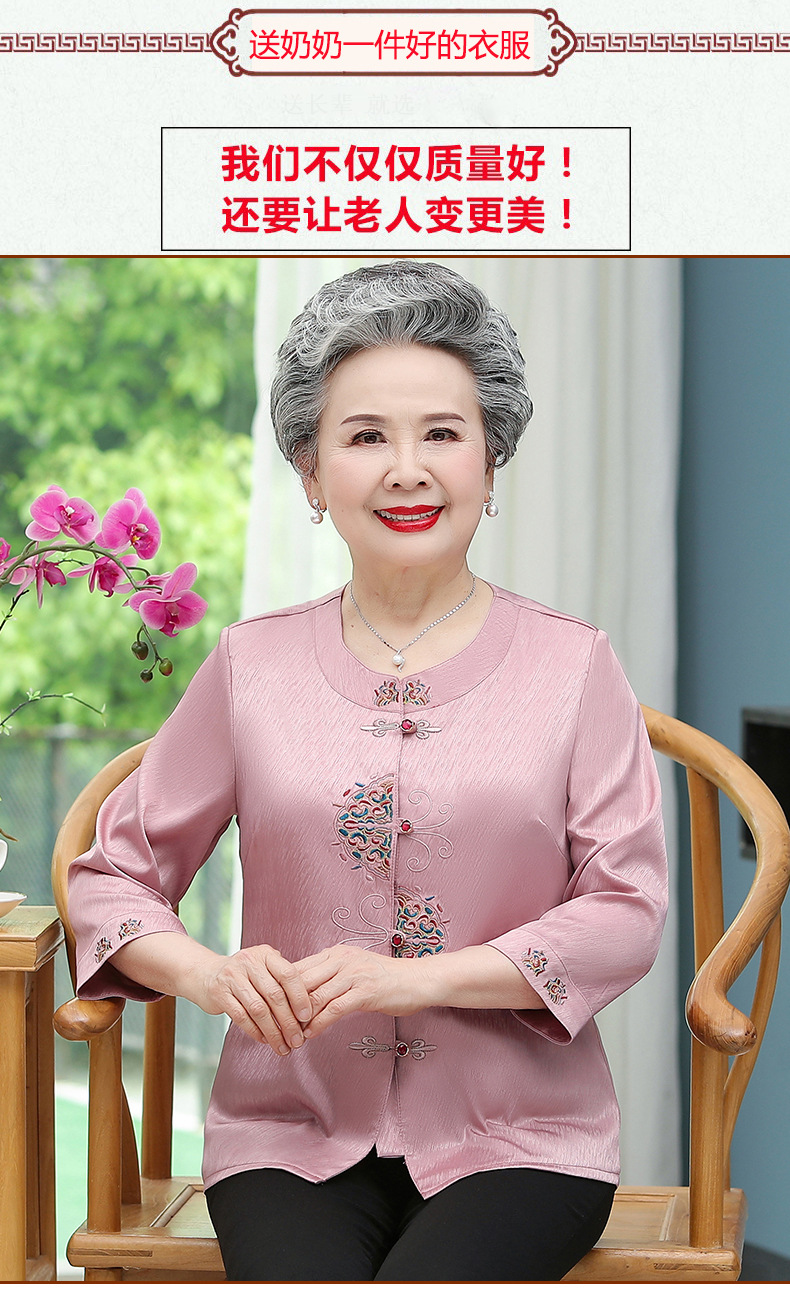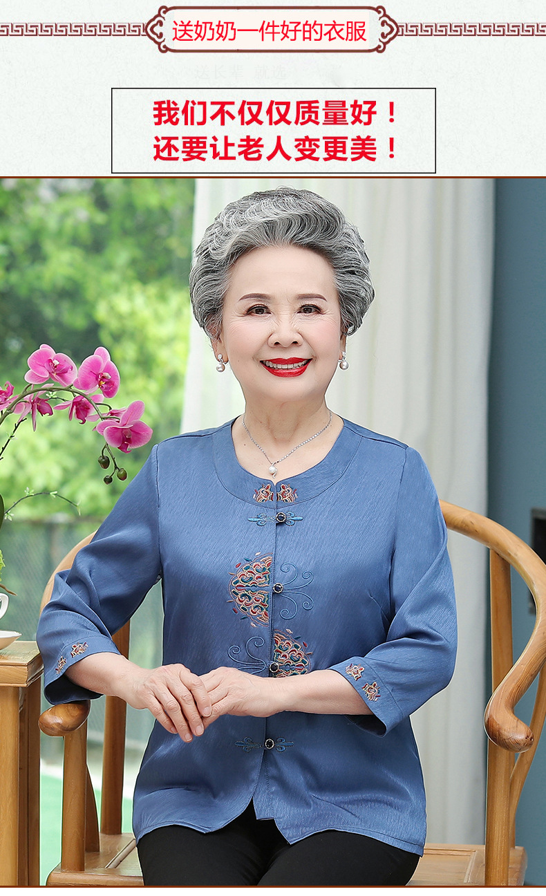 중년 및 노인 어머니 여름 의류 7 소매 복고풍 셔츠 탑 80 세 할머니의 중국식 카디건 셔츠스토어 가기