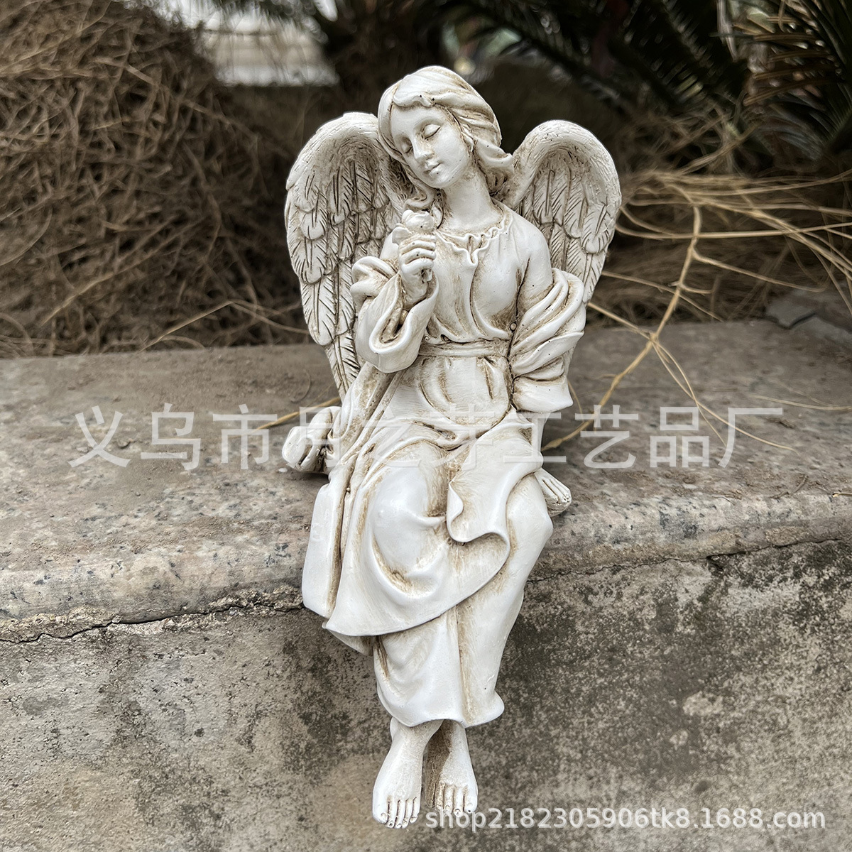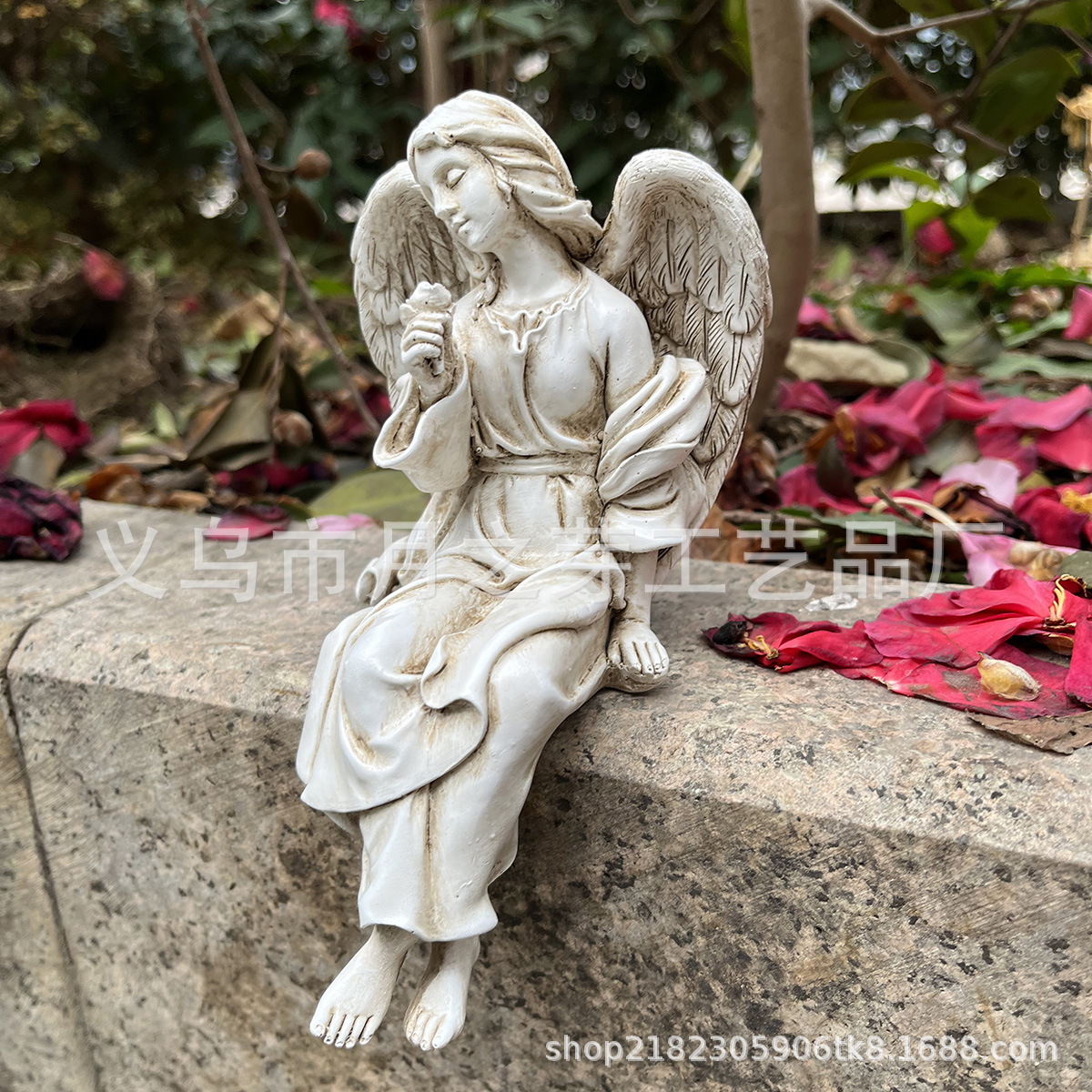 맨발 꽃 천사 수지 동상 공예 홈 동상 장식품 야외 정원 안뜰스토어 가기