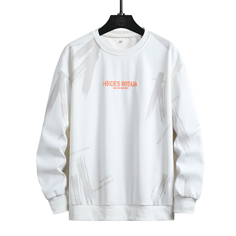 무거운 둥근 목 플러스 사이즈 땀 남자 봄과 가을 한국 스타일 유행 편지 인쇄 캐주얼 느슨한 플러스 사이즈 남자 정상