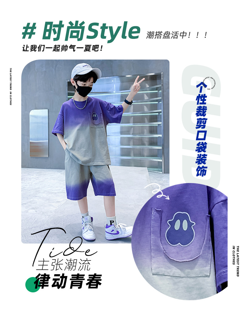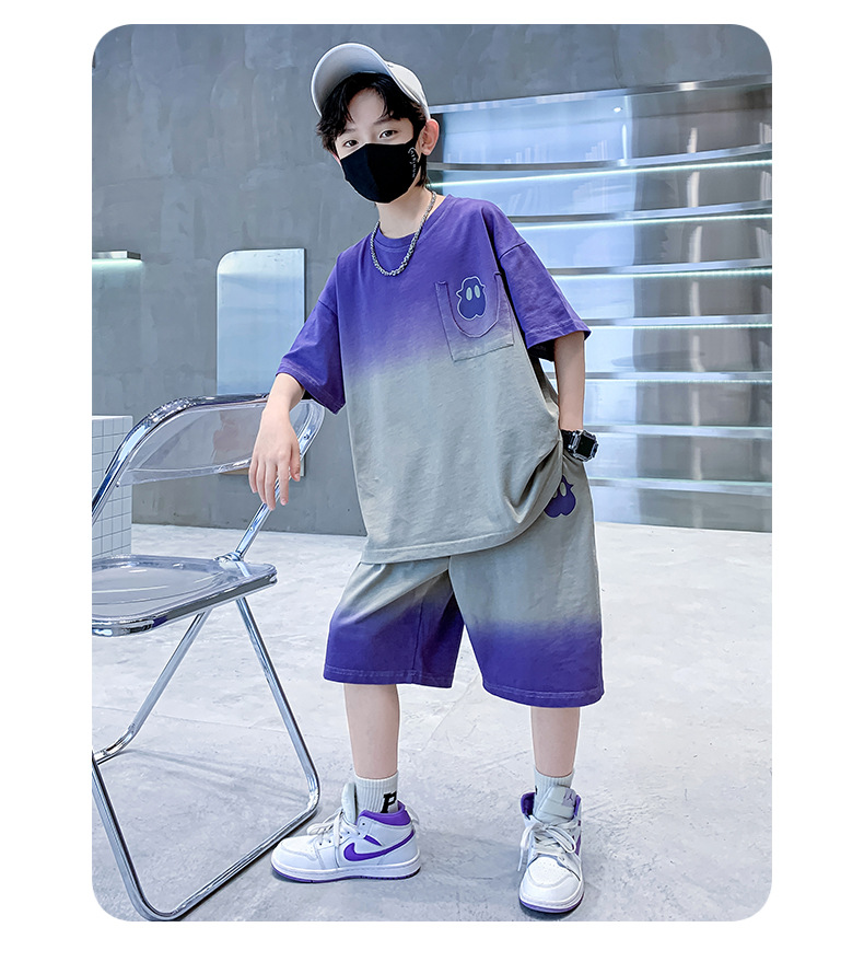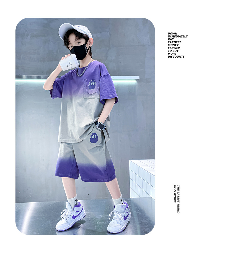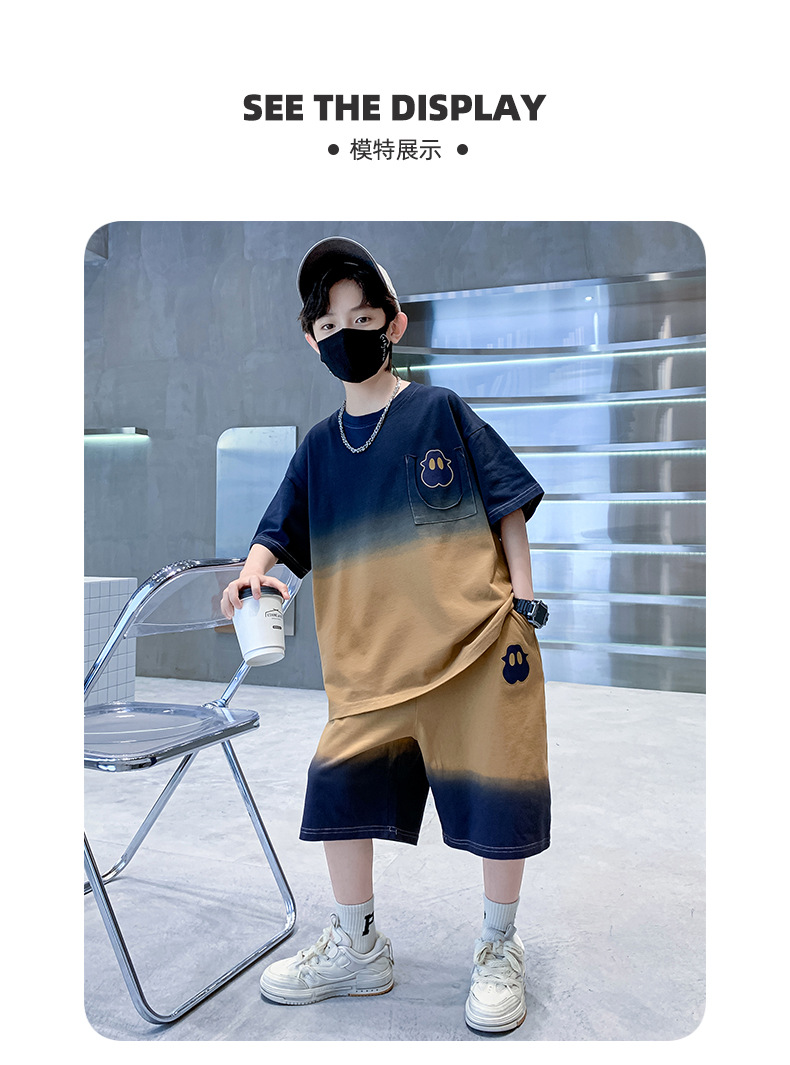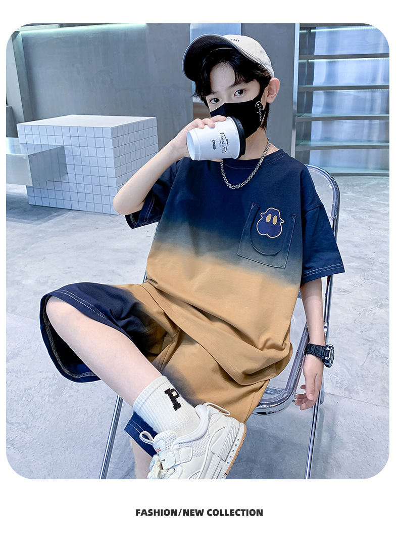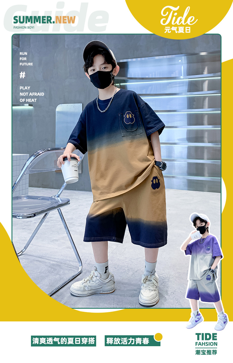 어린이 소년의 여름 세트 2024 새로운 스타일 빅 보이 여름 반팔 여름 스포츠 패션 브랜드 잘 생긴