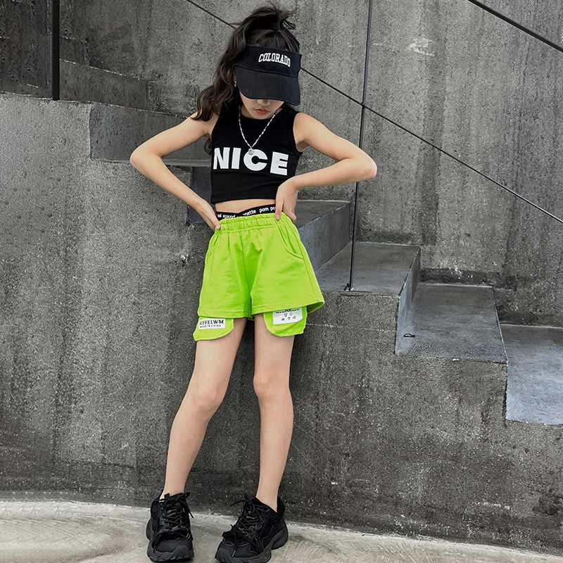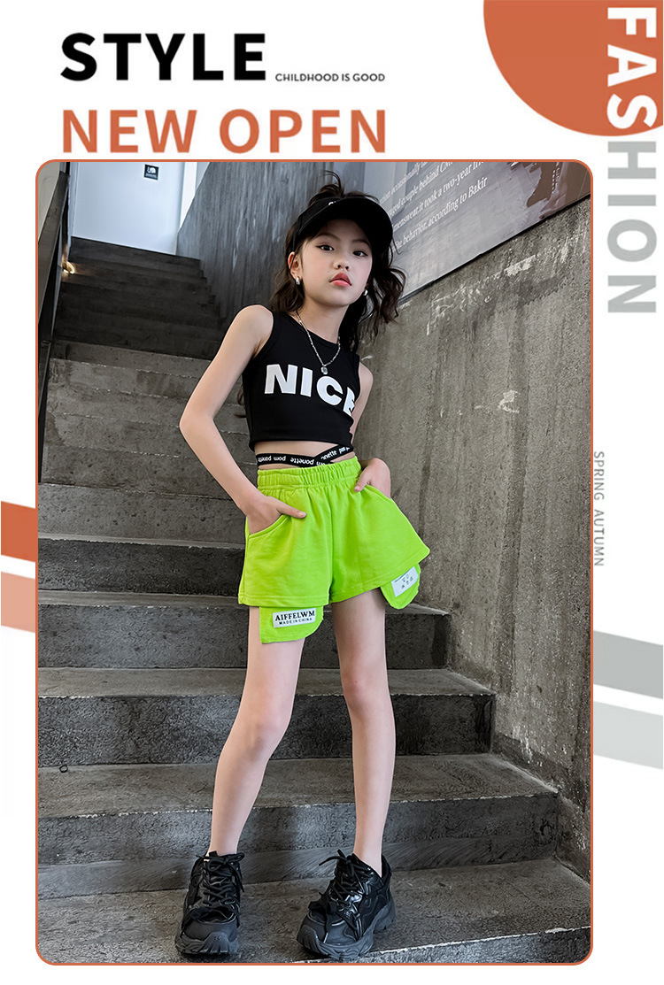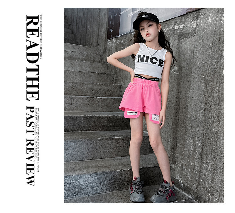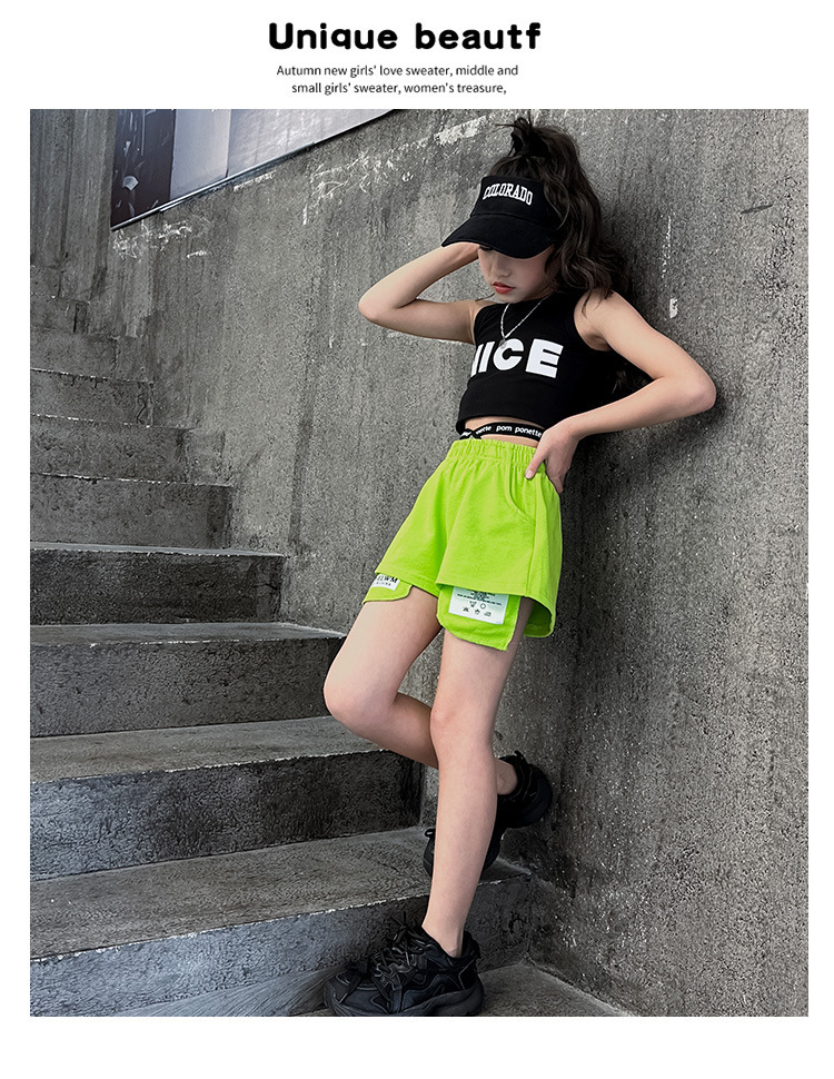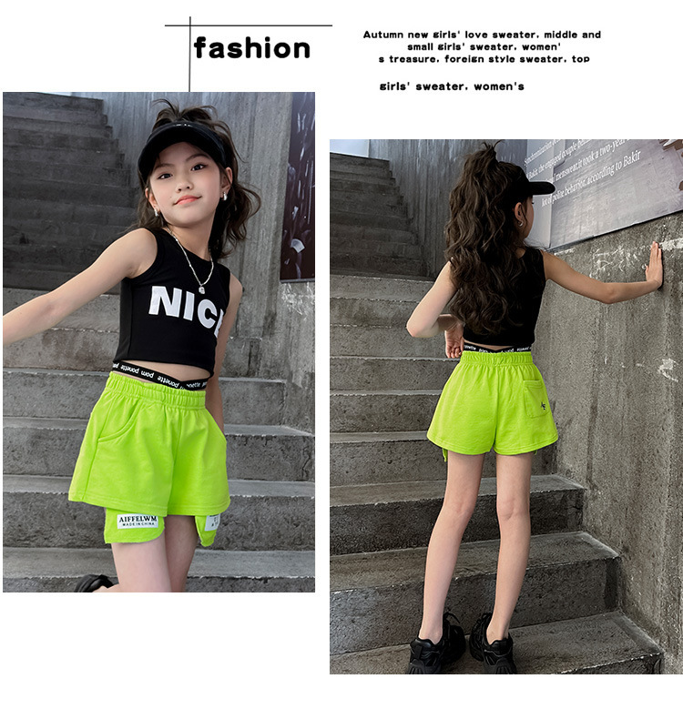 소녀의 여름 세트 2024 새로운 스타일 도파민 착용 소녀의 향신료 조끼 스포츠 반바지 2 조각 유행 세트